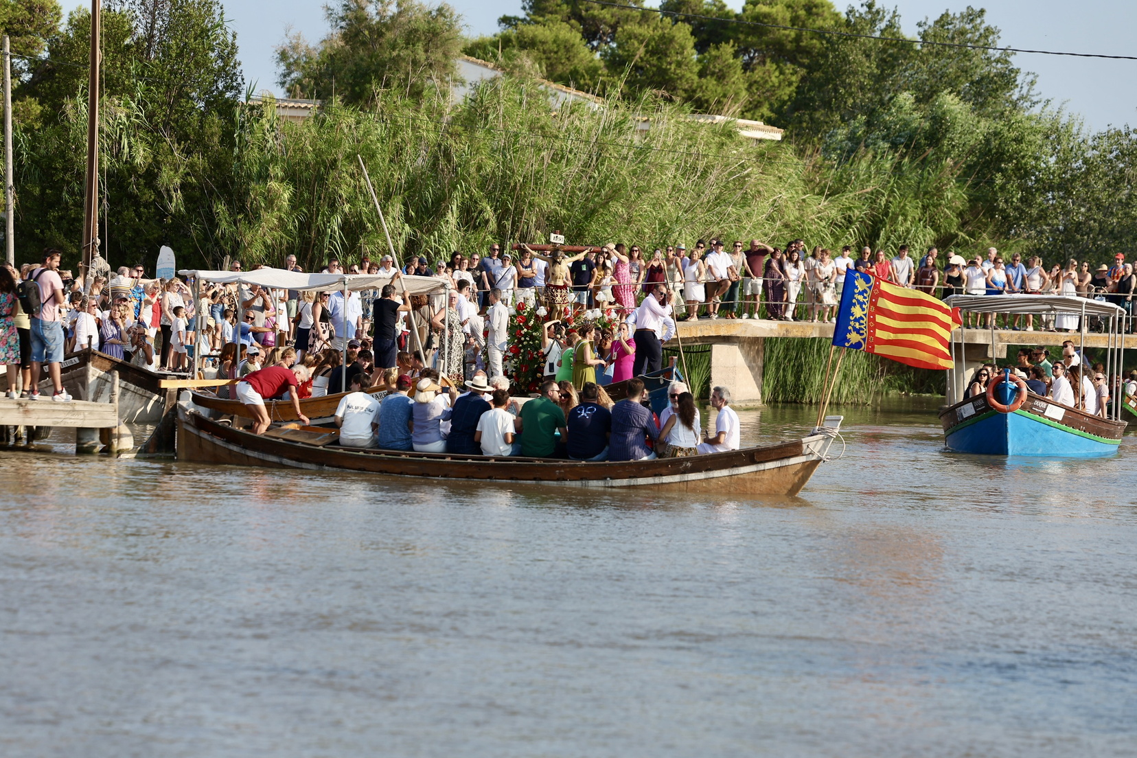La jornada comenzó con las tradicionales misas y procesiones en honor al Cristo de la Salud, seguidas de la esperada romería en barca. El Palmar se llenó de vecinos, devotos y visitantes que, año tras año, acuden a esta cita para rendir homenaje a su patrón y mantener viva una costumbre centenaria que forma parte del alma de esta pedanía valenciana.