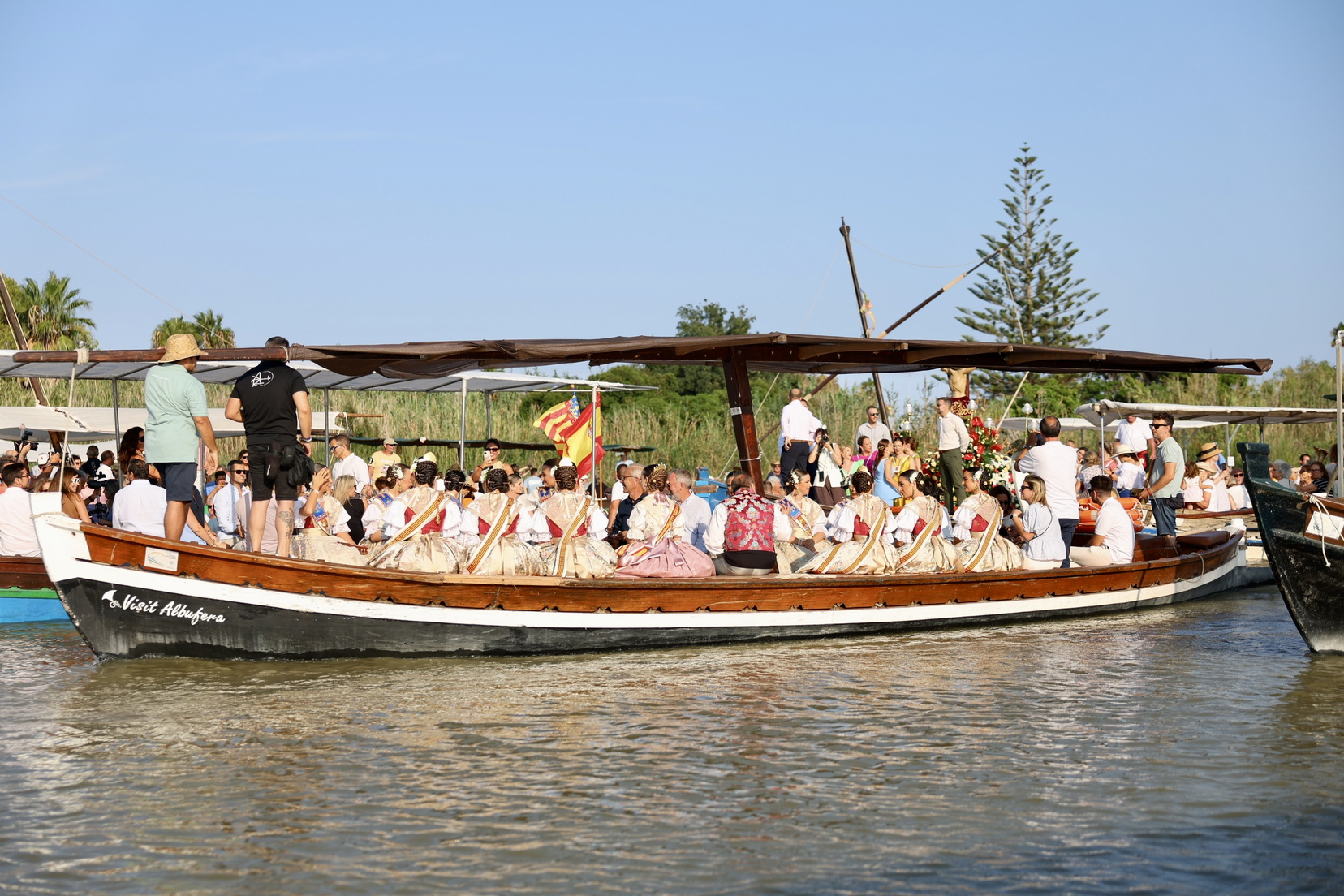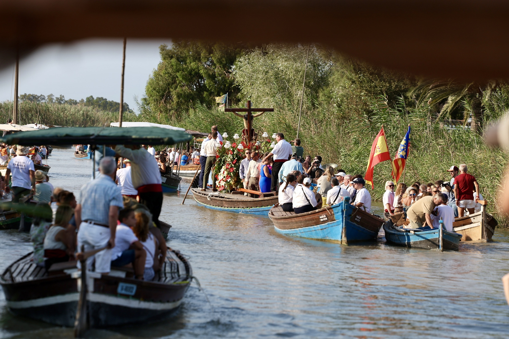 Este año, la romería se vivió con una emoción especial. El santísimo Cristo de la Salud, patrón de la pedanía de El Palmar, regresó a un lago de la Albufera que comienza a mostrar signos de recuperación tras los efectos de la dana que azotó la zona meses atrás. La romería se convirtió así en un acto no solo de devoción, sino también de esperanza.