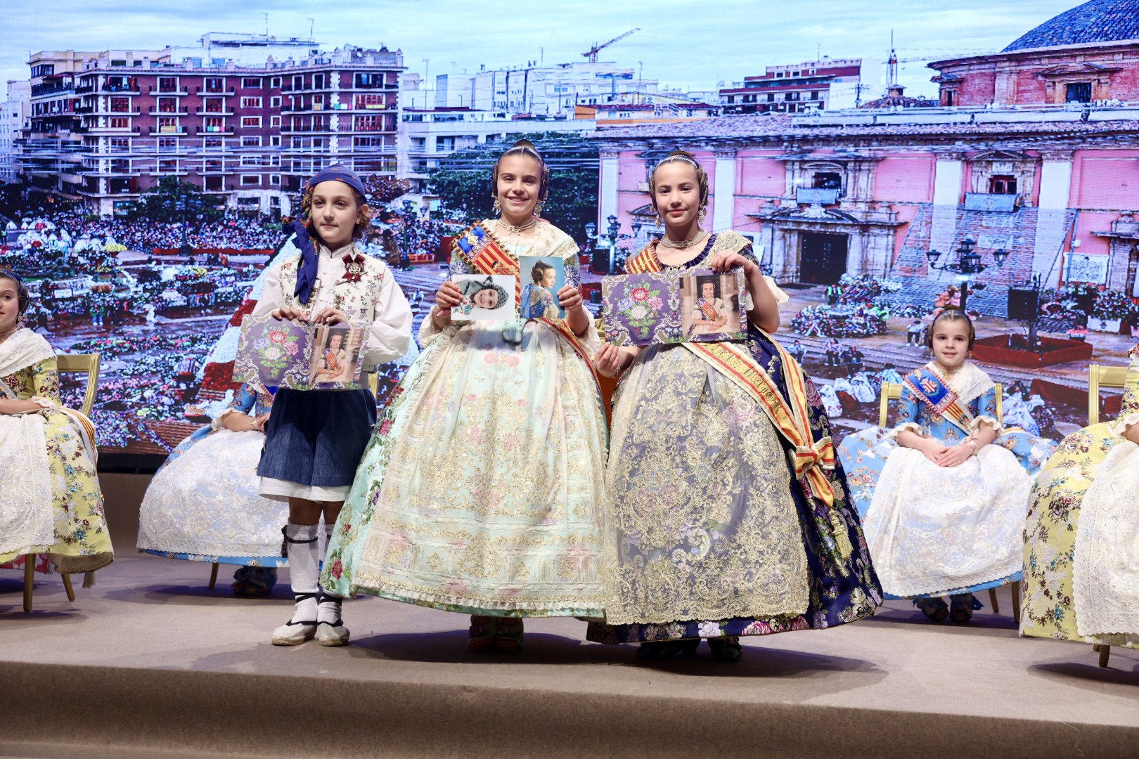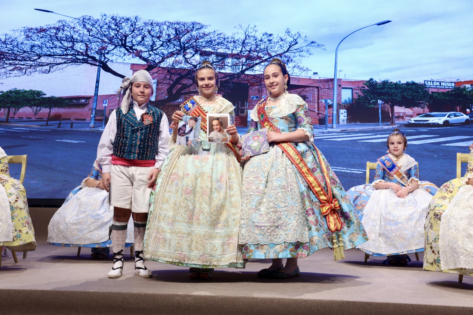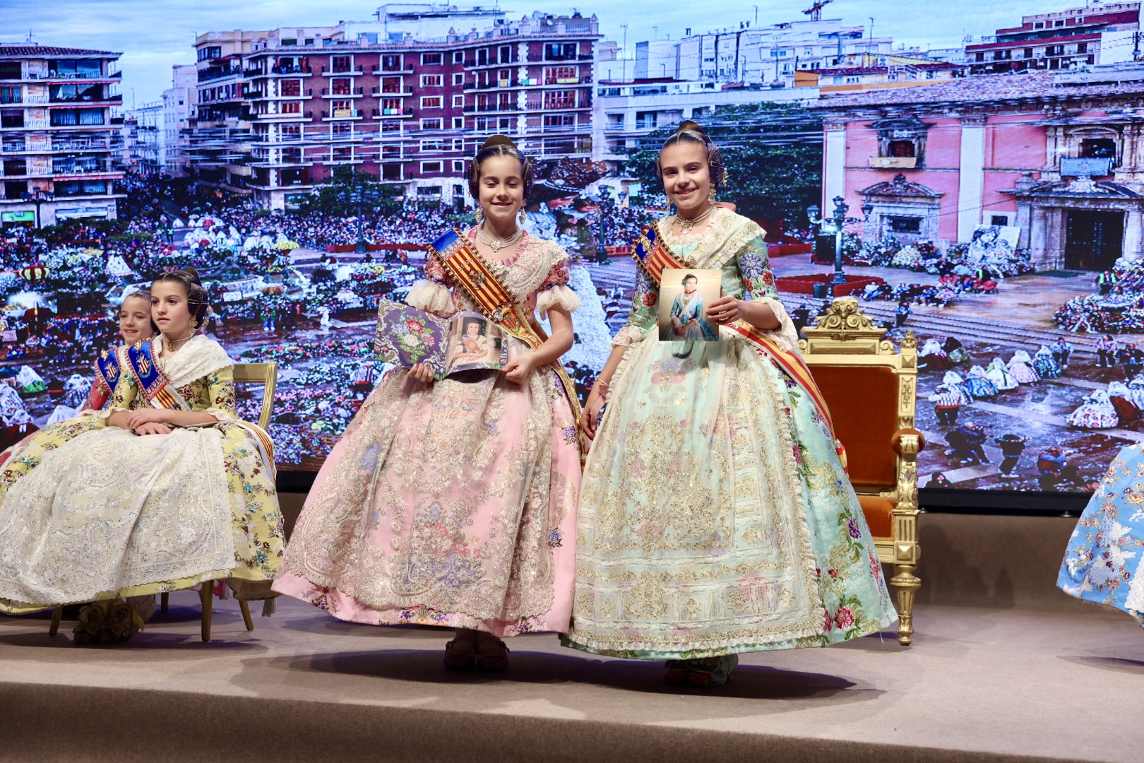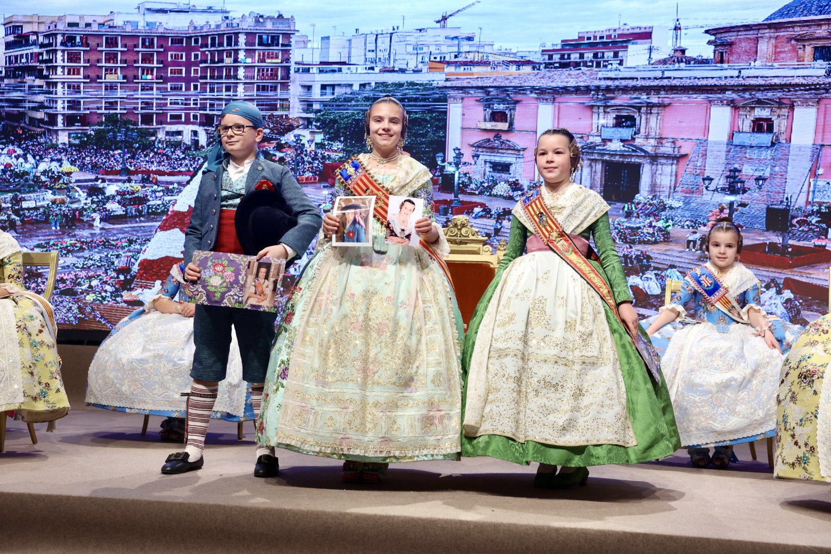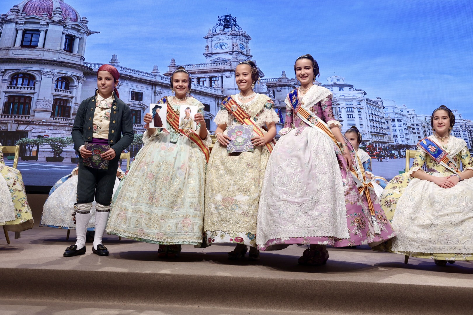 Intercambio de fotos con la Fallera Mayor  Infantil de Valencia con los sectores :
