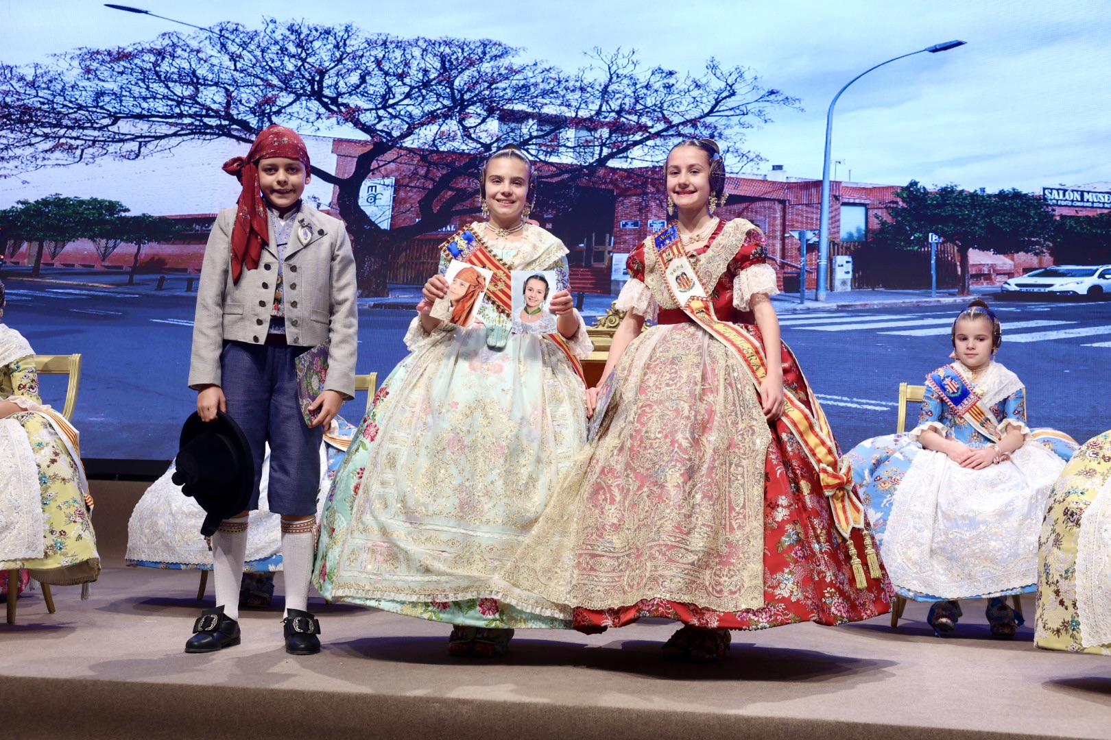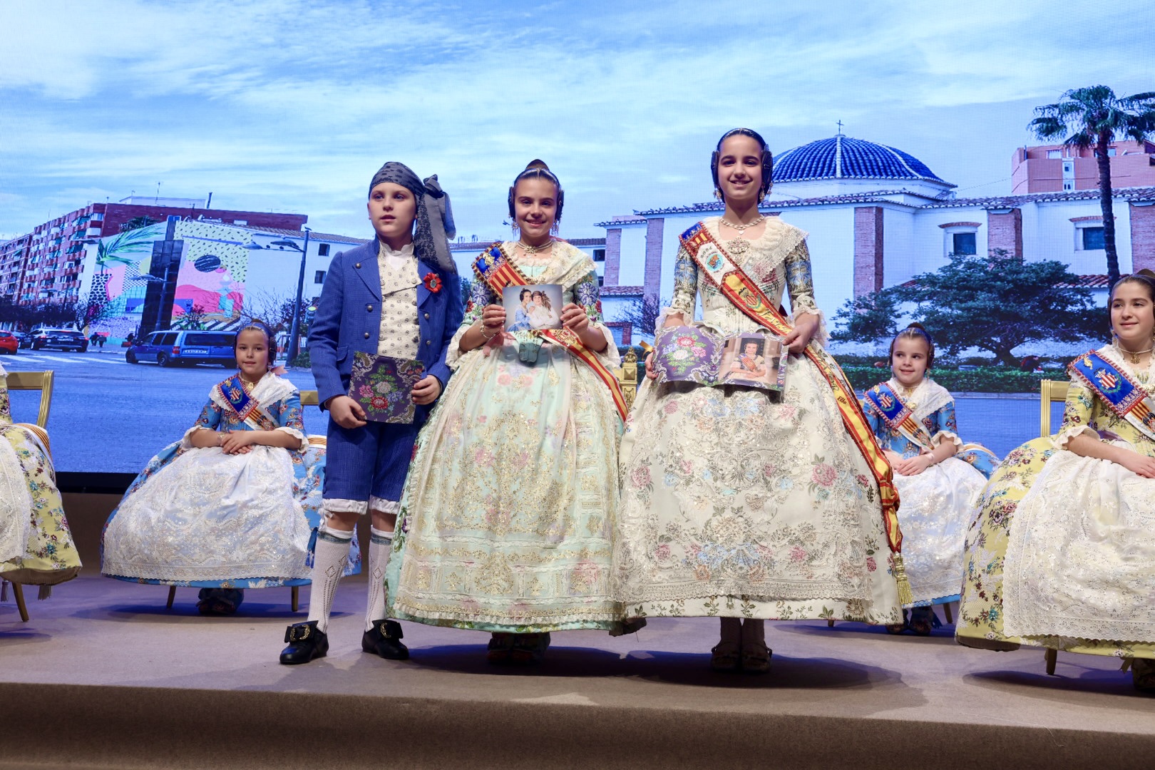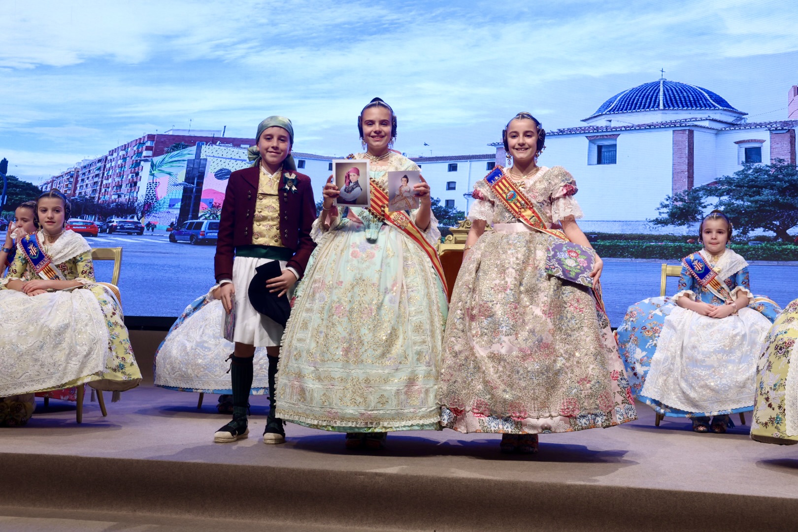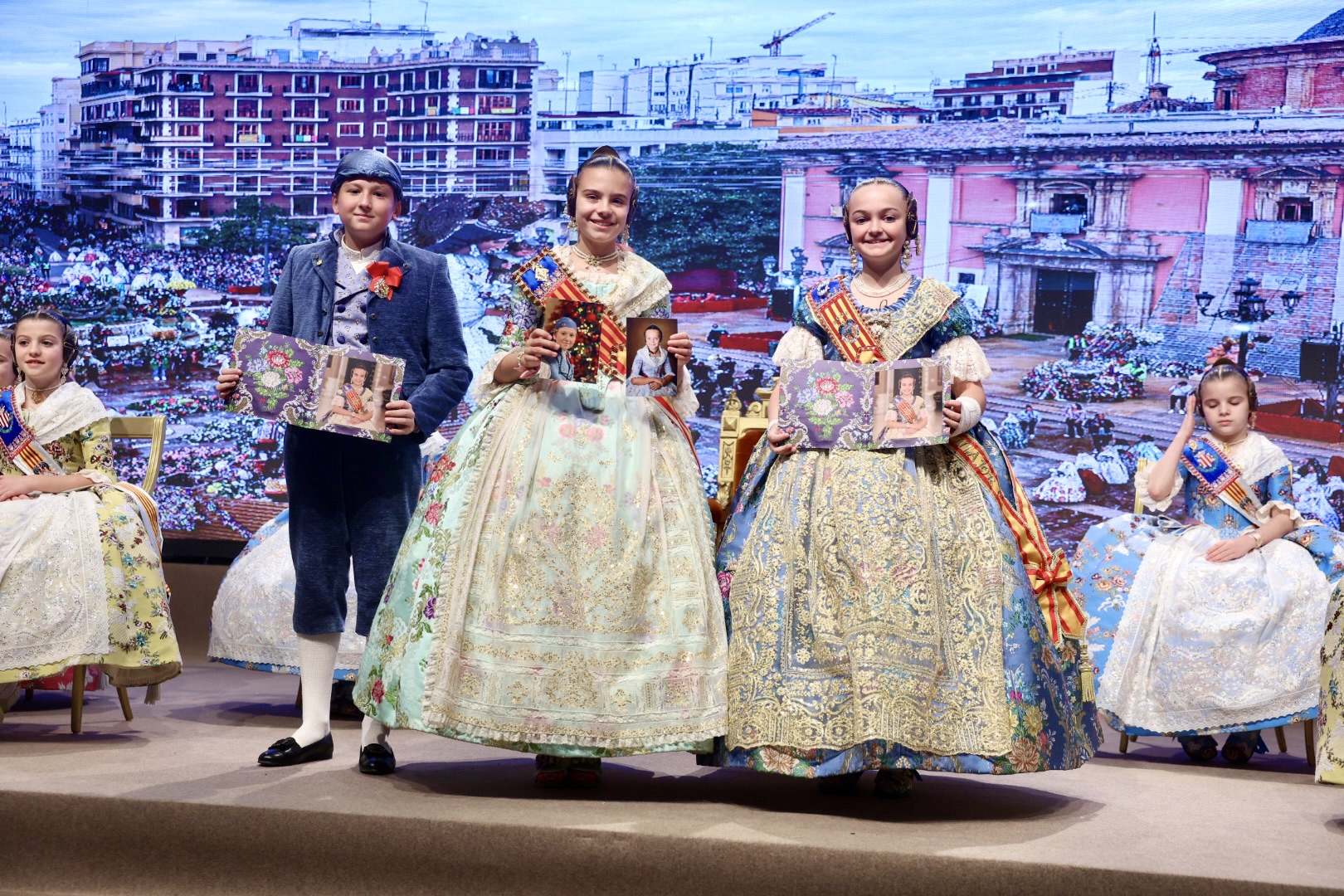 Intercambio de fotos con la Fallera Mayor  Infantil de Valencia con los sectores :