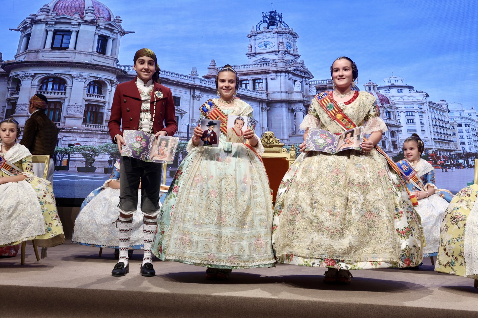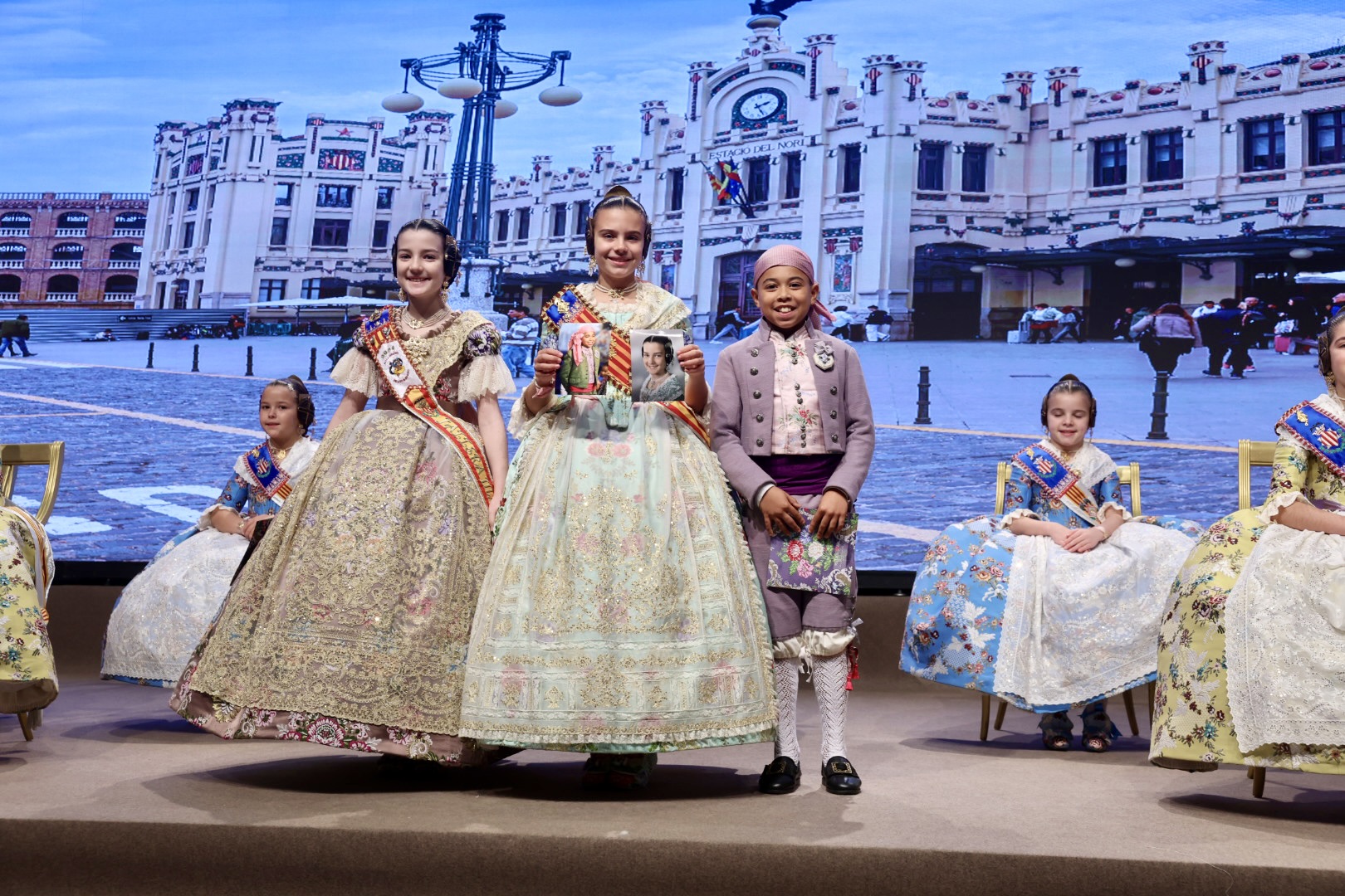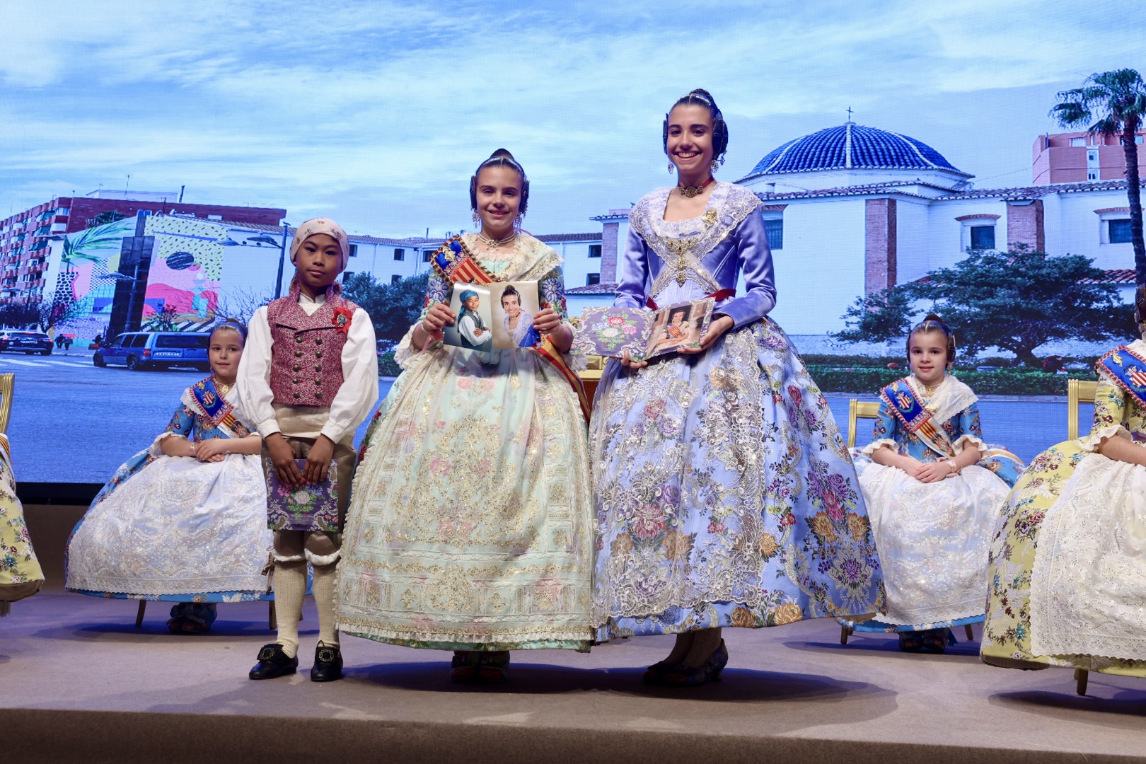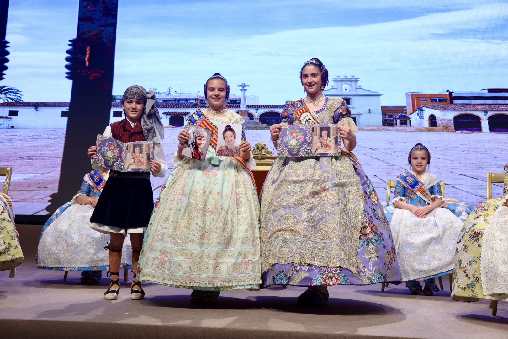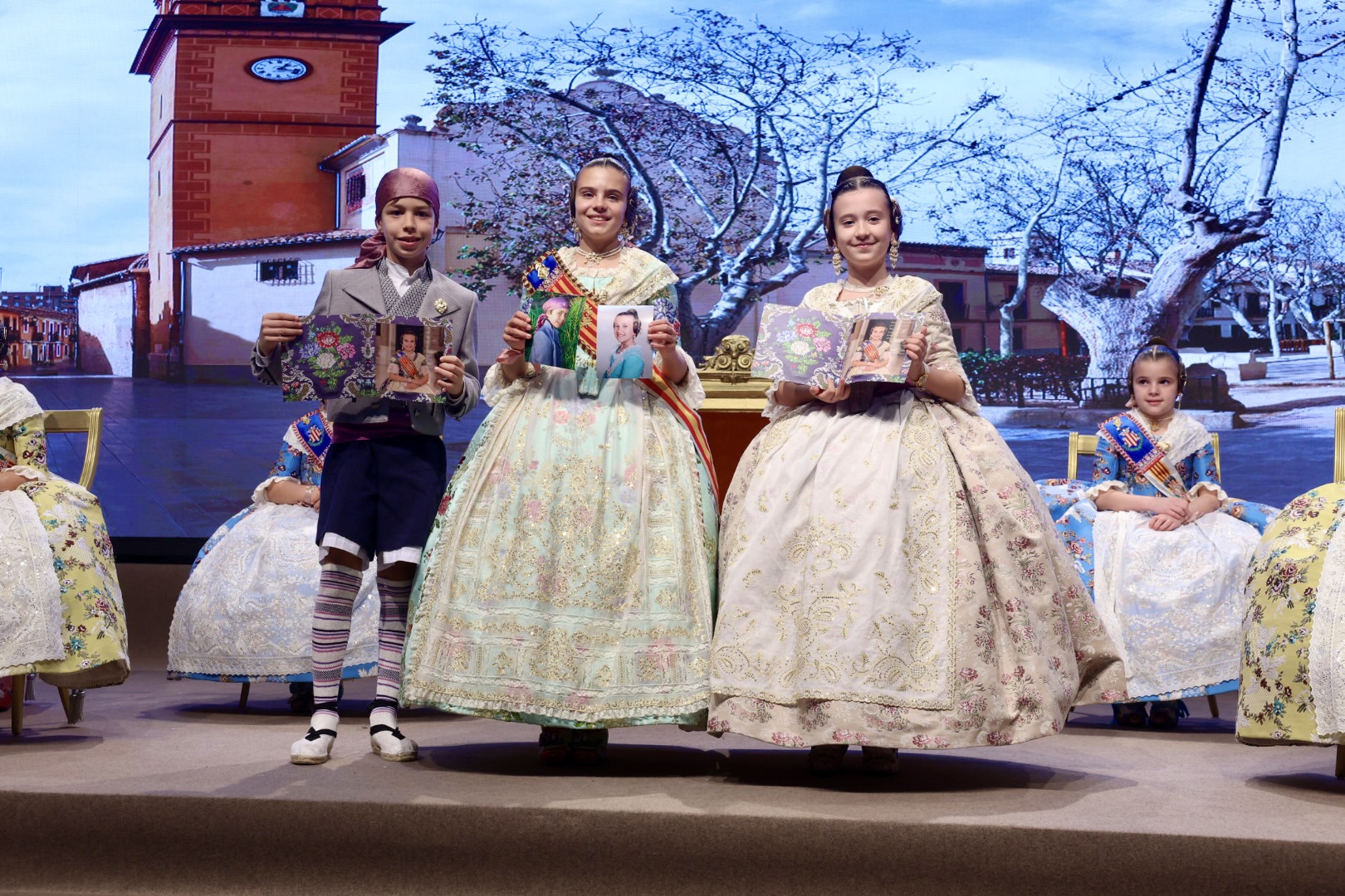 Intercambio de fotos con la Fallera Mayor  Infantil de Valencia con los sectores :