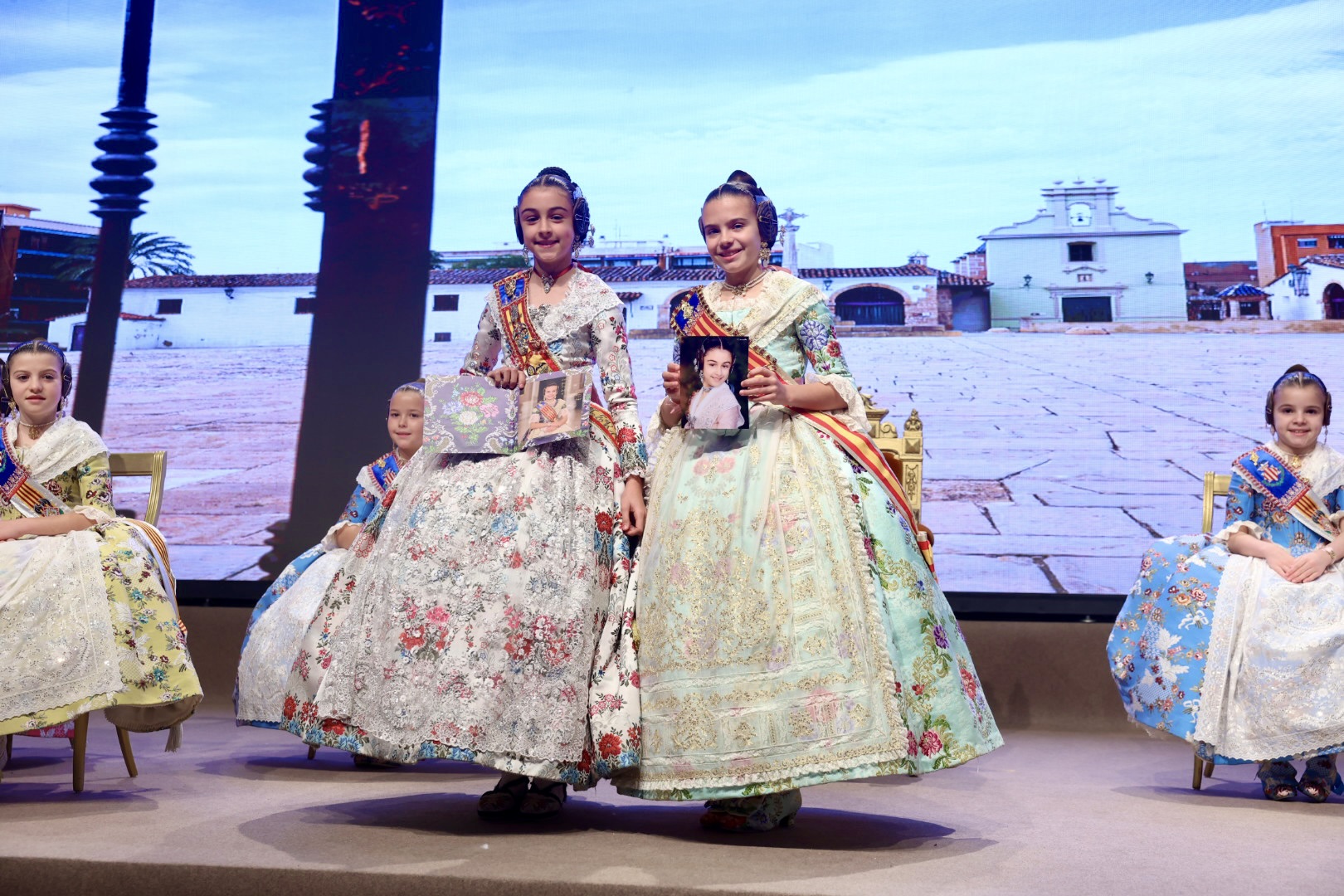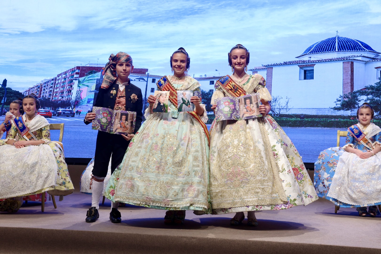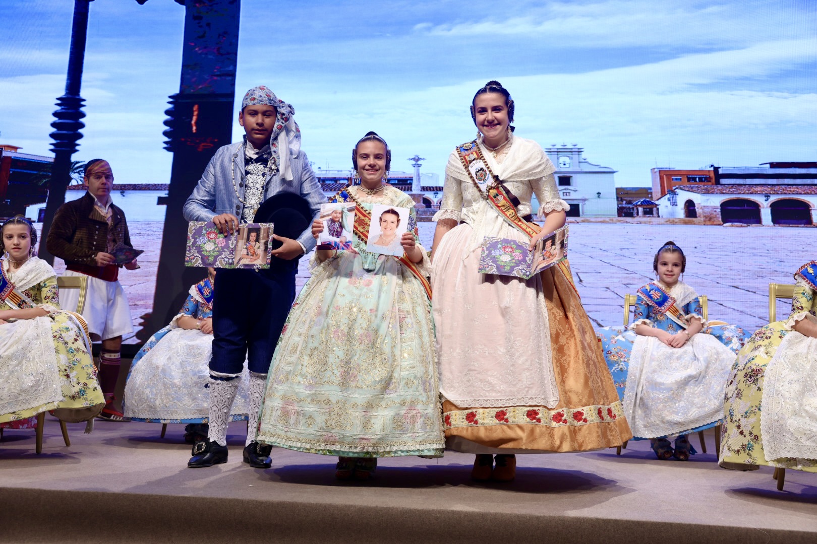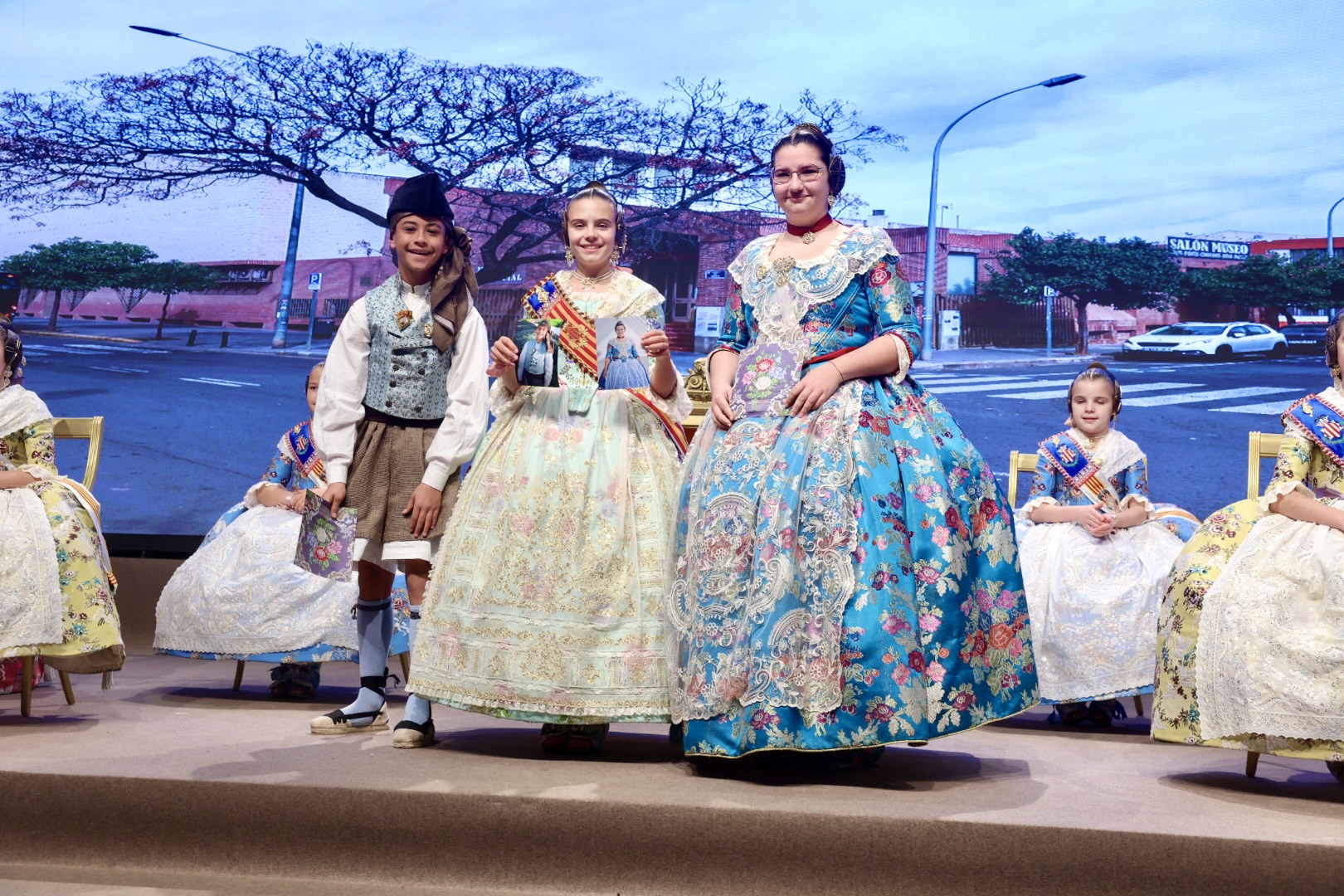 Intercambio de fotos con la Fallera Mayor  Infantil de Valencia con los sectores :