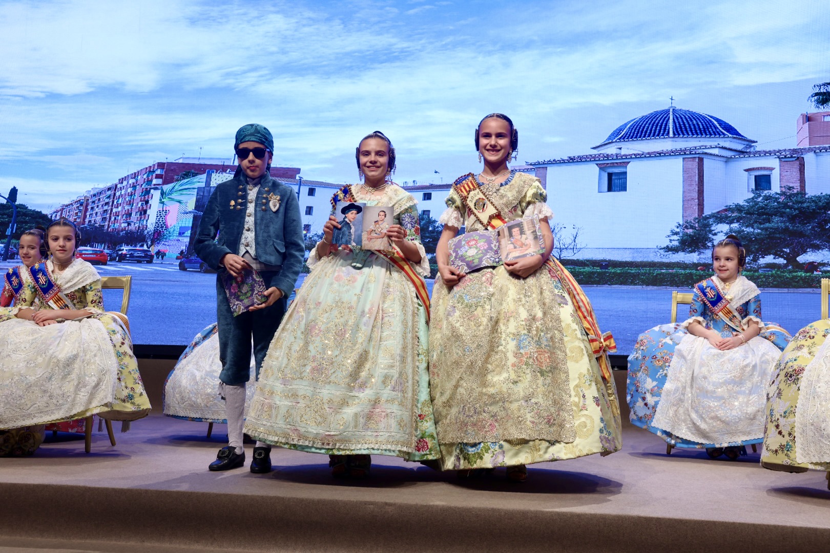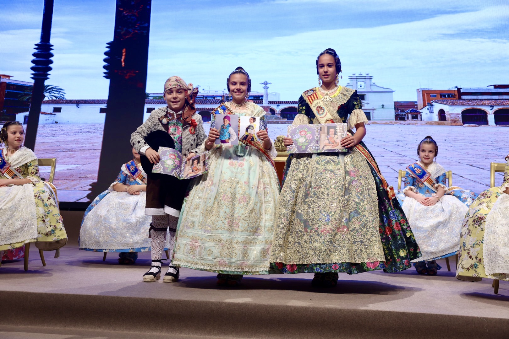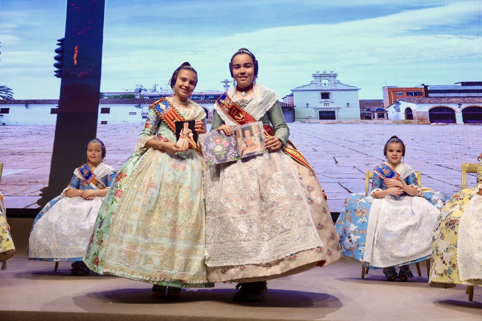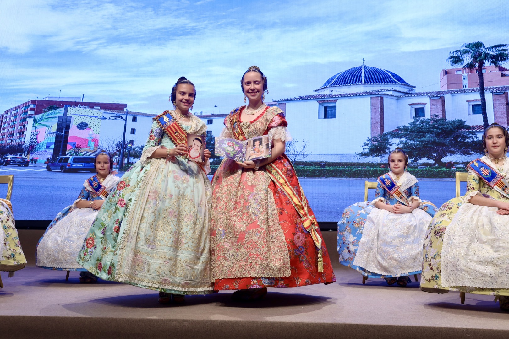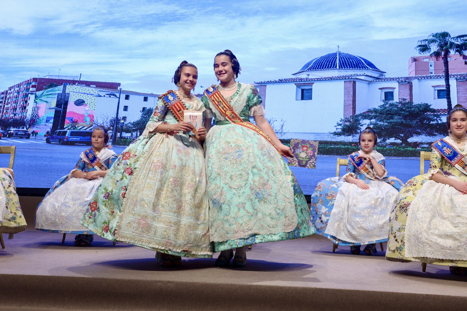Intercambio de fotos con la Fallera Mayor  Infantil de Valencia con los sectores :