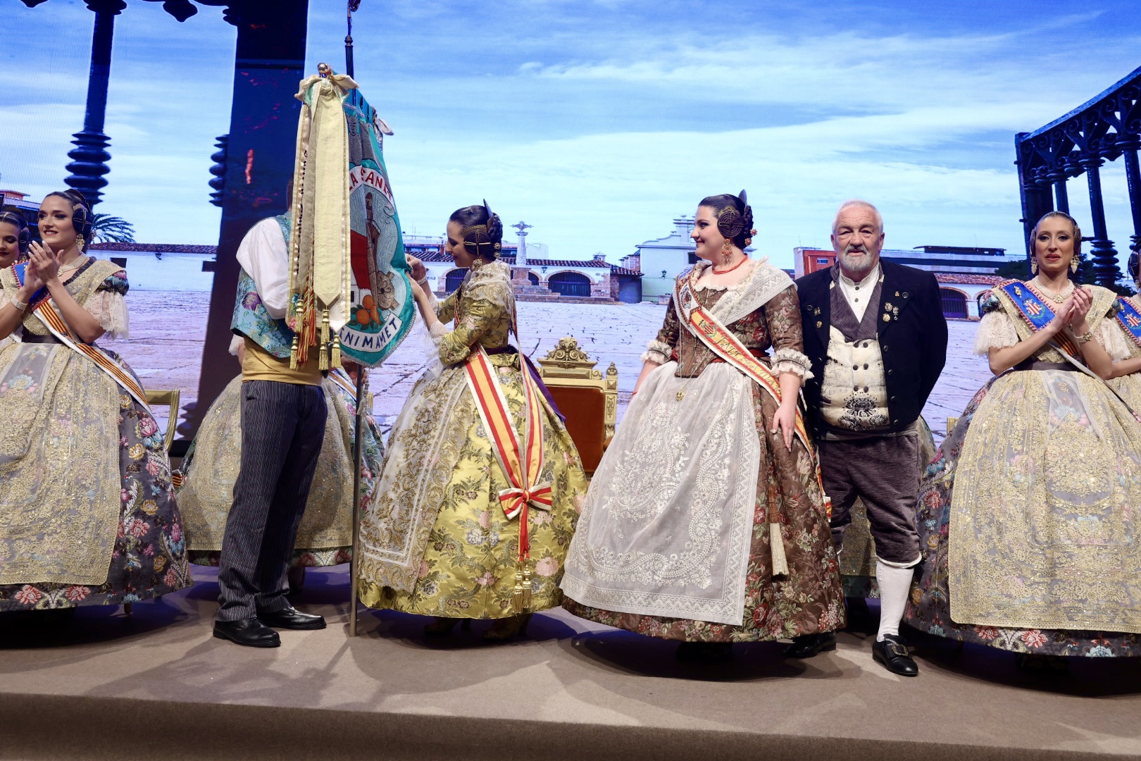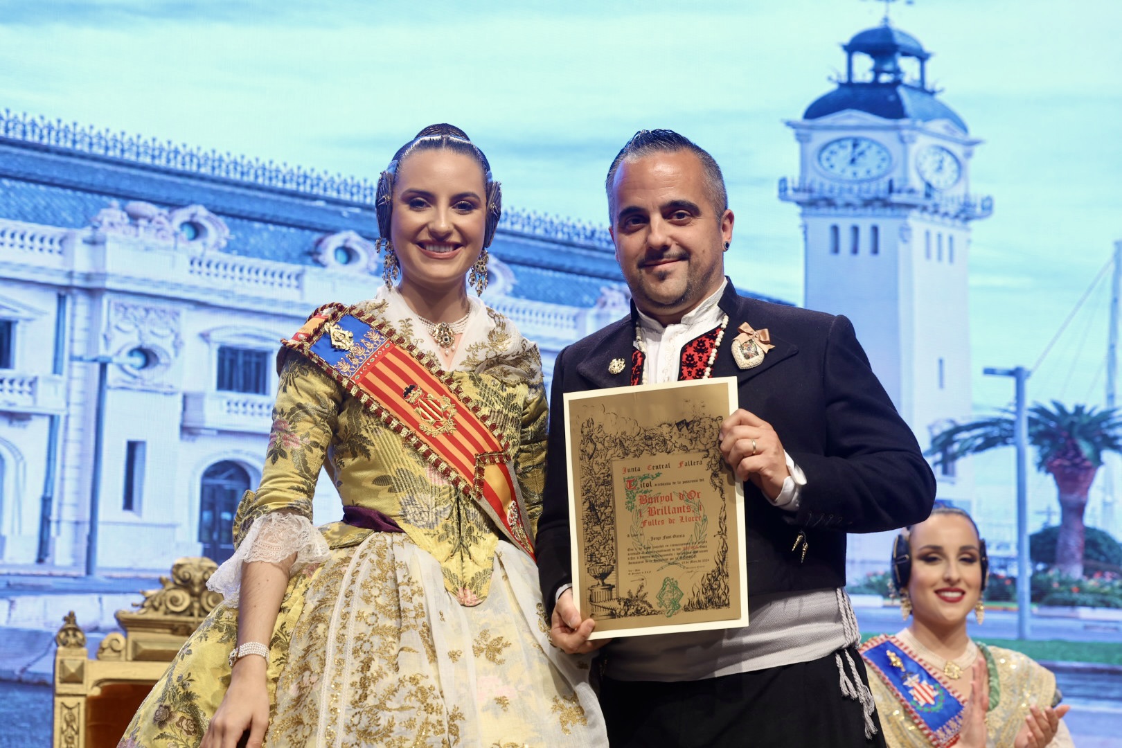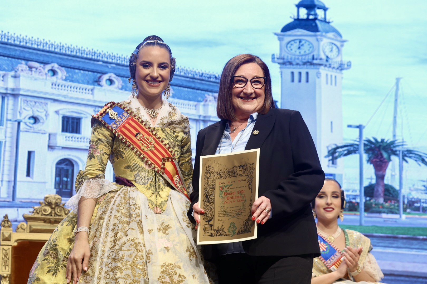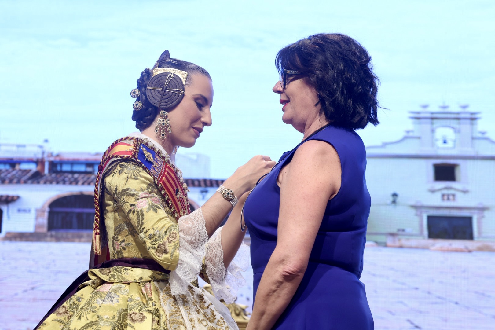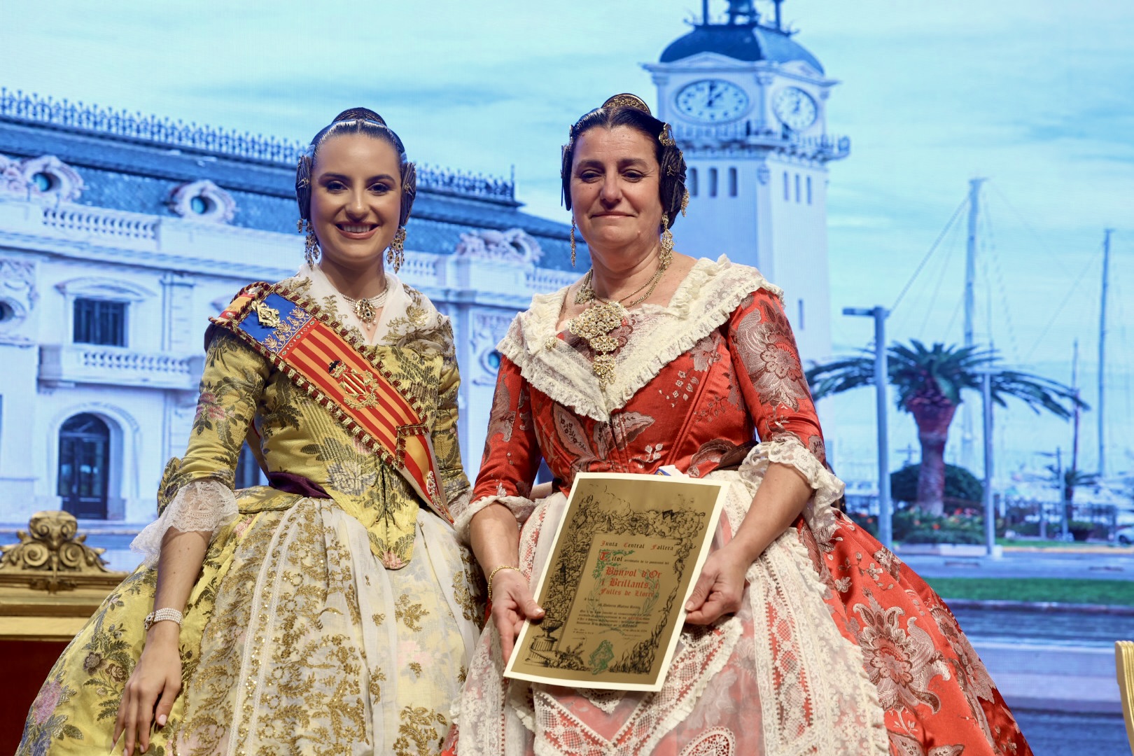 Intercambio de fotos con la Fallera Mayor de Valencia e imposición de recompensas de los sectores: