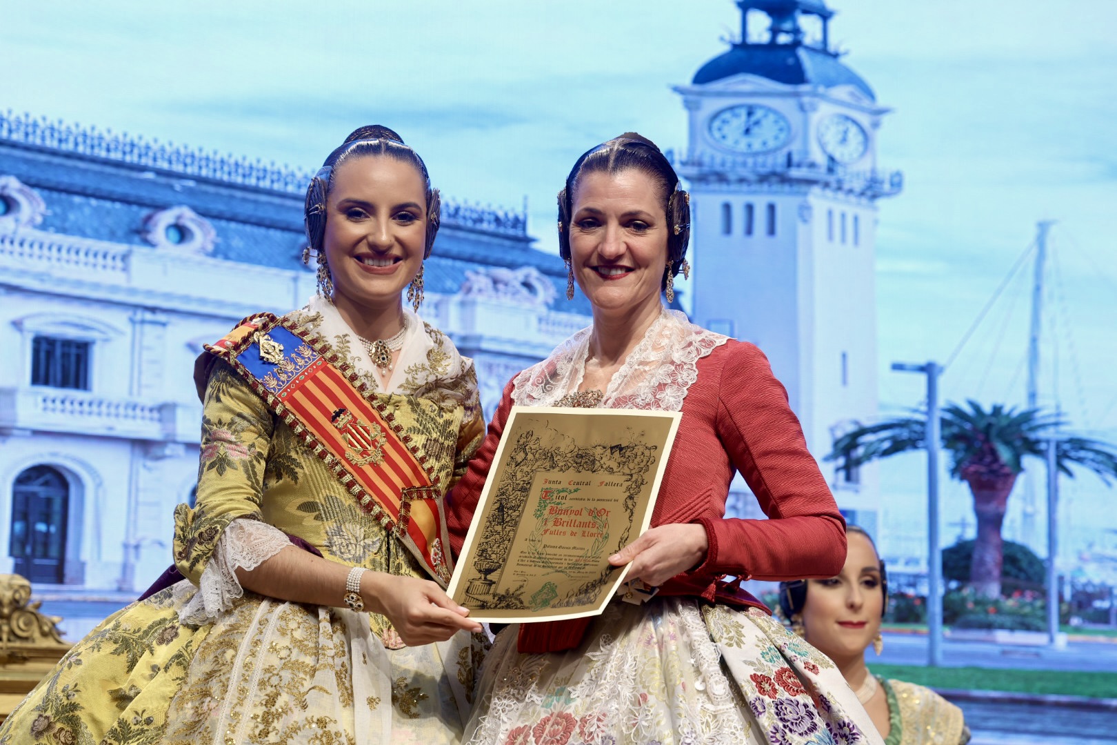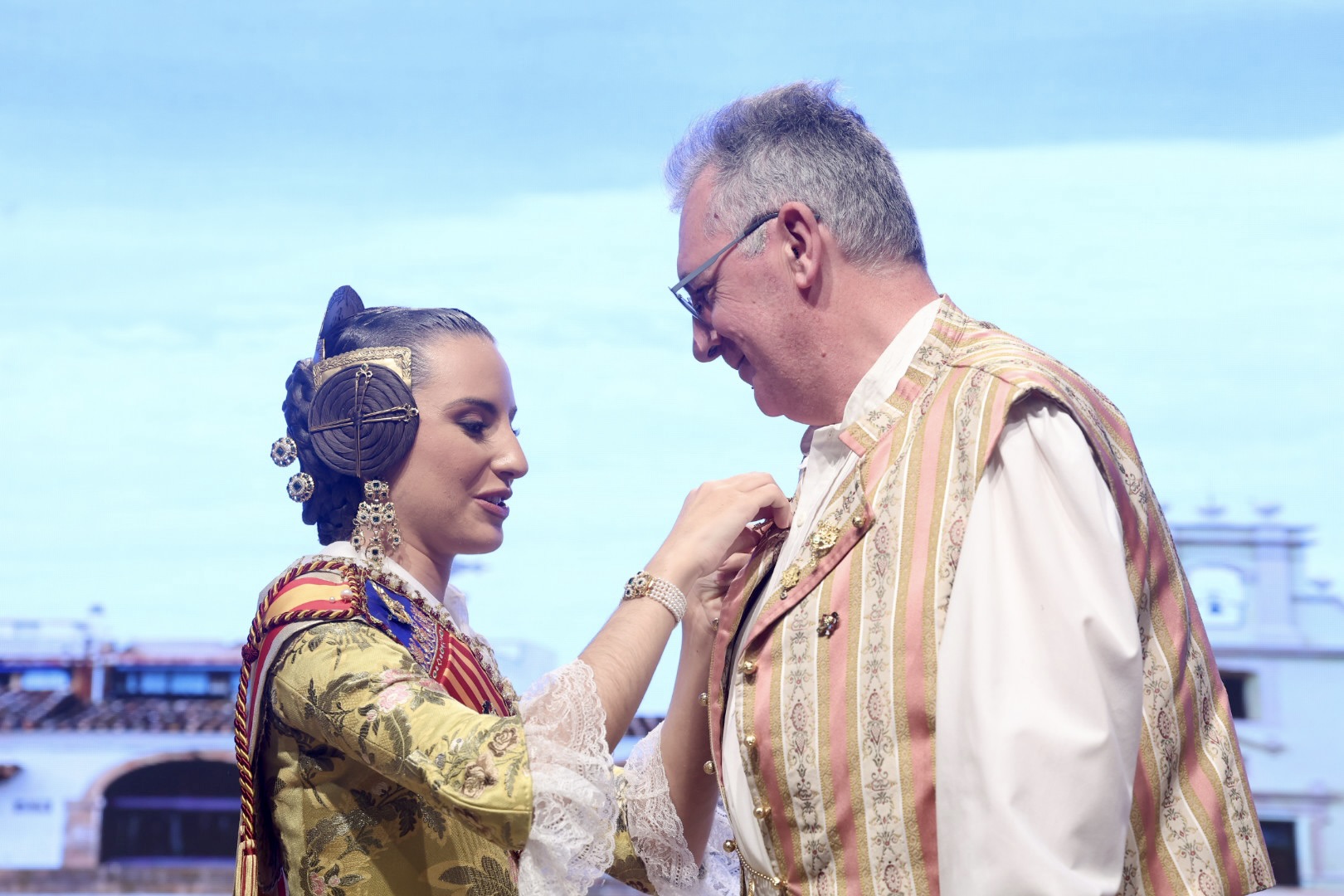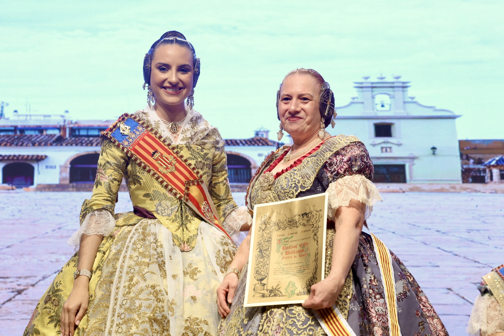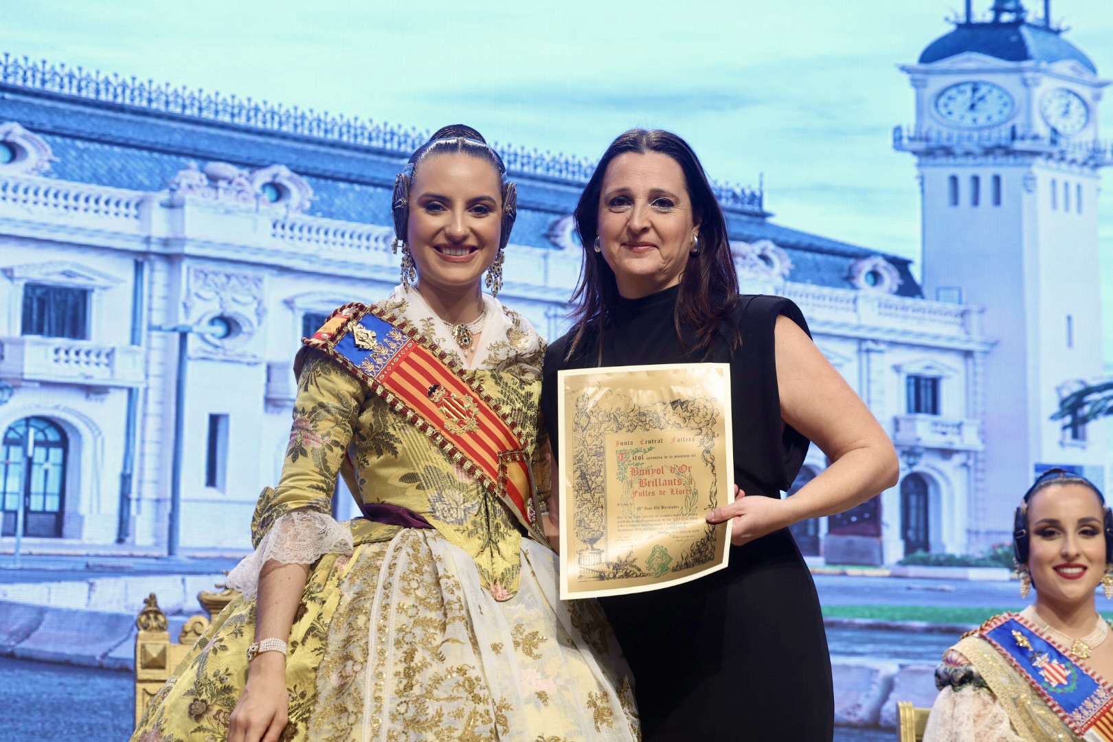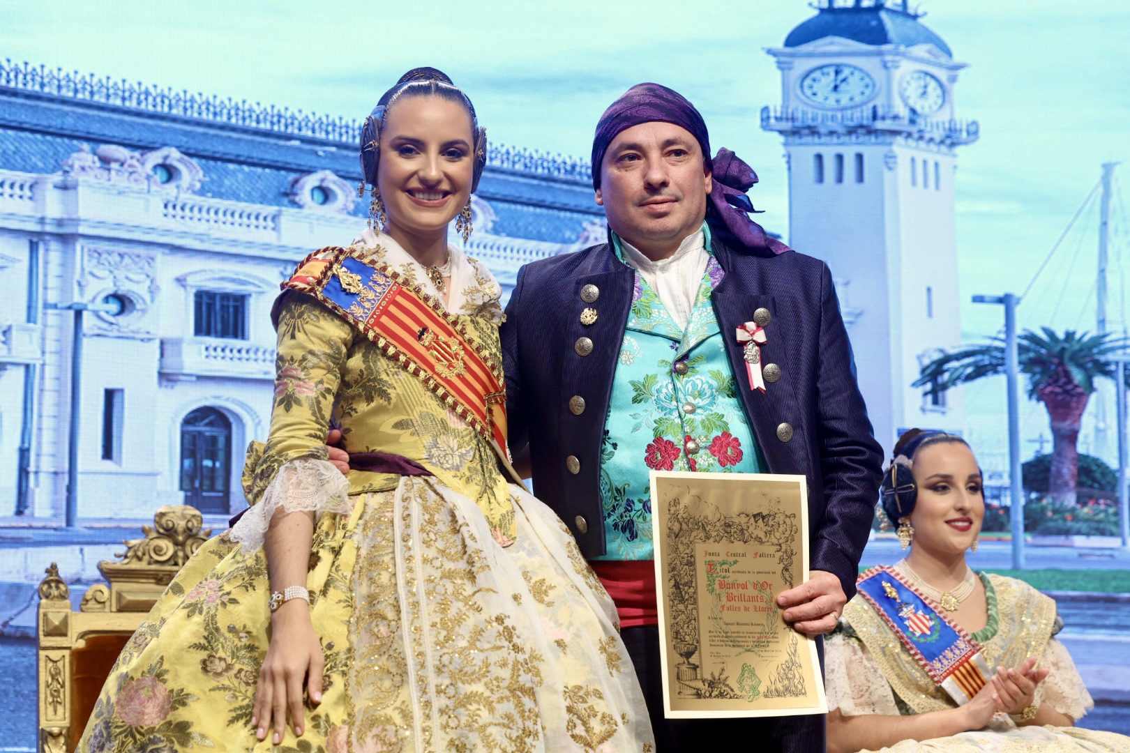 Intercambio de fotos con la Fallera Mayor de Valencia e imposición de recompensas de los sectores: