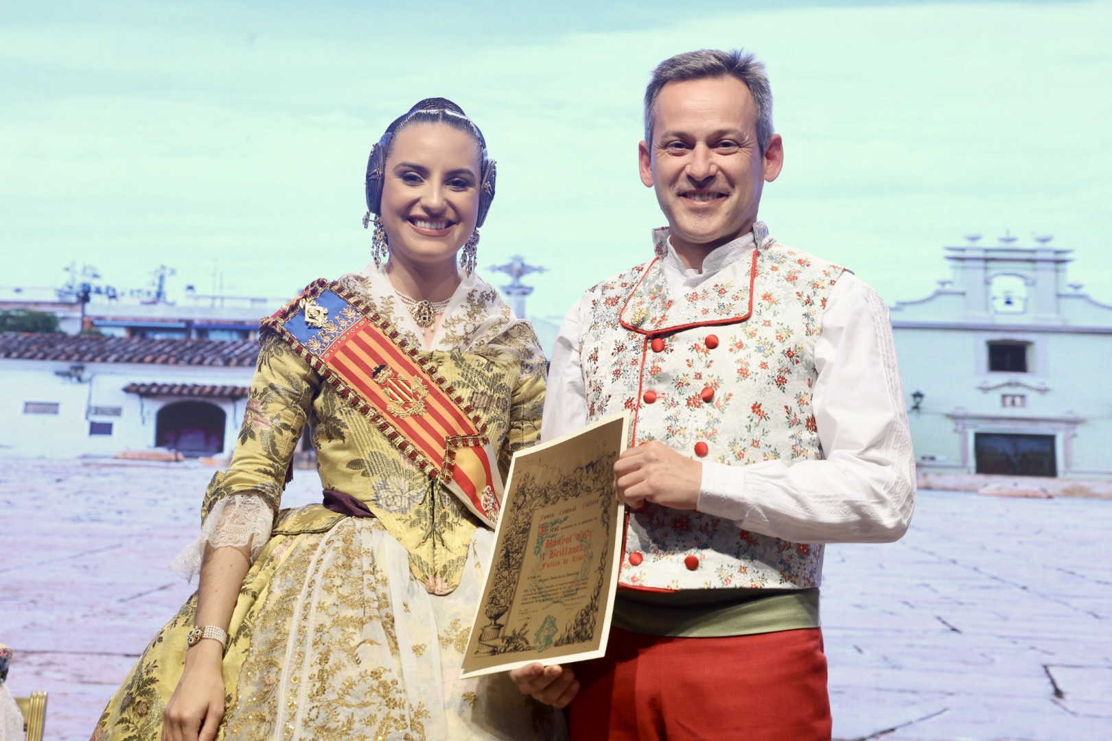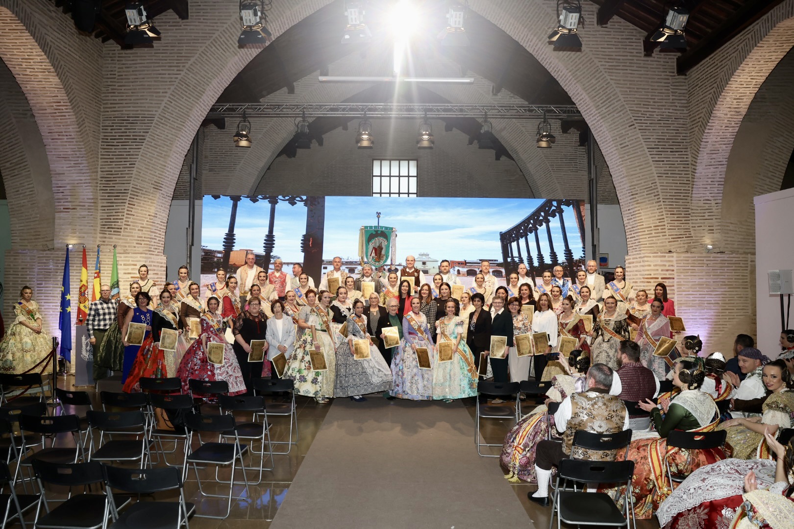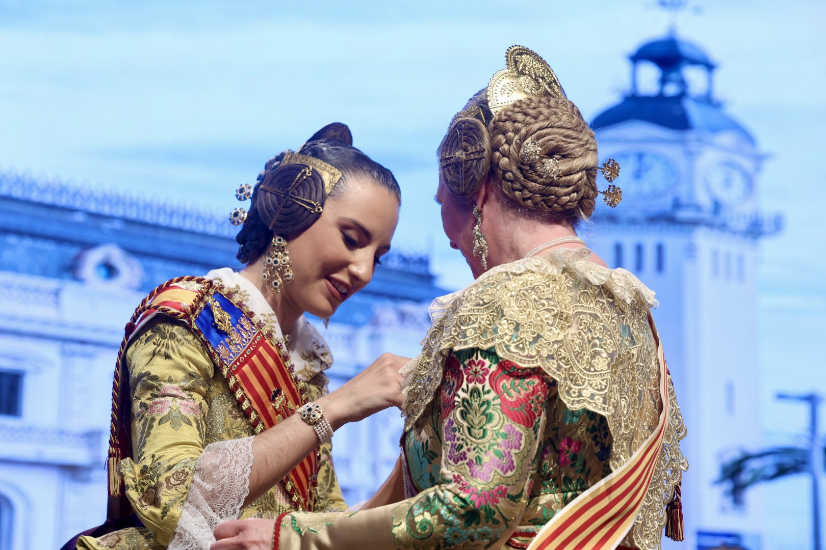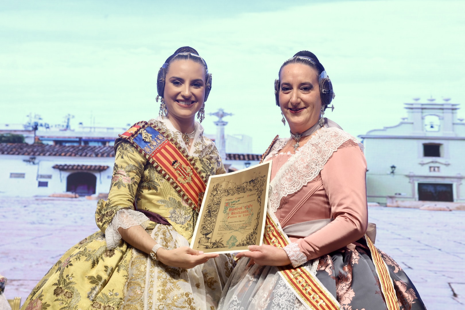 Intercambio de fotos con la Fallera Mayor de Valencia e imposición de recompensas de los sectores:
