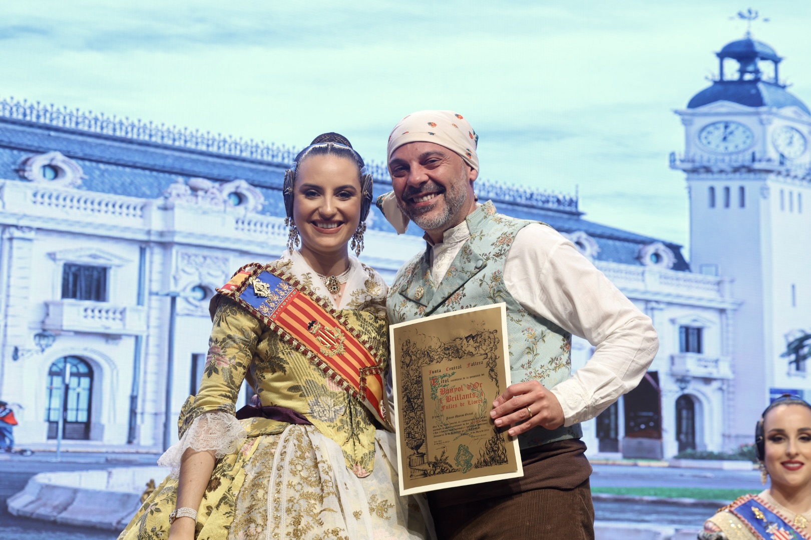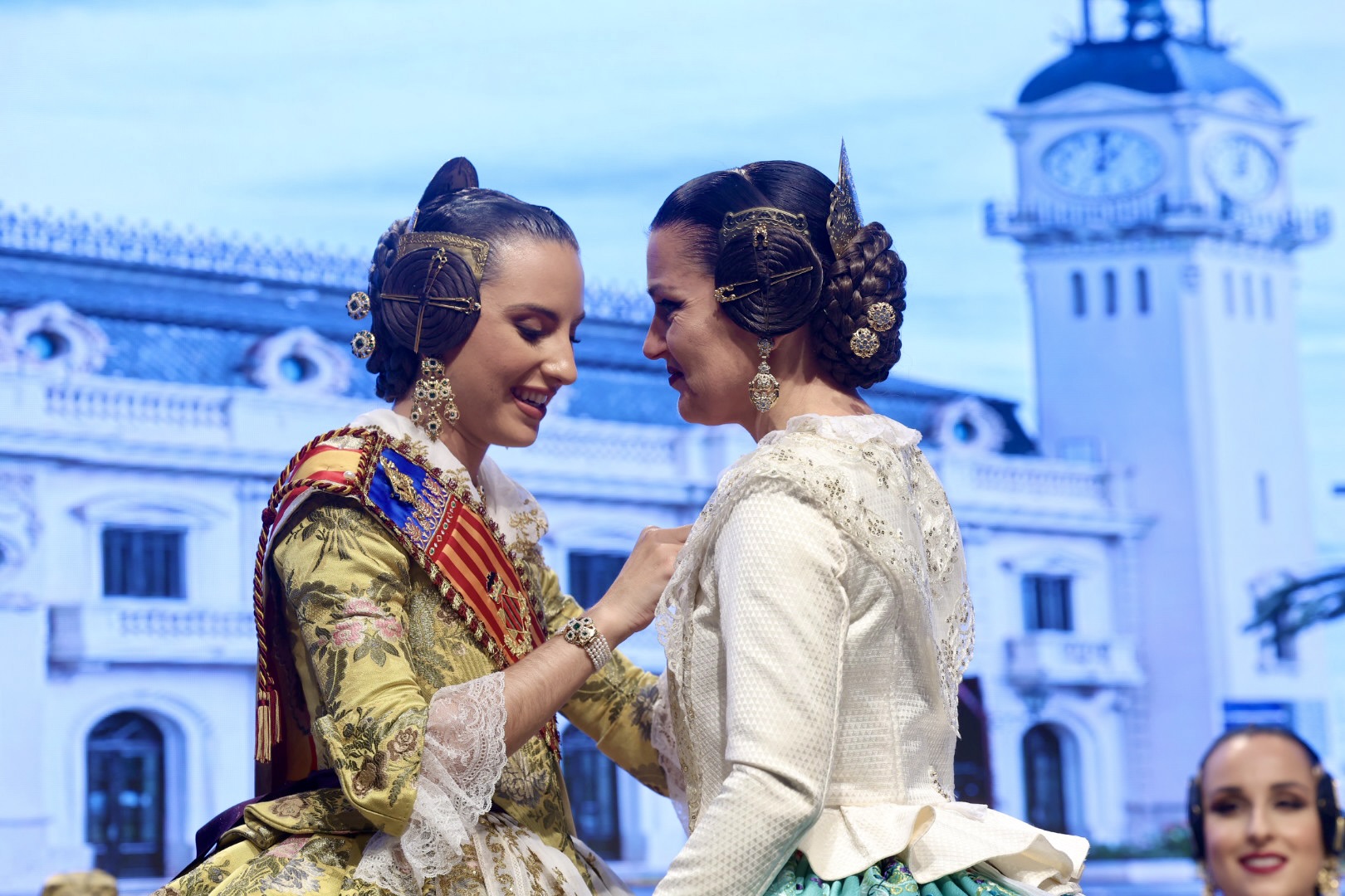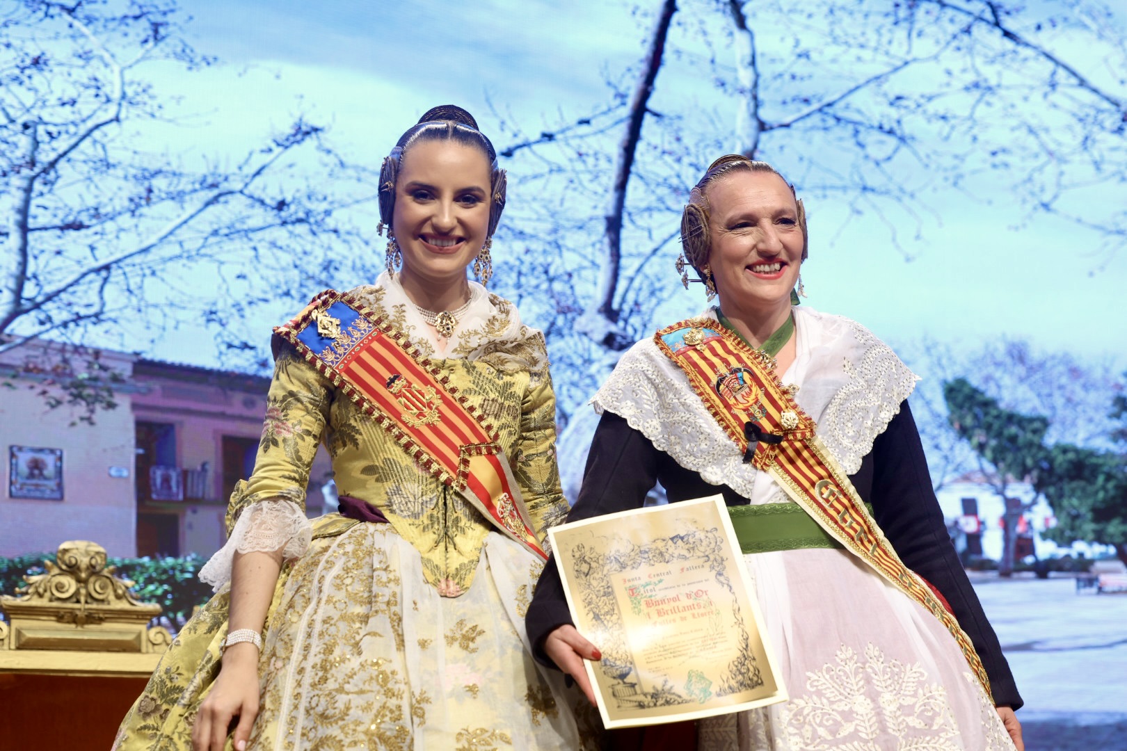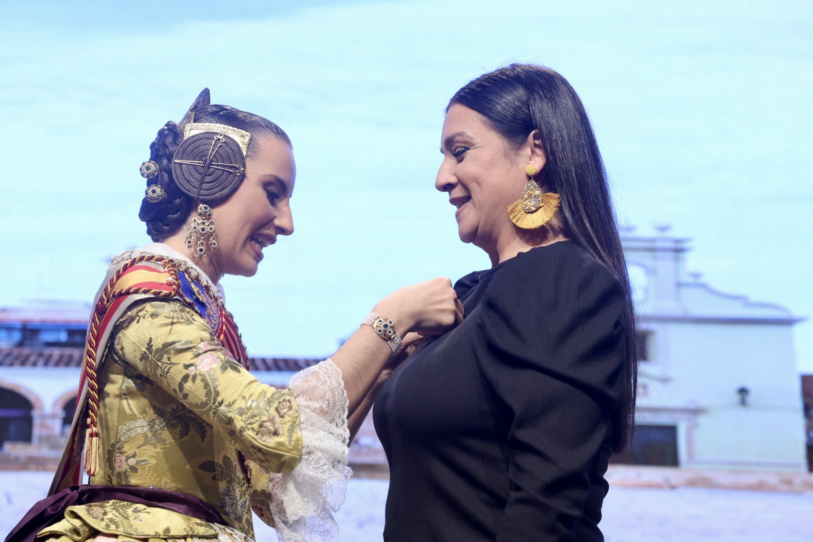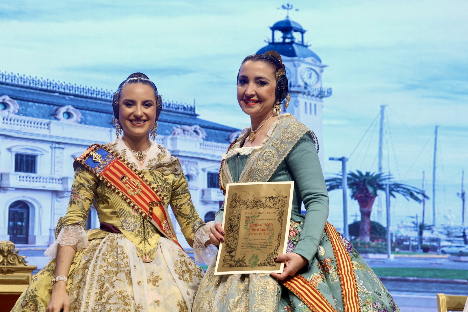 Intercambio de fotos con la Fallera Mayor de Valencia e imposición de recompensas de los sectores: