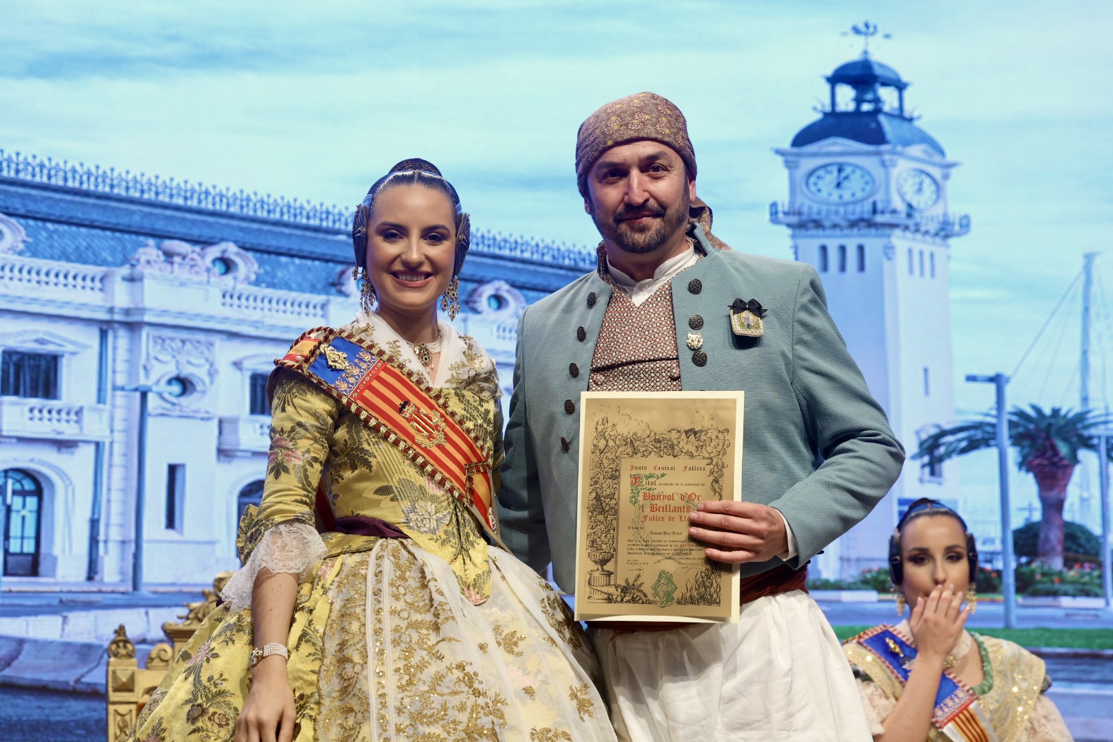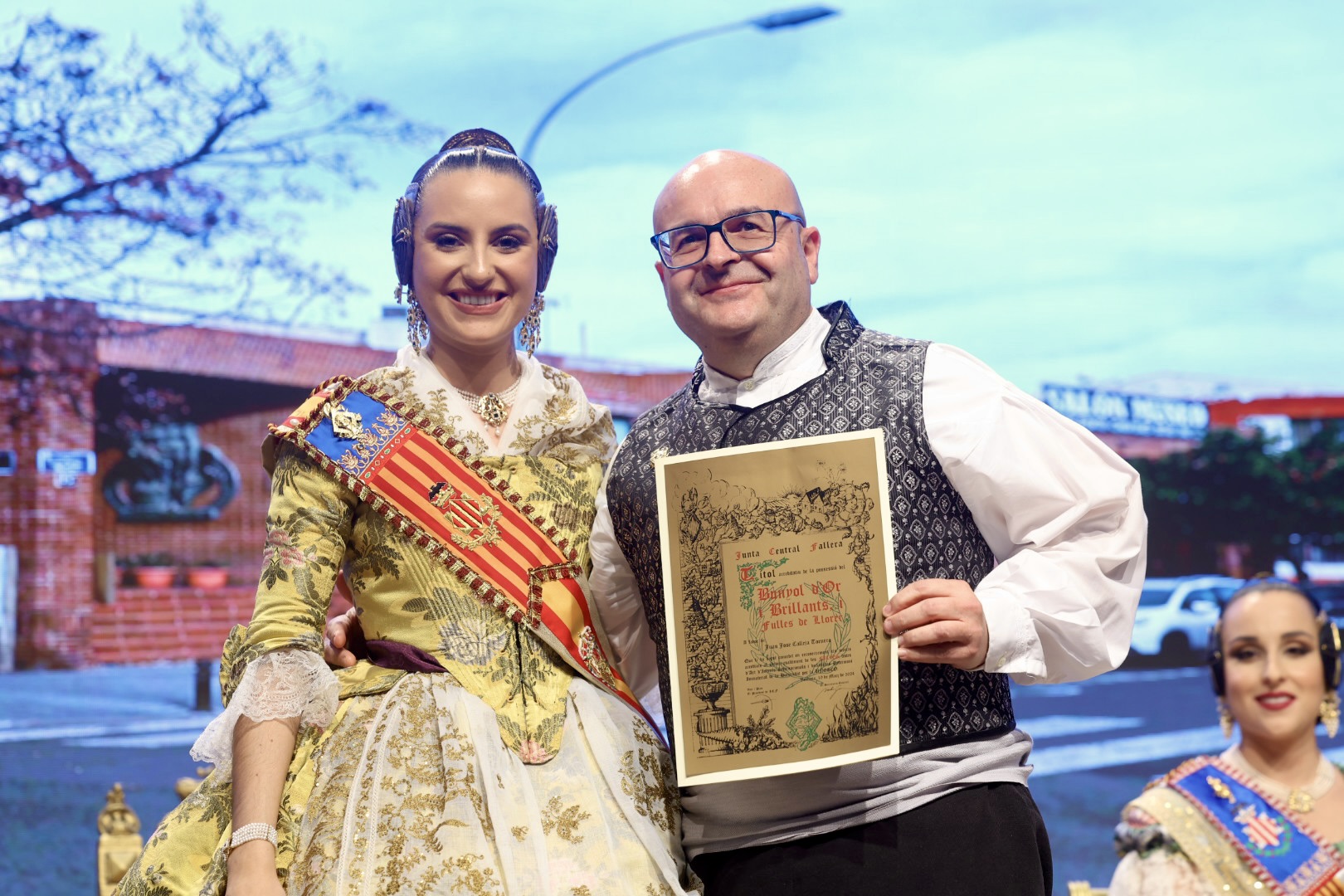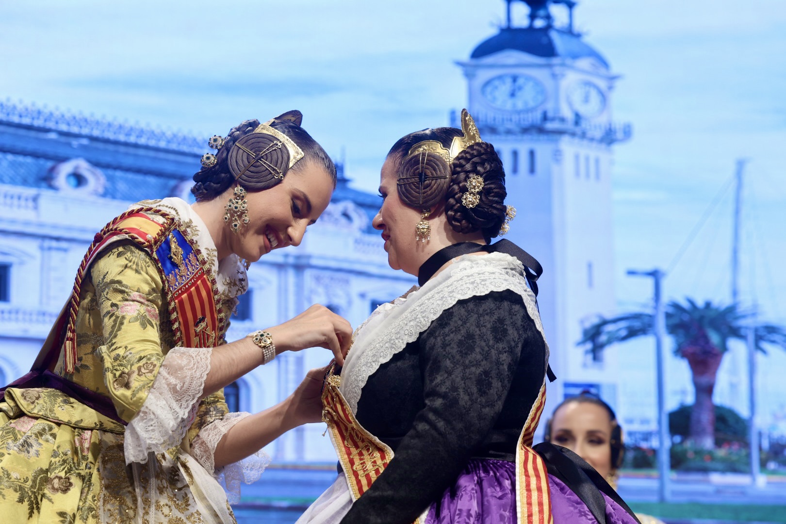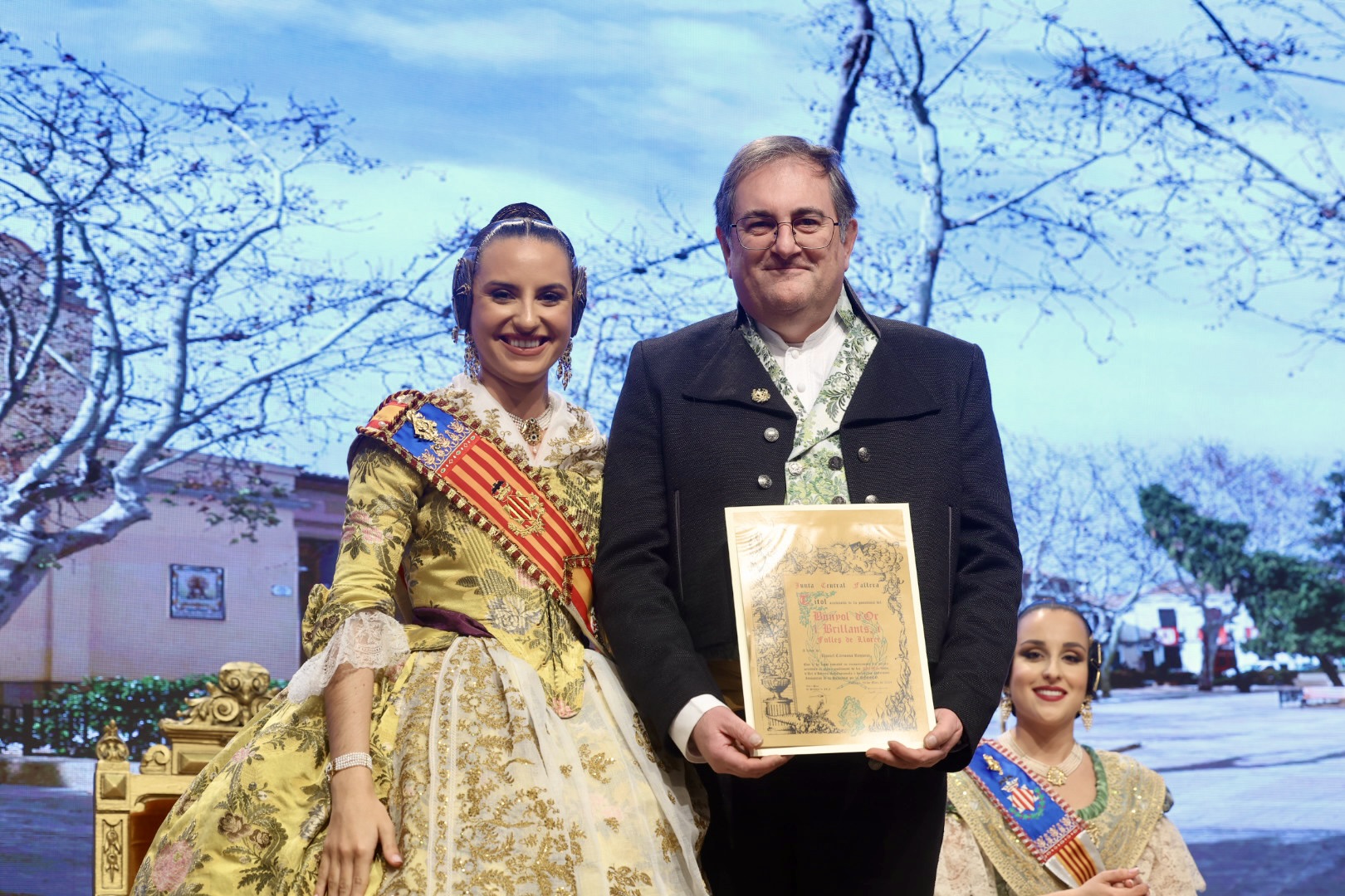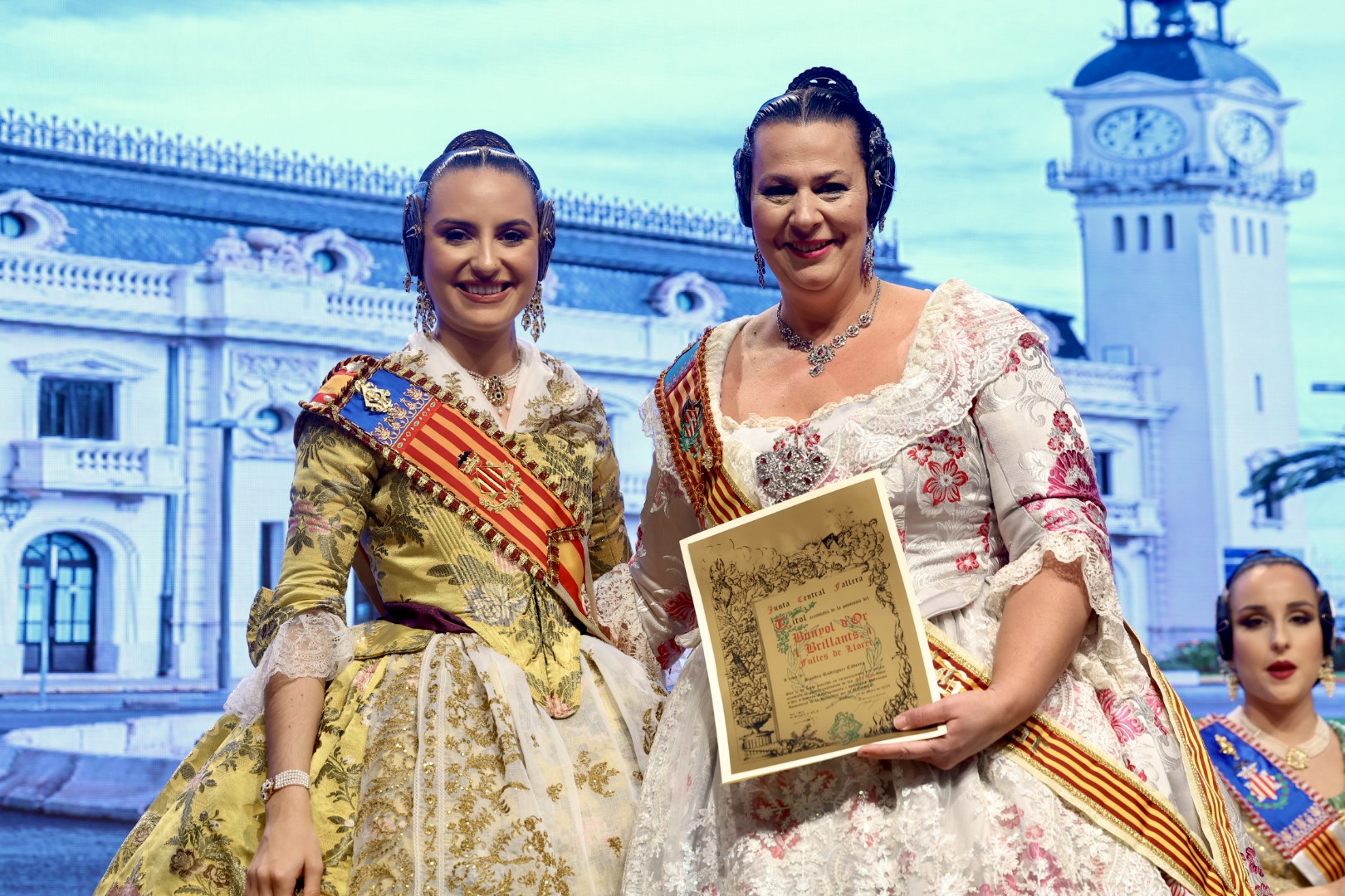 Intercambio de fotos con la Fallera Mayor de Valencia e imposición de recompensas de los sectores:
