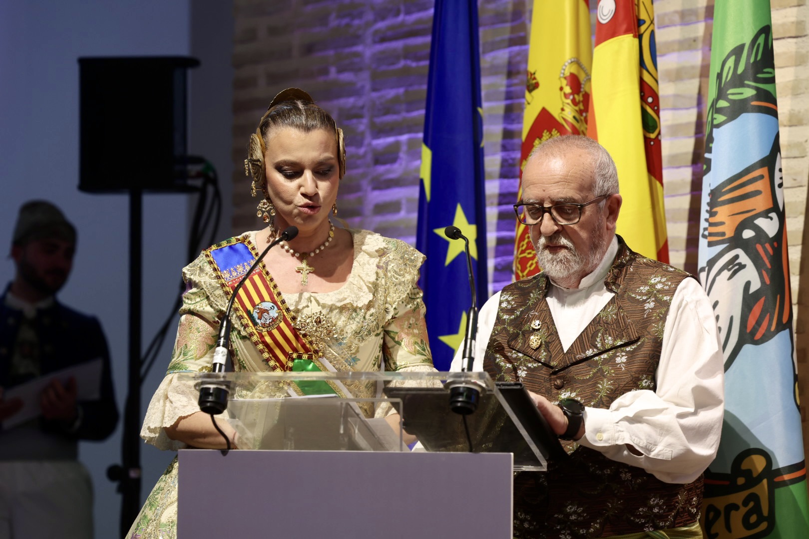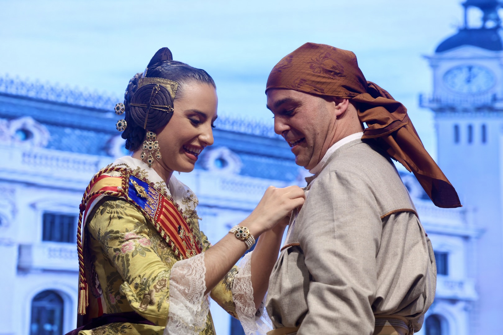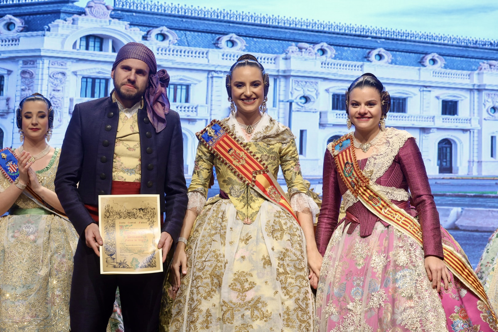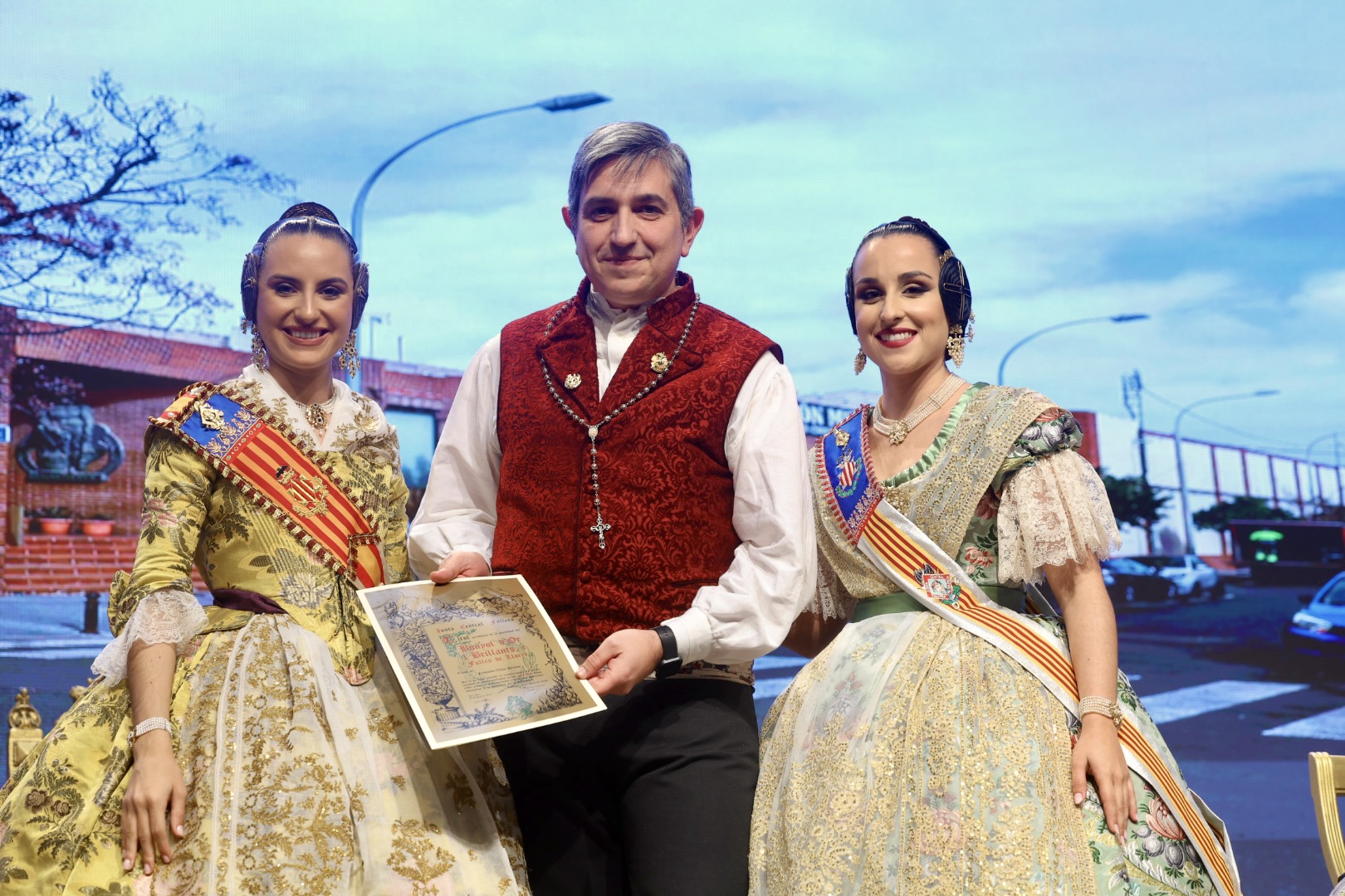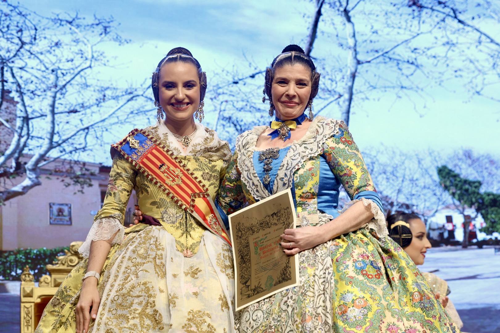 Intercambio de fotos con la Fallera Mayor de Valencia e imposición de recompensas de los sectores:
