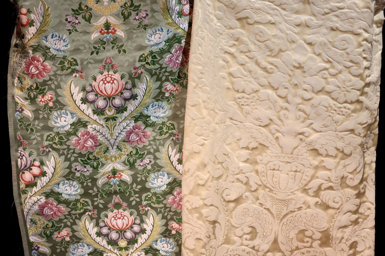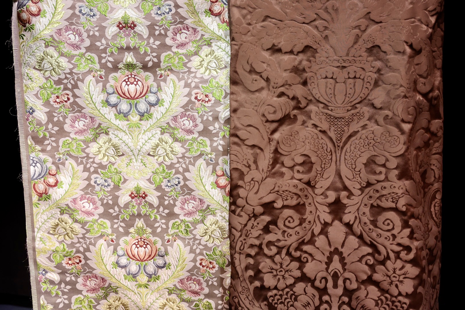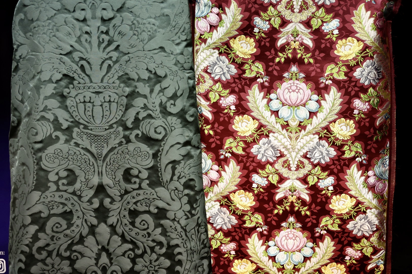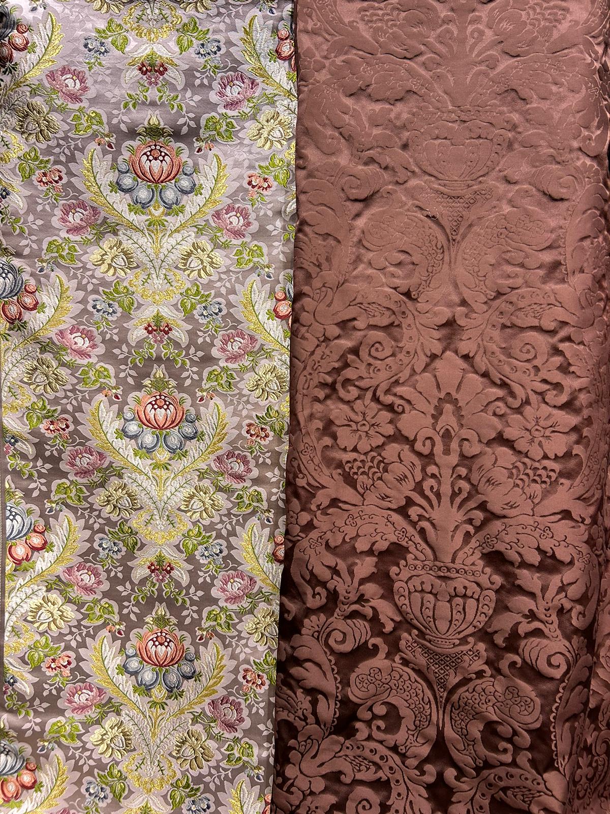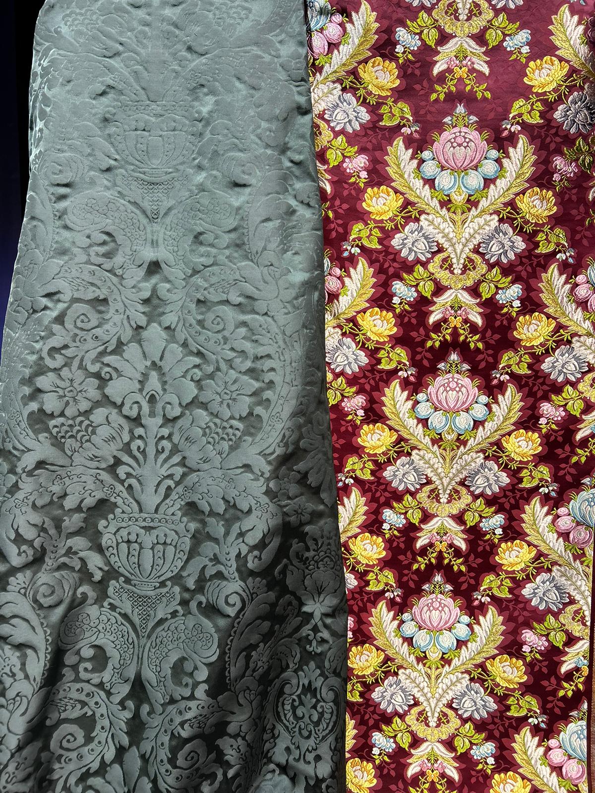 Ana Miralles Coloma i Carla Olmos Llovera – Estrecho de seda “CORONA” borgoña y damasco “ESTAMBUL” laurel.