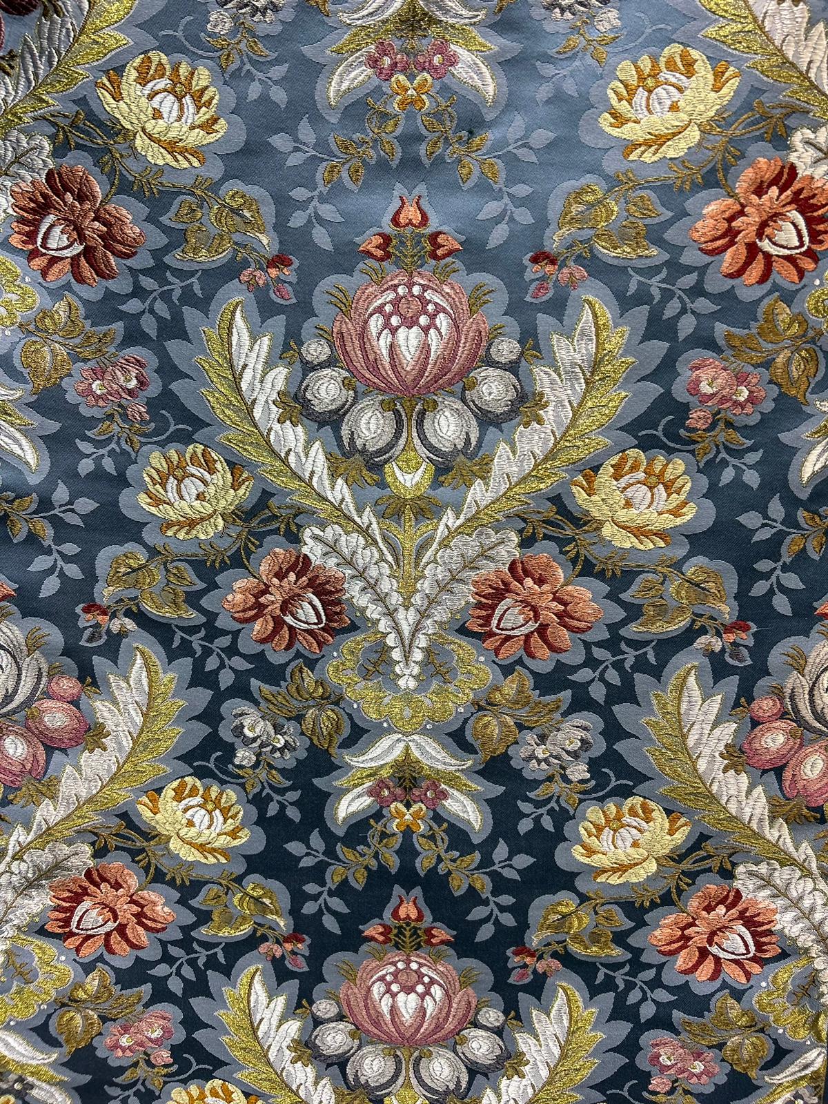 Espolín en color Azul ‘Atlantis’, tejido por Vives y Marí