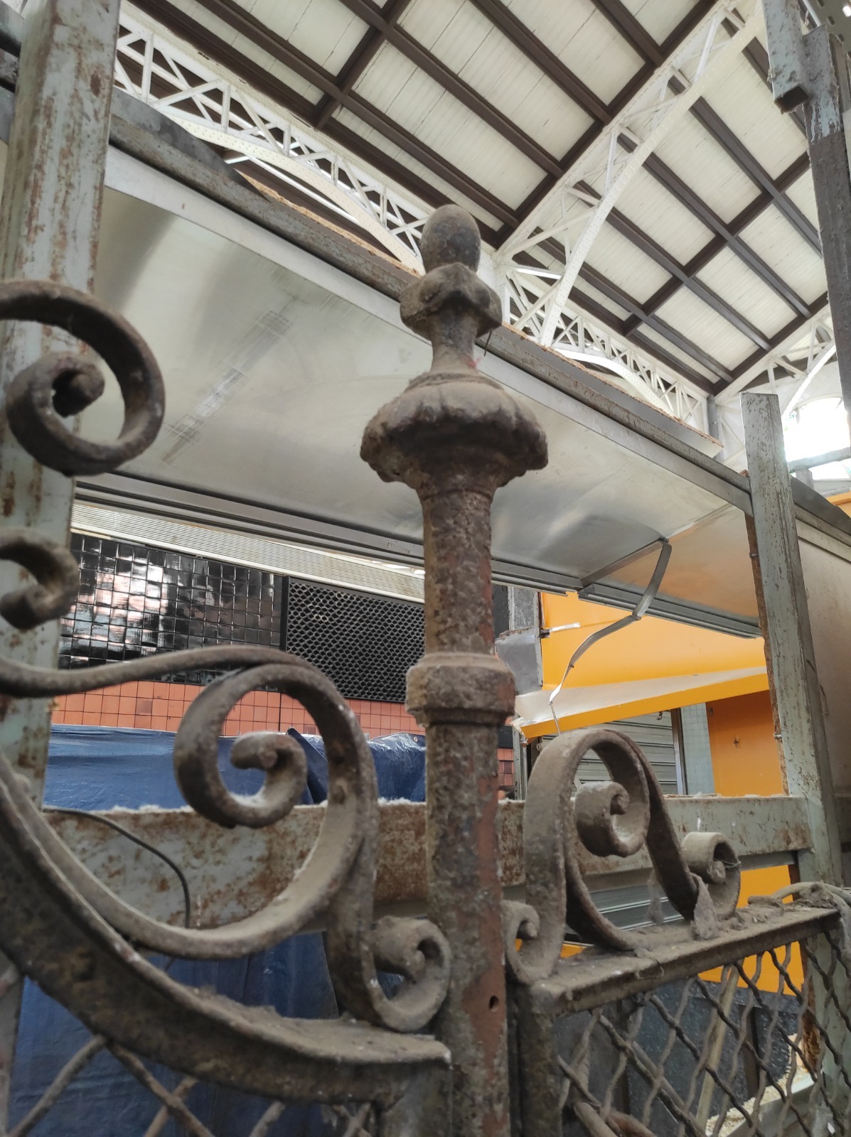 • Rejería histórica, con pilastras ornamentadas con motivos florales y divisiones de puestos decoradas con detalles curvos en forja, además de los soportes de antiguos números de las paradas.