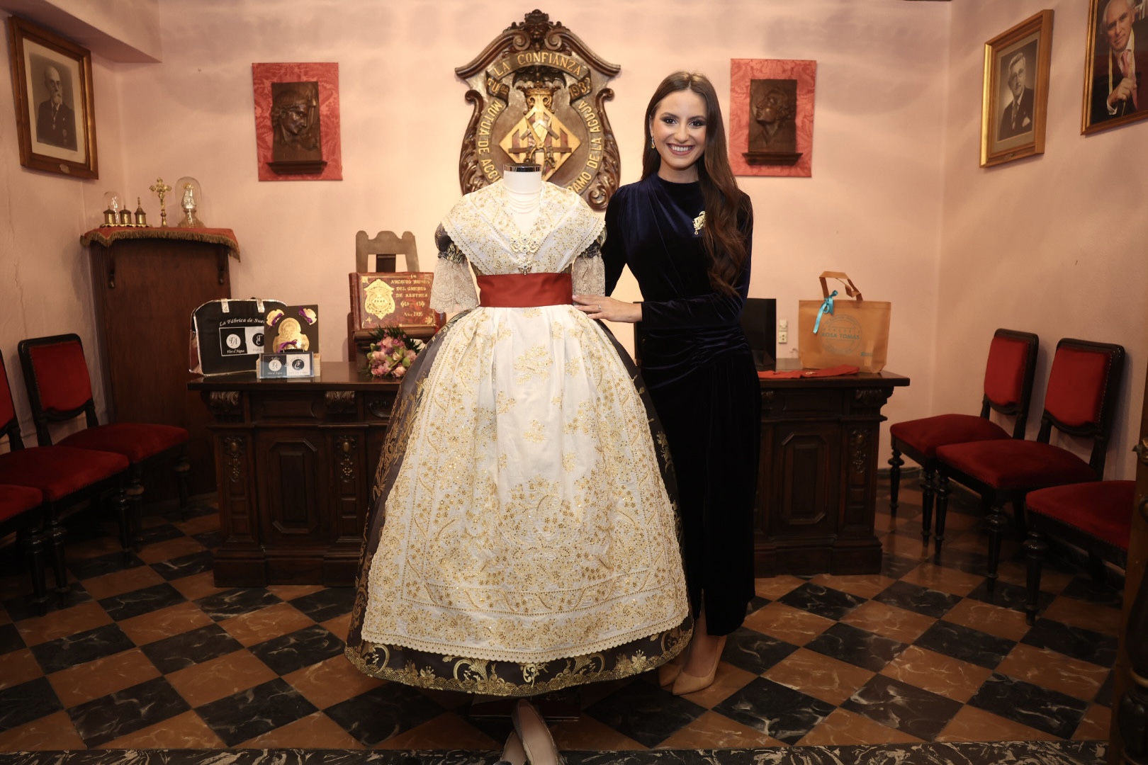 GALERÍA| Un traje ‘Azucena’ marengo, regalo del Gremio de Sastres y Modistas a María Estela Arlandis