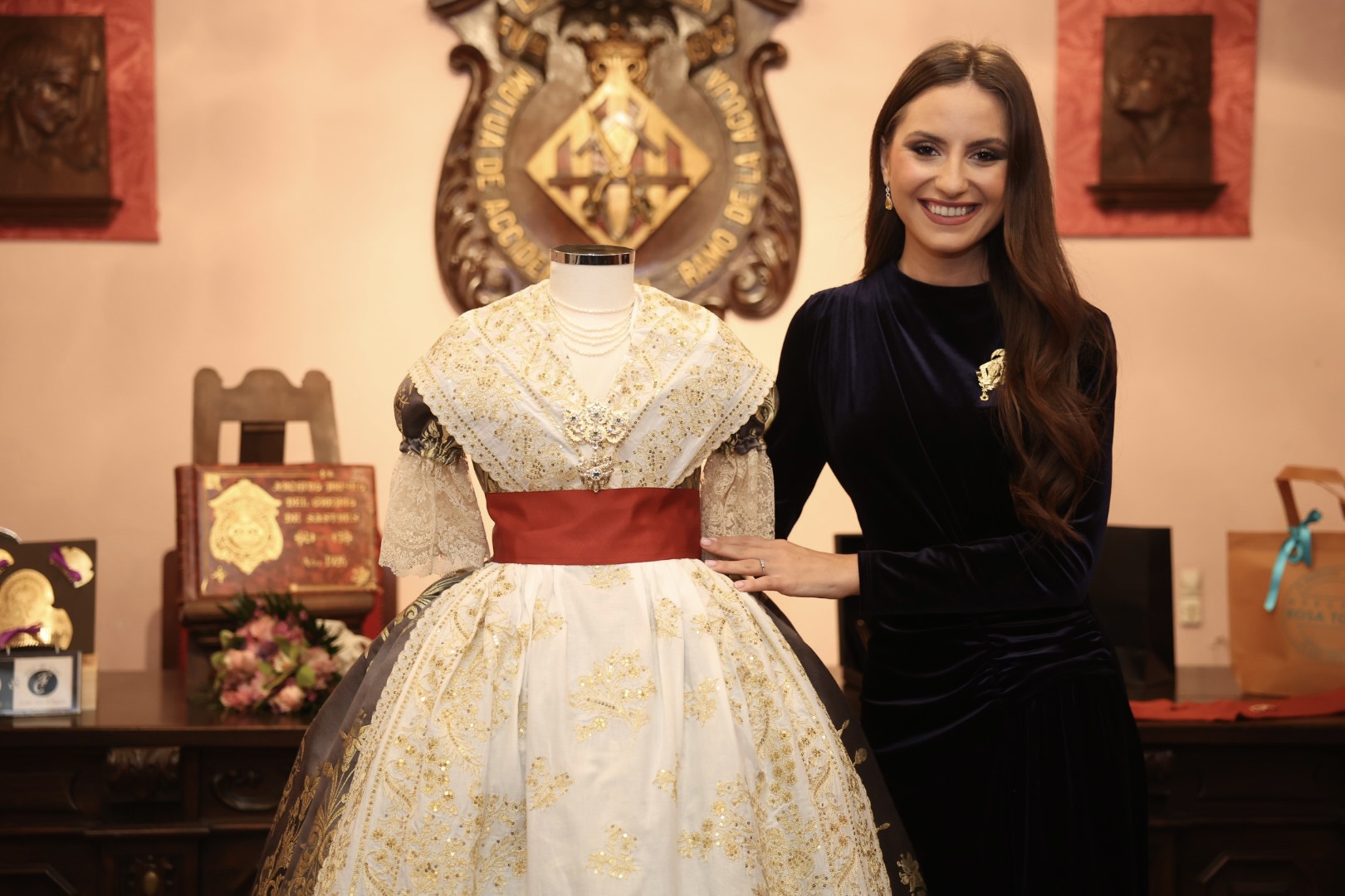Este miércoles se ha presentado el traje completo de indumentaria tradicional, un ‘Azucena’ marengo, regalo del Gremio Artesano de Sastres y Modistas de la Comunidad Valenciana a la Fallera Mayor de Valencia y que lucirá la propia María Estela Arlandis Ferrando en la Gala de la Cultura organizada que tendrá lugar este jueves.