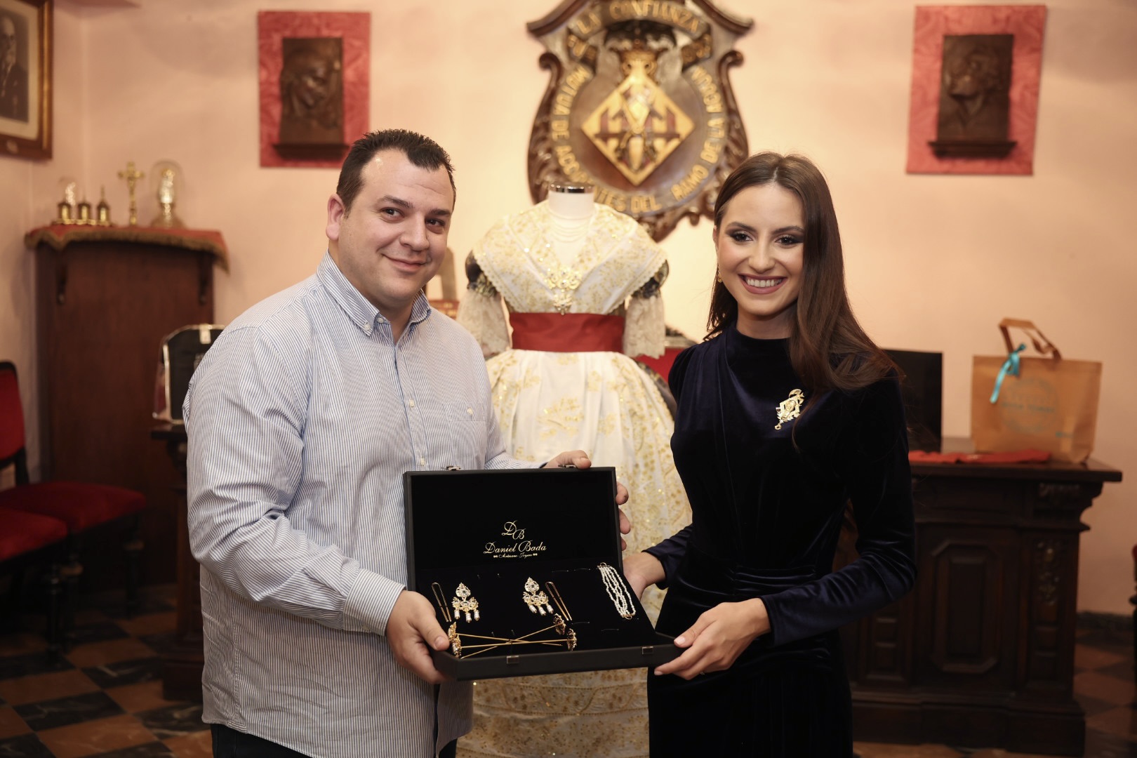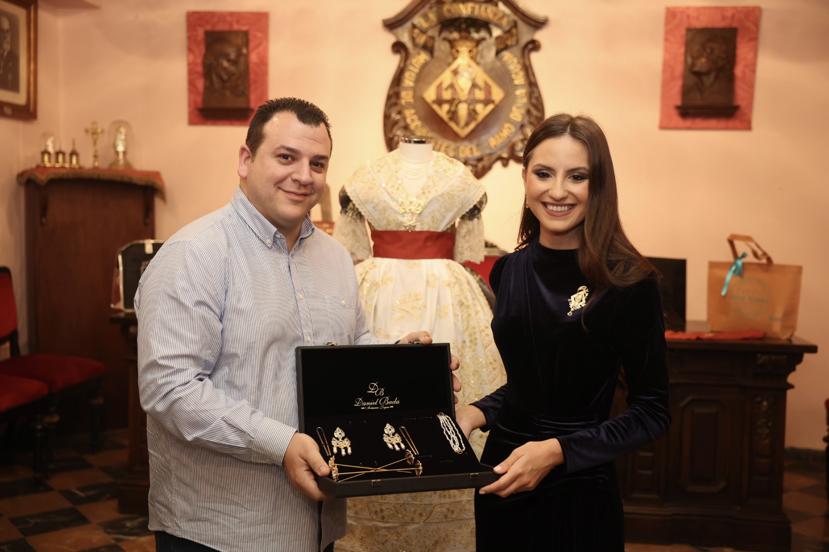 En el acto presidido por el Maestro Mayor del Gremio, Fran Tochena, y su junta de Gobierno, ha participado el grupo de trabajo que ha realizado el traje: Enrique Pertusa (coordinador), Paula Grau, Vicente Santo Tomás, Sergio Civera, Blanca García y Empar Martí. También, hemos contado con la presencia de las empresas agremiadas que han participado en el obsequio.