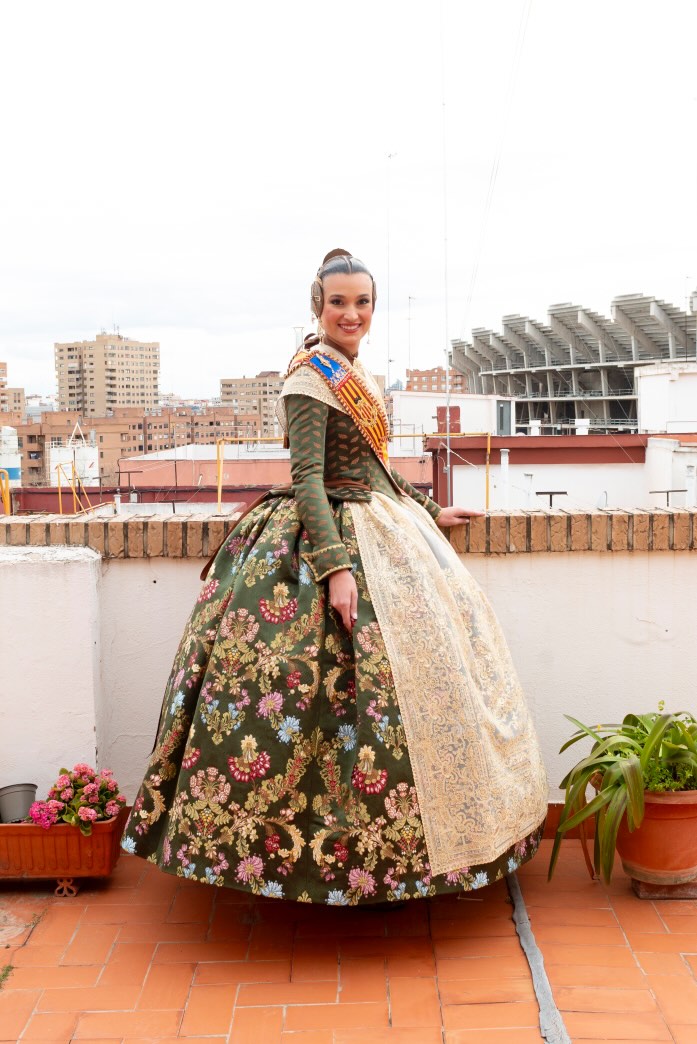 Berta Peiró, Fallera Mayor de Valencia 2025, ha cautivado a todos con un impresionante vestido en verde militar, diseñado por Vives y Marí y bautizado como “Farnesio”.