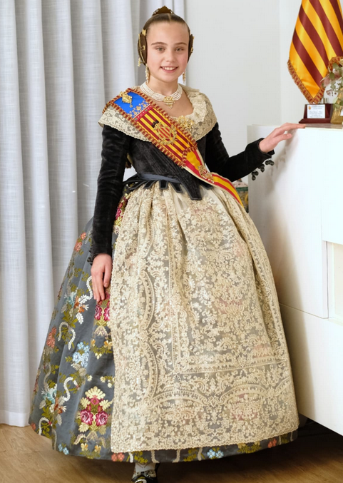 La Fallera Mayor de Valencia, Lucía García, ha estrenado en la Crida 2025 un espectacular espolín Francia en tono gris grafito, una obra maestra del arte textil valenciano. Este exclusivo tejido ha sido elaborado en los históricos telares de Garín, destacando por su elegancia atemporal y su meticuloso trabajo artesanal.