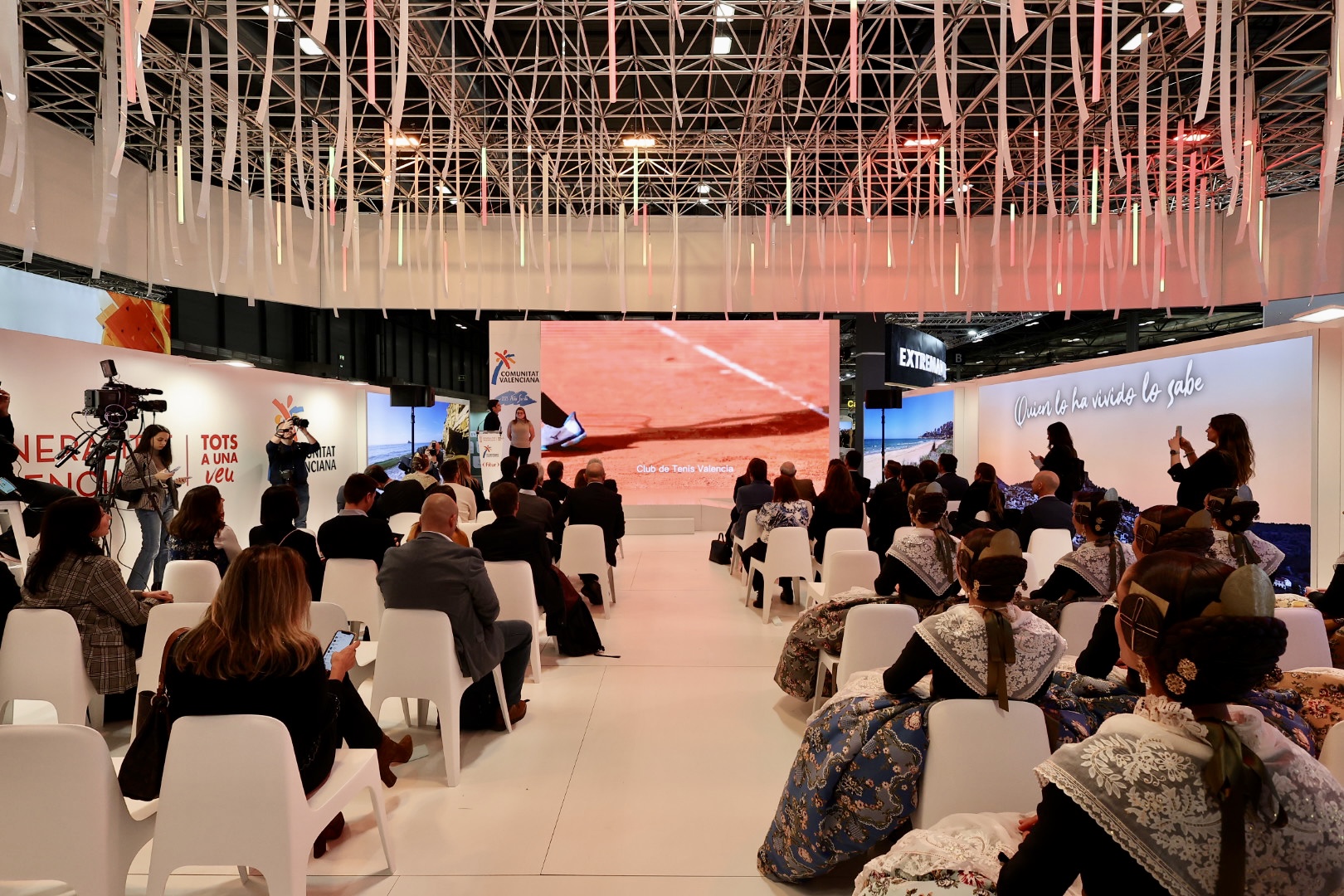 Fitur, en Madrid, ha sido el motivo escogido por Laura Mengó, Fallera Mayor de València 2023, para estrenar un nuevo traje de valenciana de los que lucirá a lo largo de su reinado. La razón está más que justificada. Tras la pandemia, las fallas vuelven tres años después a esta cita y escaparate tan importante para el turismo internacional.