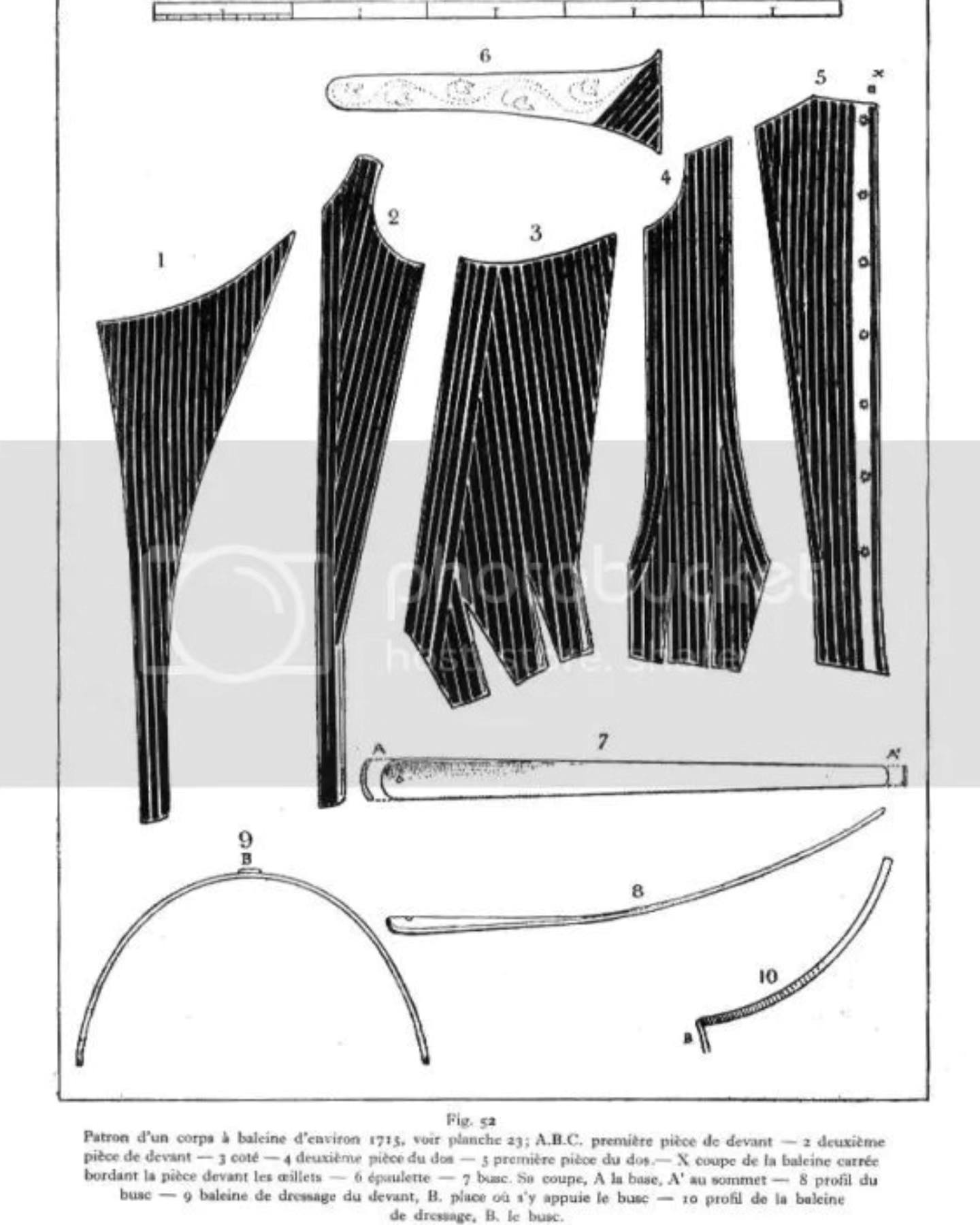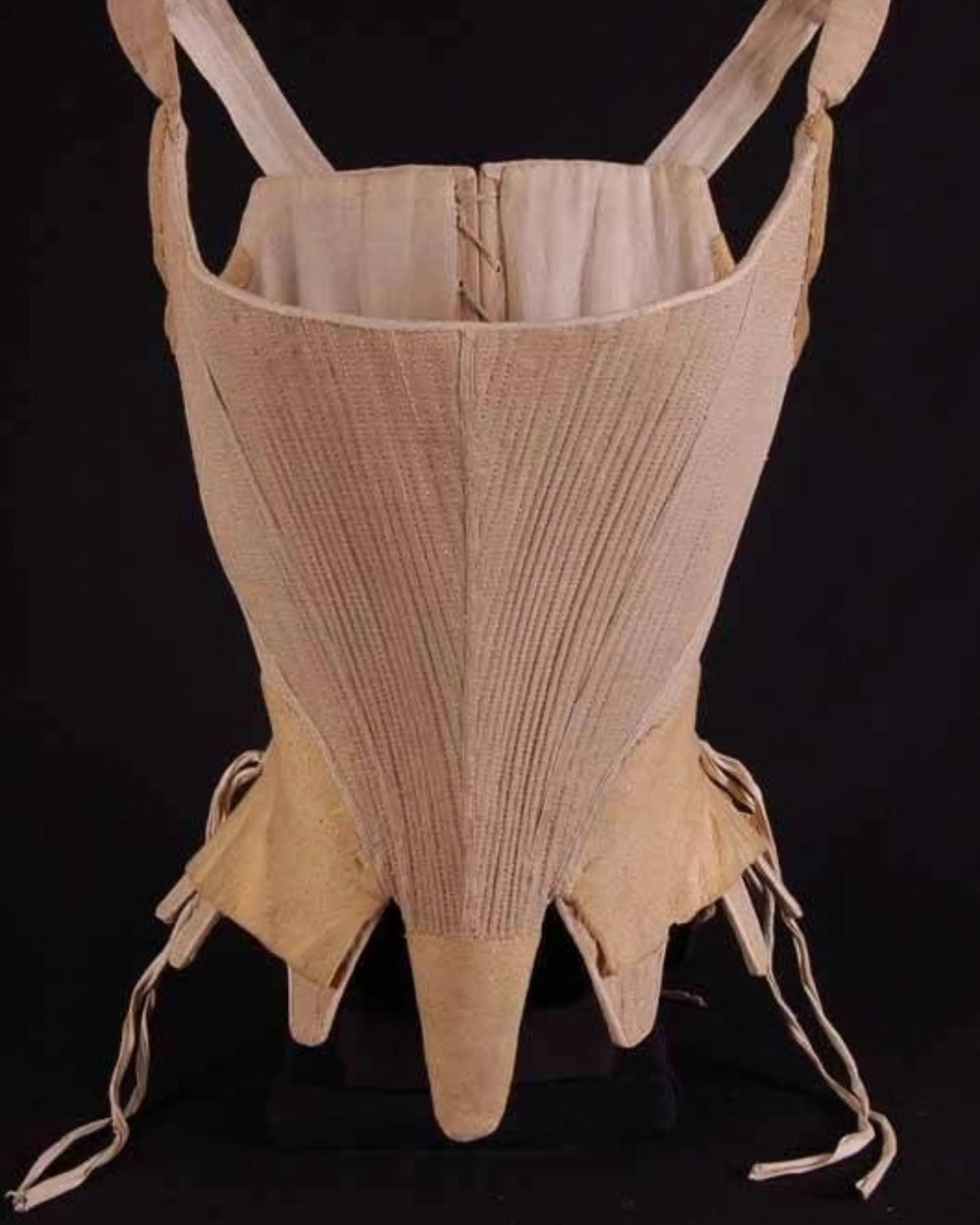 Para la confección del corpiño de manga larga del siglo XVIII se ha utilizado un pequeño damasco, en el cual Eduardo Cervera ha tenido en cuenta la constitución de la Fallera Mayor y ha recreado un patrón antiguo que se encuentra en el museo Metropolitano de Nueva York caracterizado por tener una pala extremadamente fina y unas almenas continuas ribeteadas al tono. Las mangas están rematadas con botón forrado y con borlas seda doble.