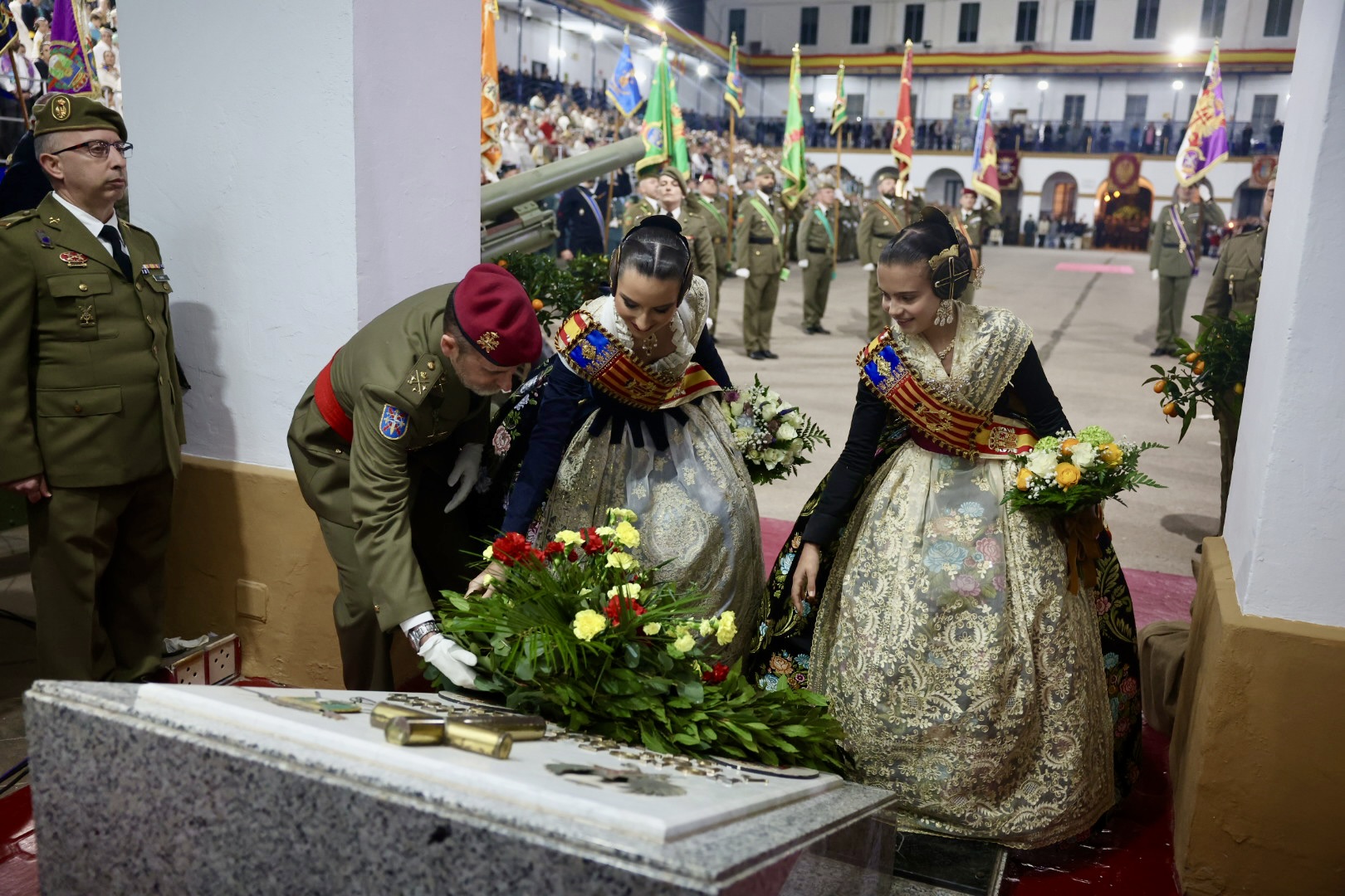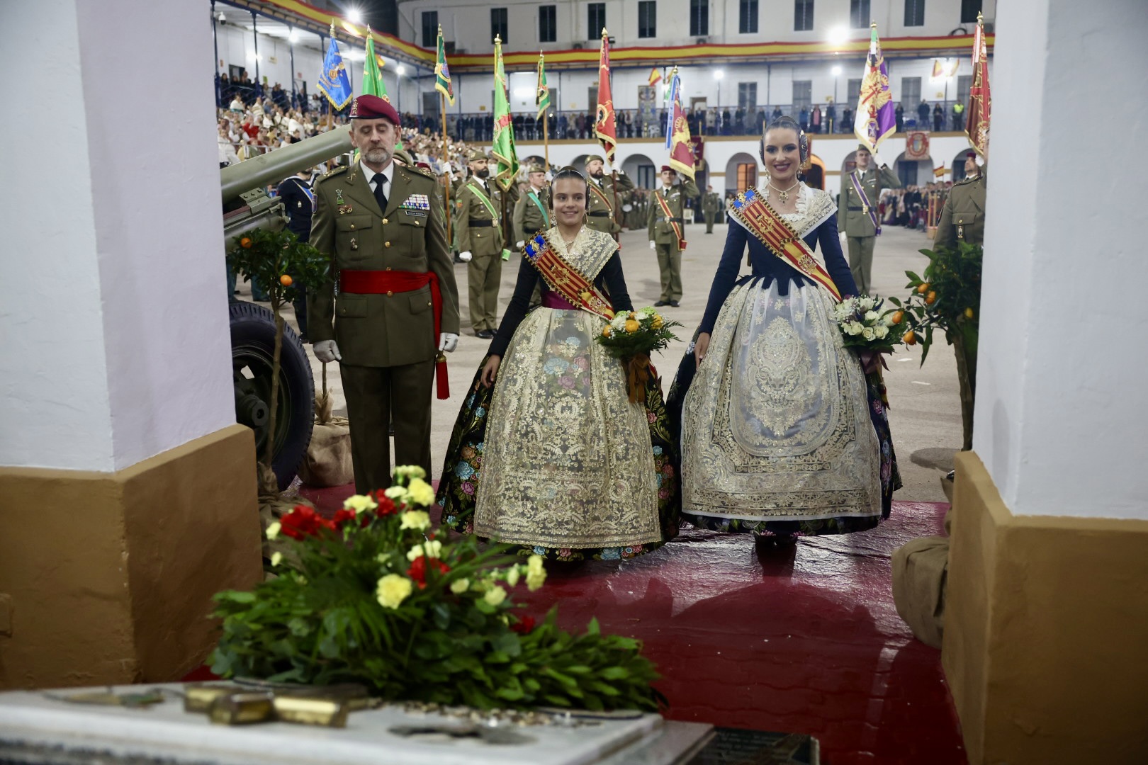 El traje que María Estela Arlandis estrenó para el homenaje a las Fuerzas Armadas guarda una emotiva historia familiar. El Cuartel de San Juan de la Ribera de Valencia ha sido el escenario para el homenaje que las Fuerzas Armadas y la Guardia Civil rinden al pueblo valenciano. Se trata de un acto en el que no faltan las Falleras Mayores de Valencia y sus Cortes de Honor, así como las representantes de las comisiones del ‘cap i casal’ y autoridades.