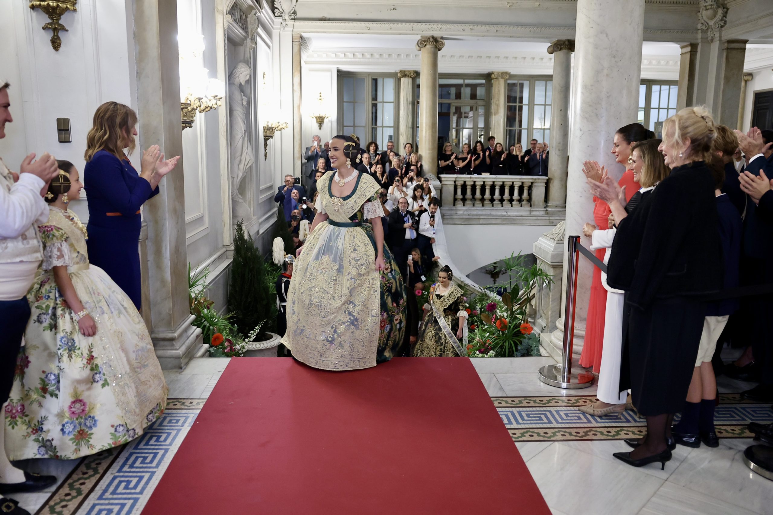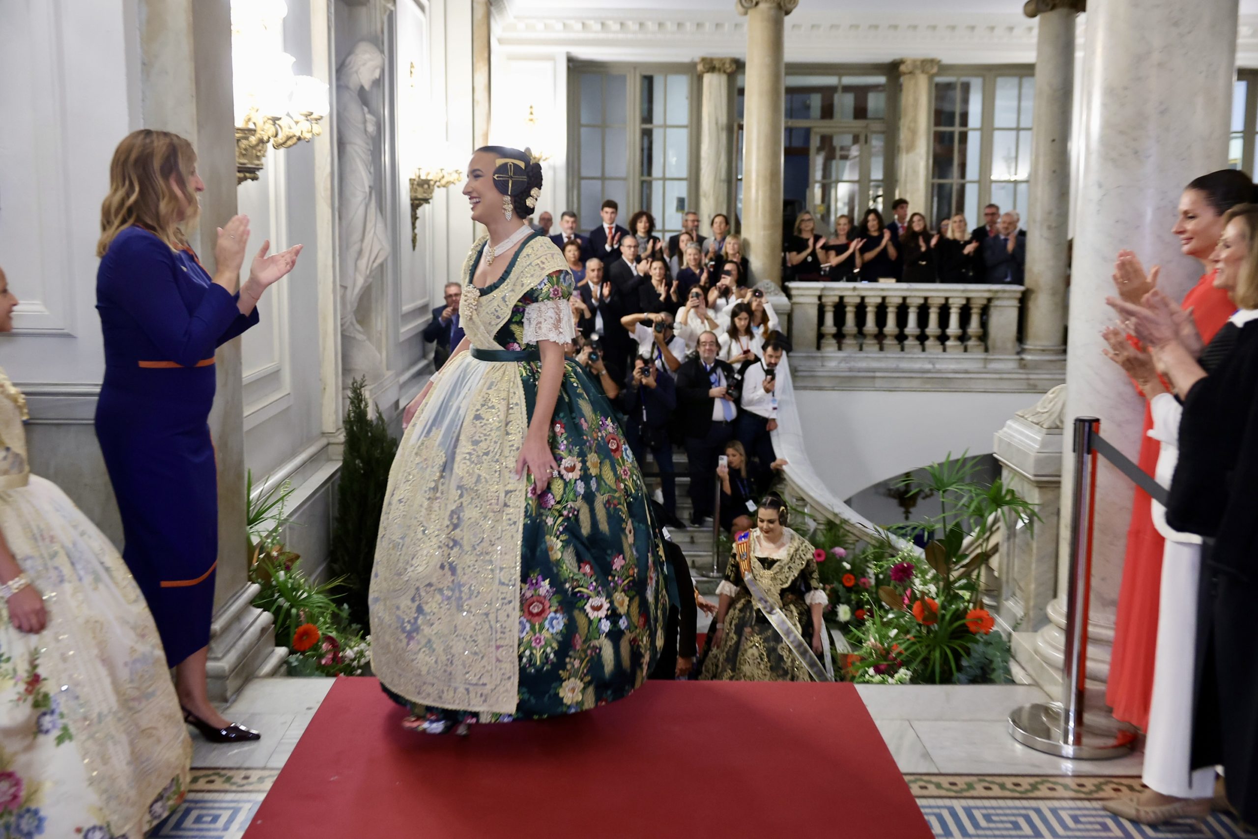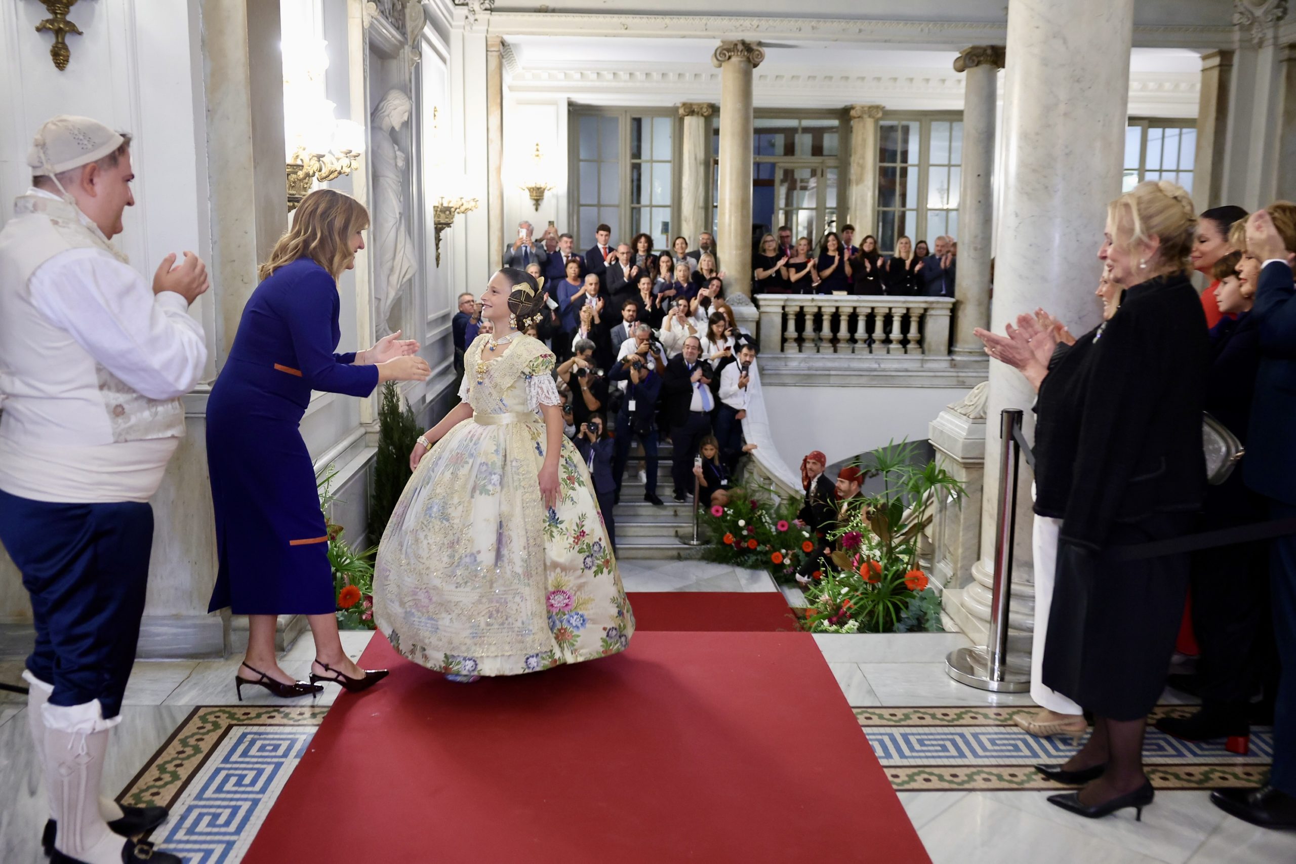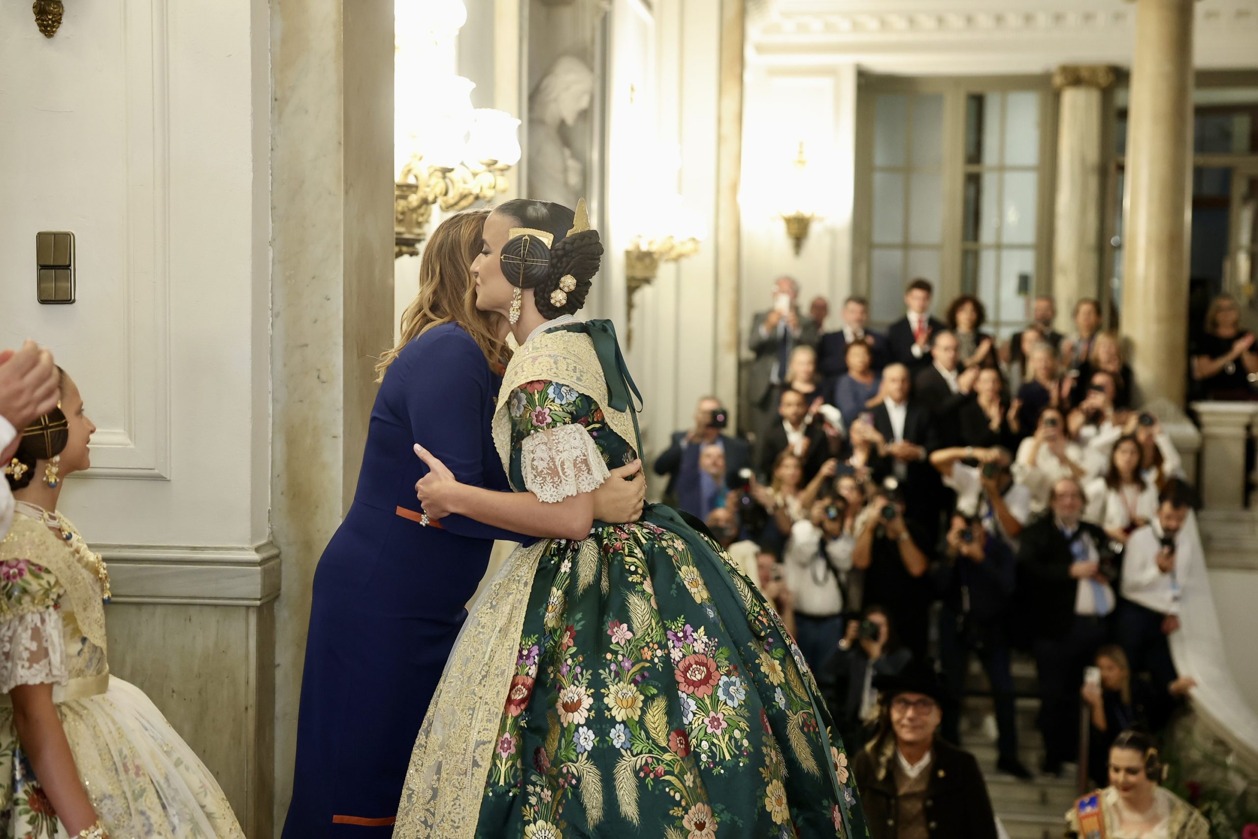 La emoción, la historia y la seda valenciana se han entrelazado este martes en el Salón de Cristal del Ayuntamiento de València, durante la proclamación oficial de las Falleras Mayores de València 2026, Carmen Prades Gil y Marta Mercader Roig.