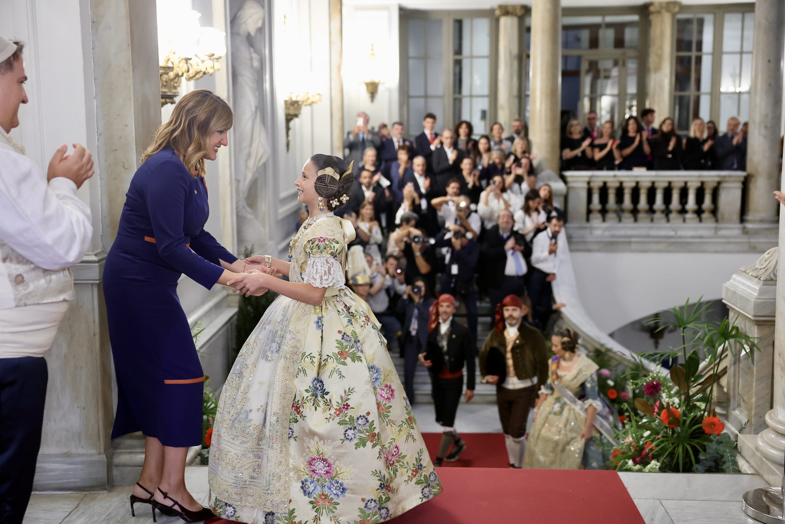 Los trajes, al detalle: así lucieron Carmen Prades y Marta Mercader en su proclamación como Falleras Mayores de València 2026