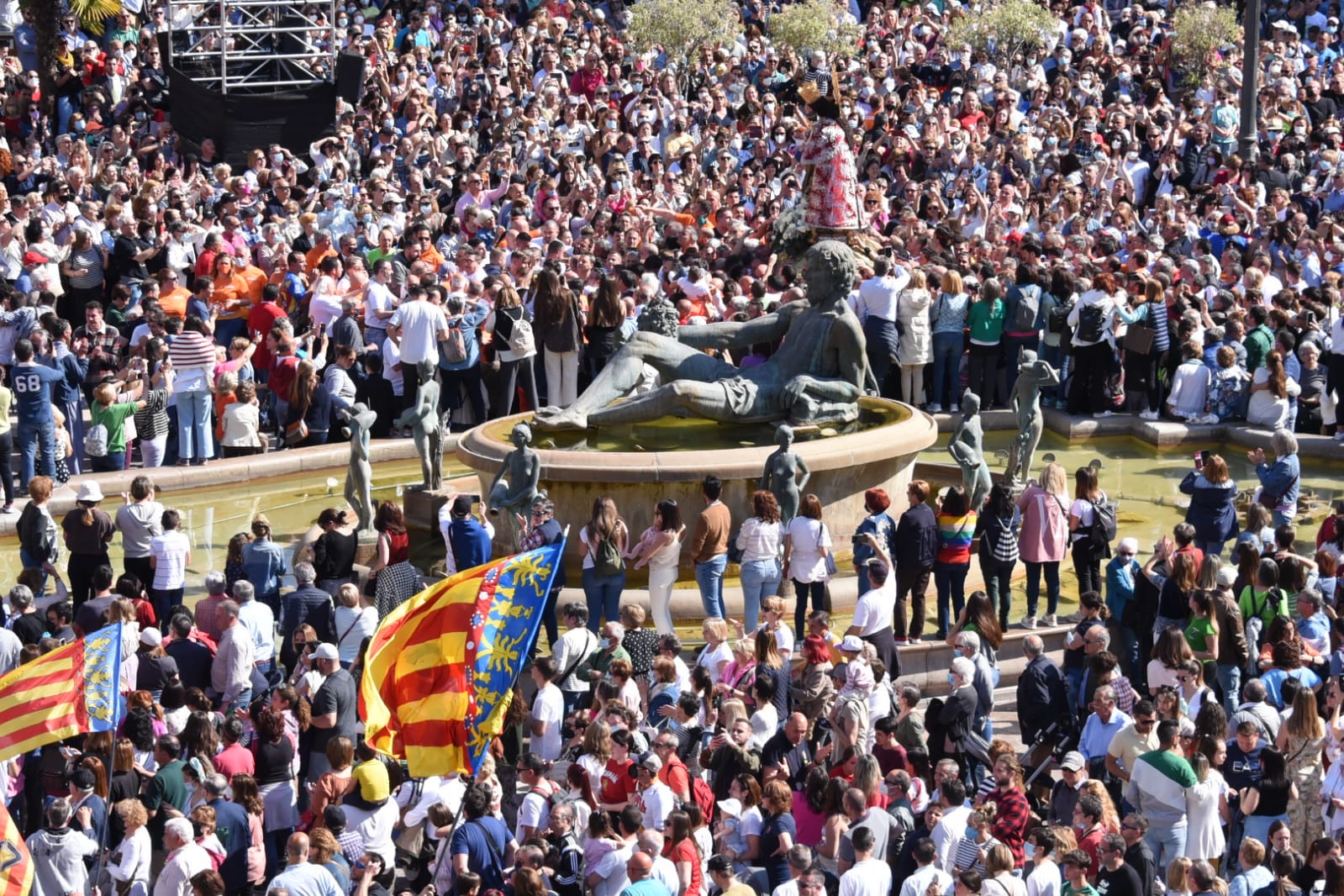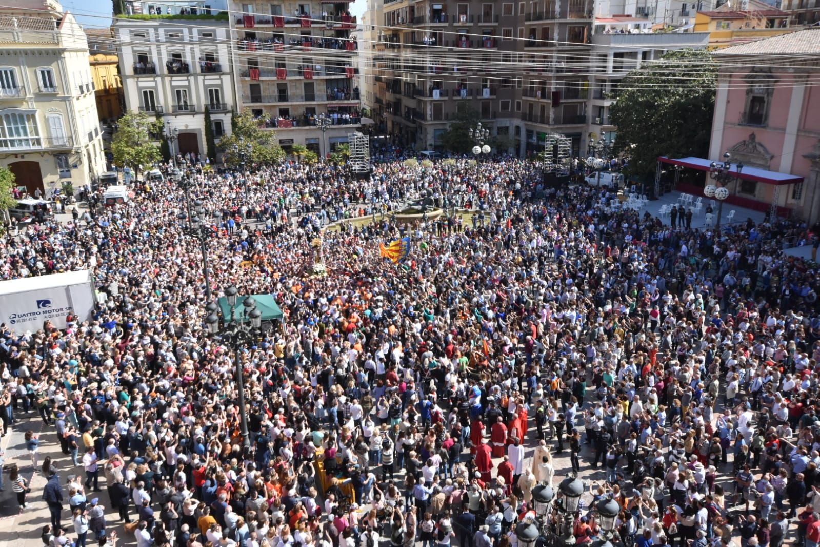 La Plaza de la Virgen de Valencia ha acogido hoy el tradicional traslado de la imagen de la Mare de Déu desde su Basílica a la Catedral que no se había celebrado durante los dos últimos años debido a la pandemia.