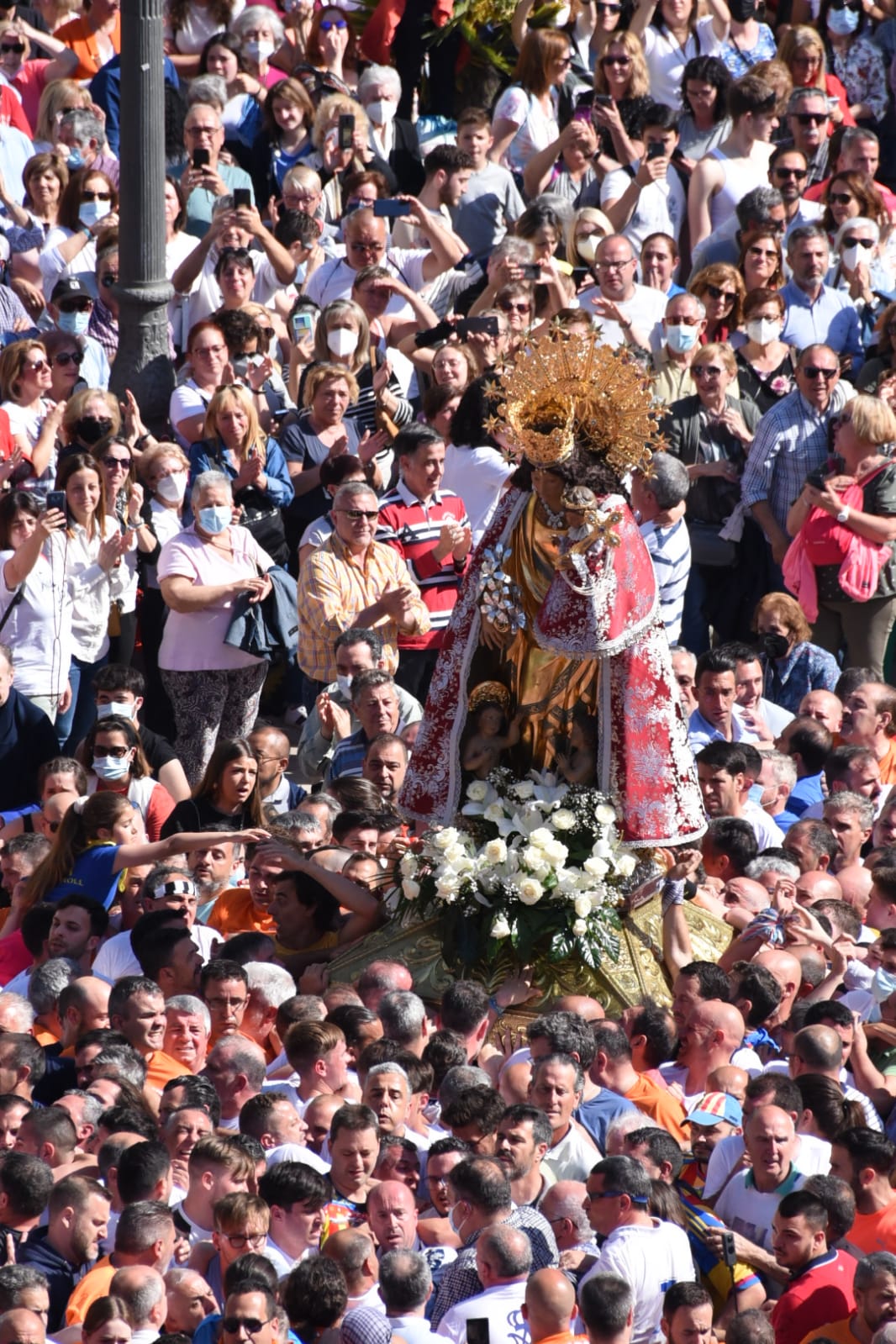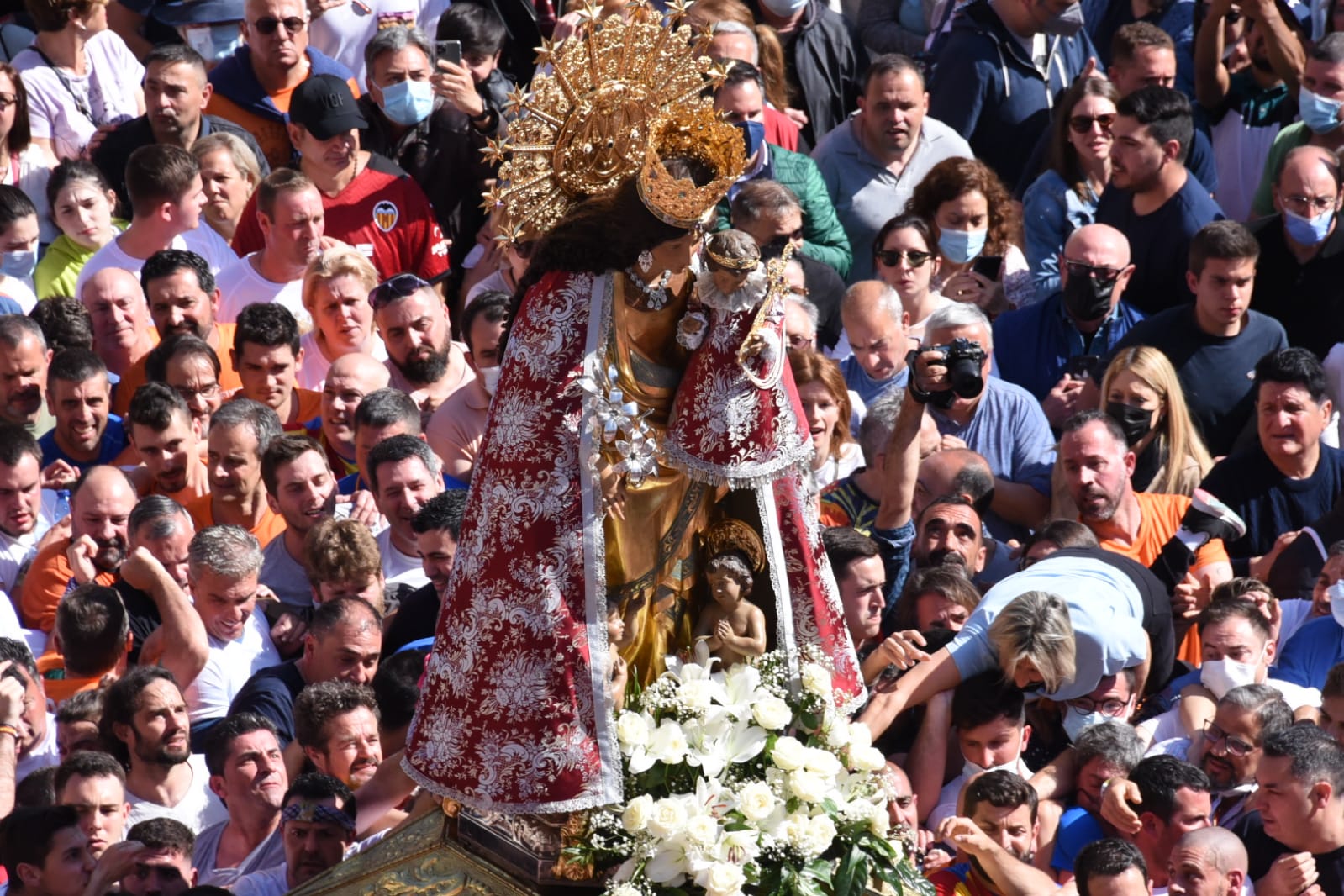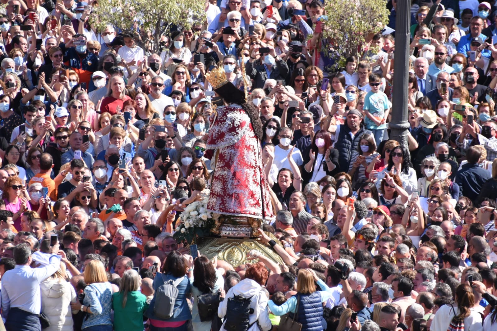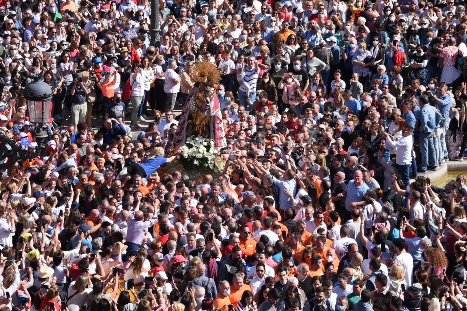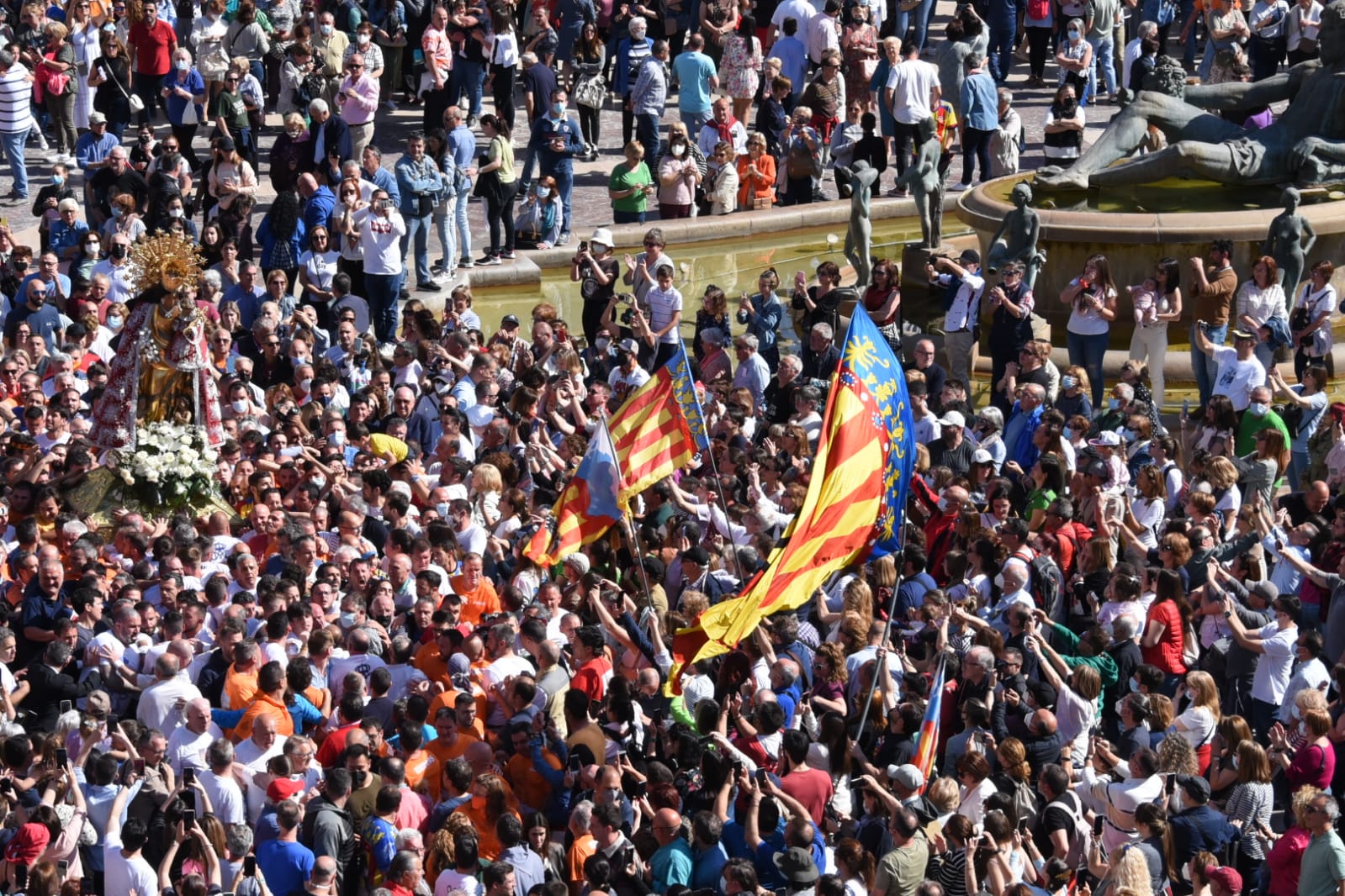 El traslado de la Virgen ha hecho, un año más, que miles de valencianas y valencianos hayan vivido con fervor éste y los diferentes actos celebrados este domingo en València en honor a la Virgen de los Desamparados, patrona de la ciudad, después de dos años sin poder celebrarlos por la pandemia de la covid-19.