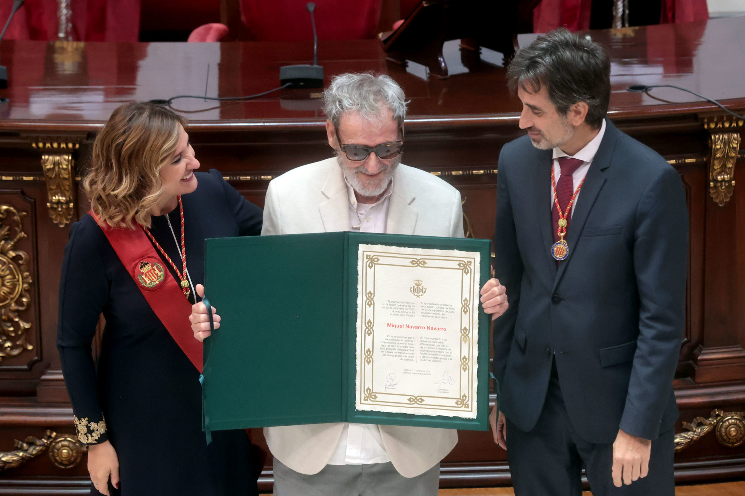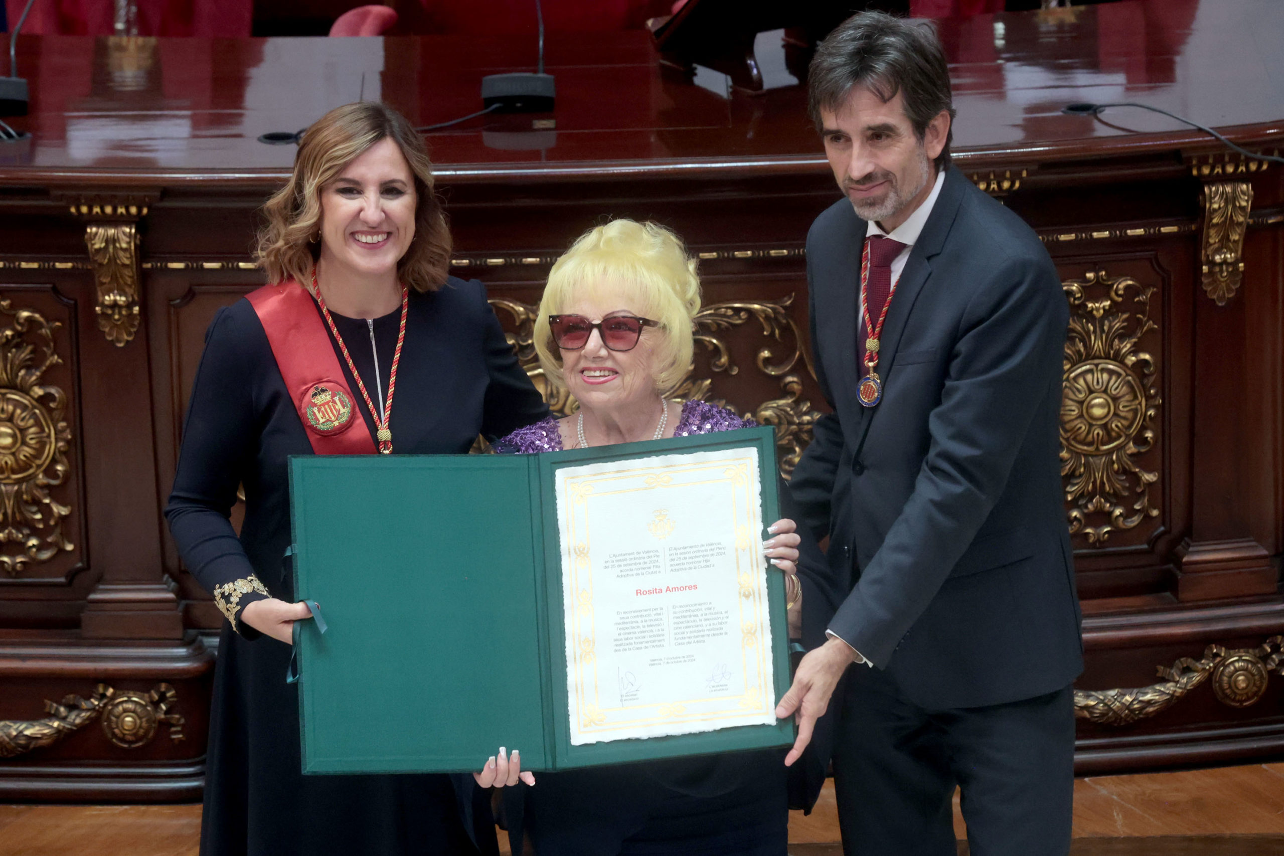 El escultor Miquel Navarro fue nombrado hijo adoptivo por su destacada trayectoria en las artes plásticas, y la artista Rosita Amores recibió el título de hija adoptiva, siendo reconocida por su gran contribución a la cultura valenciana.