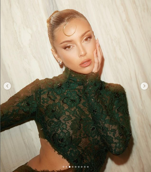 Se trata de una pieza joya, en color verde, semitransparente, con un encaje floral, de manga larga, cuello alto y una gran abertura en su pierna derecha que realza su figura y, una vez más, estiliza ese potencial que tiene. Una impresionante elección con la que la artista ha vuelto a demostrar su poderío y, lo más importante, ha despedido este 2023 para dar la bienvenida a un año cargado de éxitos.