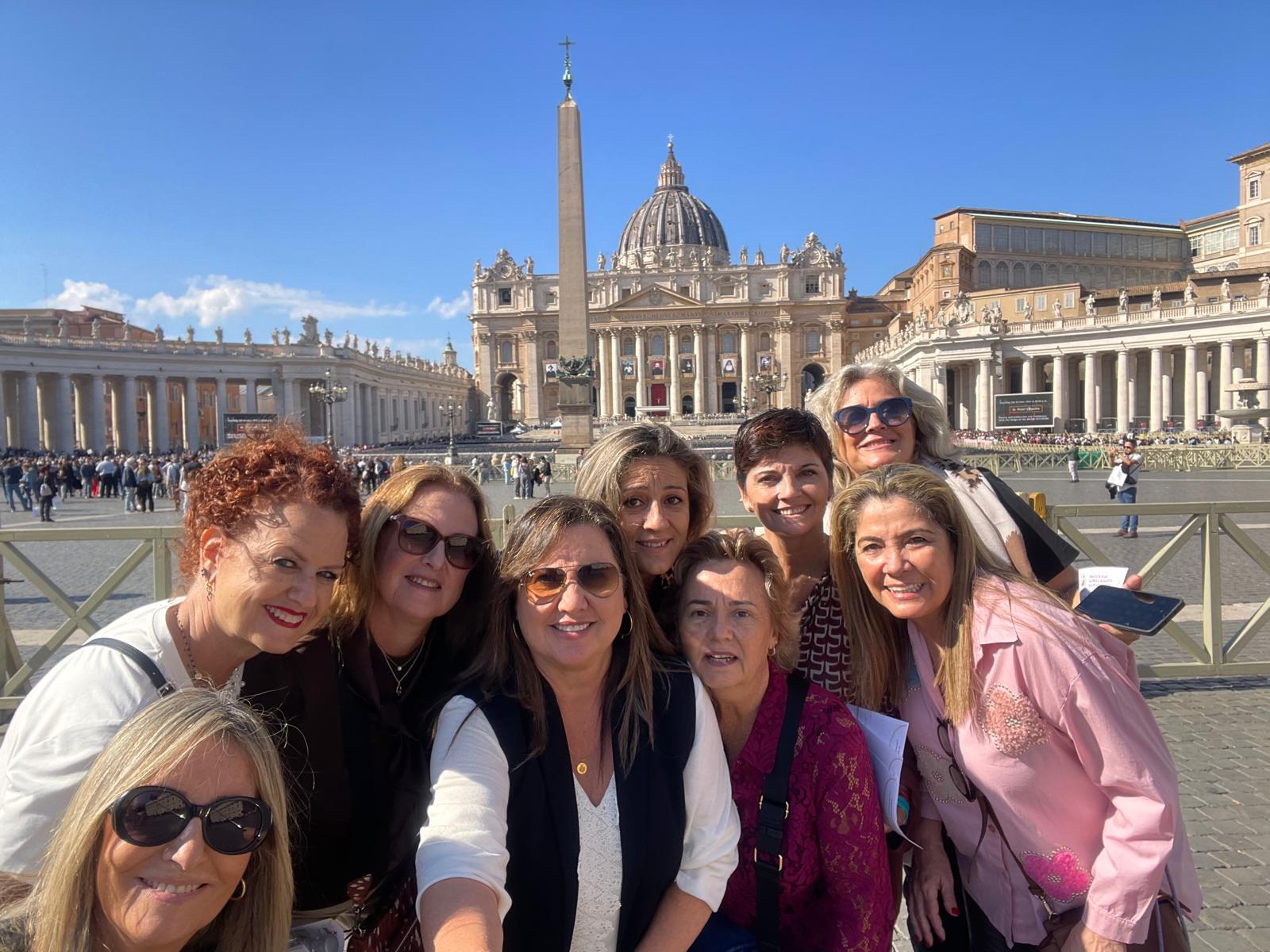 El grupo de amigas visitó lugares emblemáticos como la Fontana di Trevi, el Coliseo y la Ciudad del Vaticano, dejando en cada rincón un pedacito del espíritu fallero que tanto las une.