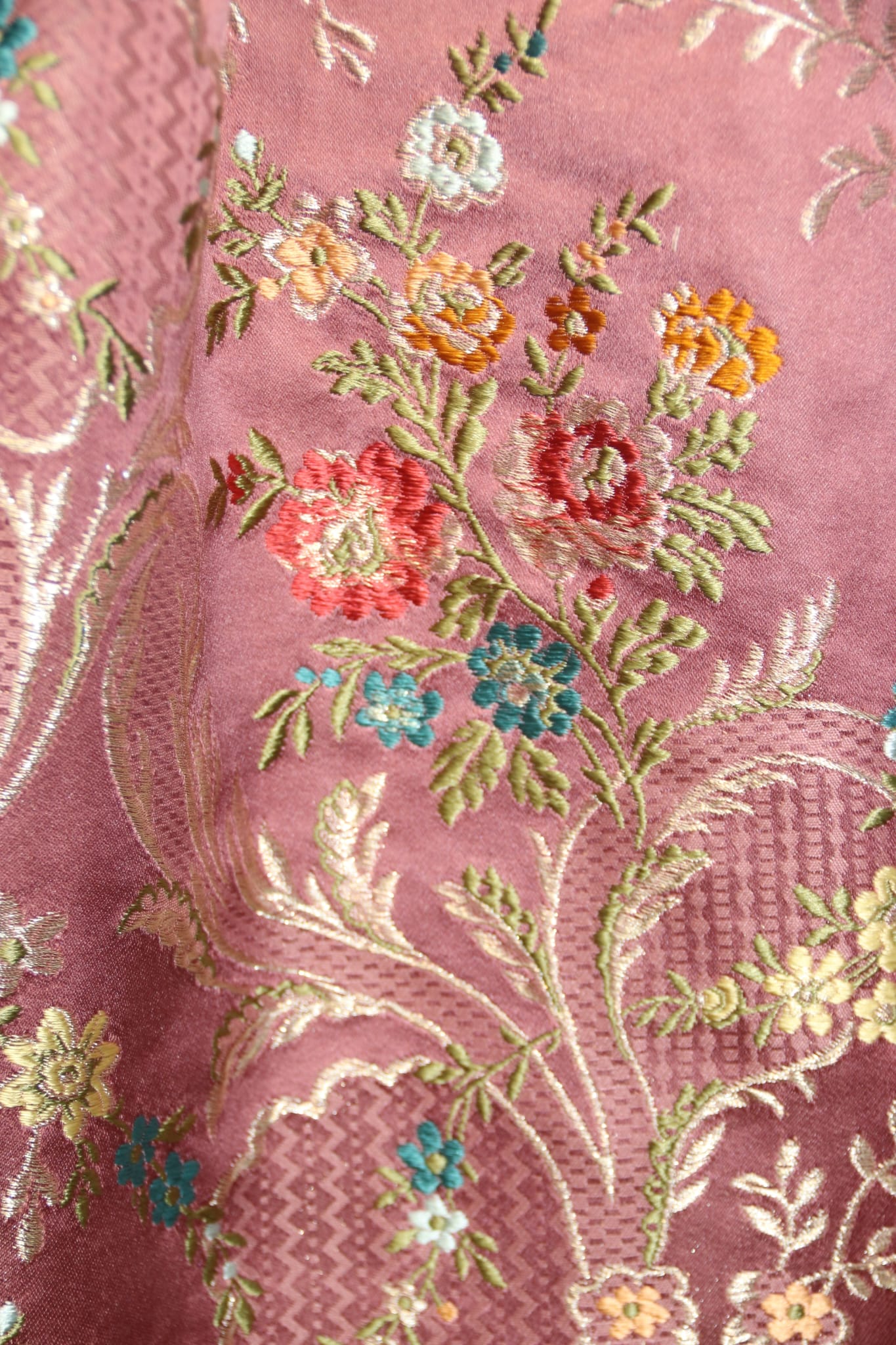 El tejido, elaborado por la prestigiosa Compañía Valenciana de la Seda, está confeccionado en un delicado tono rosa antiguo.