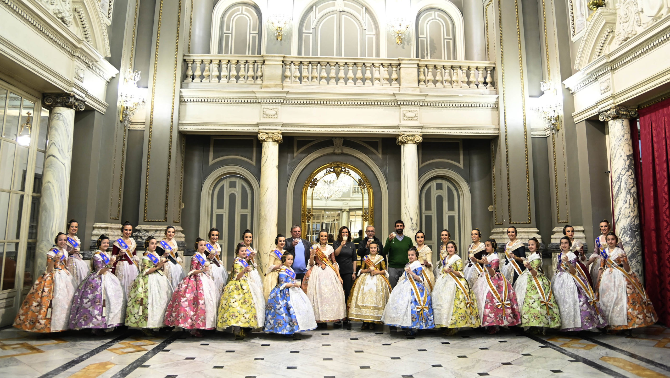 En representación de los pueblos de Valencia han acudido a la casa consistorial para presenciar este espectáculo pirotécnico, las Juntas Locales Falleras de Bétera, Carcaixent, Carlet, Catarroja, Cheste y Benaguasil.