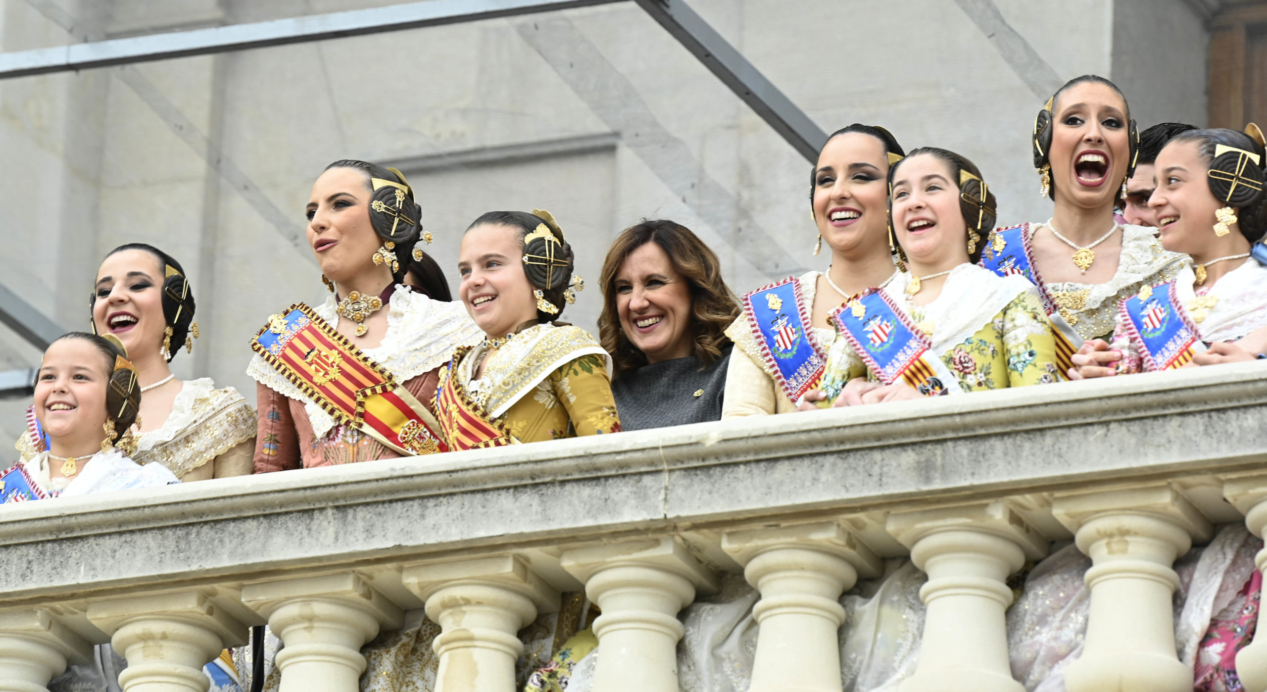 También se han dado cita en el balcón la consellera de Hacienda, Economía y Administración Pública, Ruth Merino; la delegada del gobierno, Pilar Bernabé, y los tres subdelegados José Rodríguez, Juan Antonio Nieves, y Antonia García; el delegado del Ministerio Defensa de la Comunidad Valenciana; el coronel Ángel José Adán García; el Comandante Naval de Valencia, Jesús Otero; y la presidenta de la Federación de Asociaciones de Vecinos, María José Broseta.