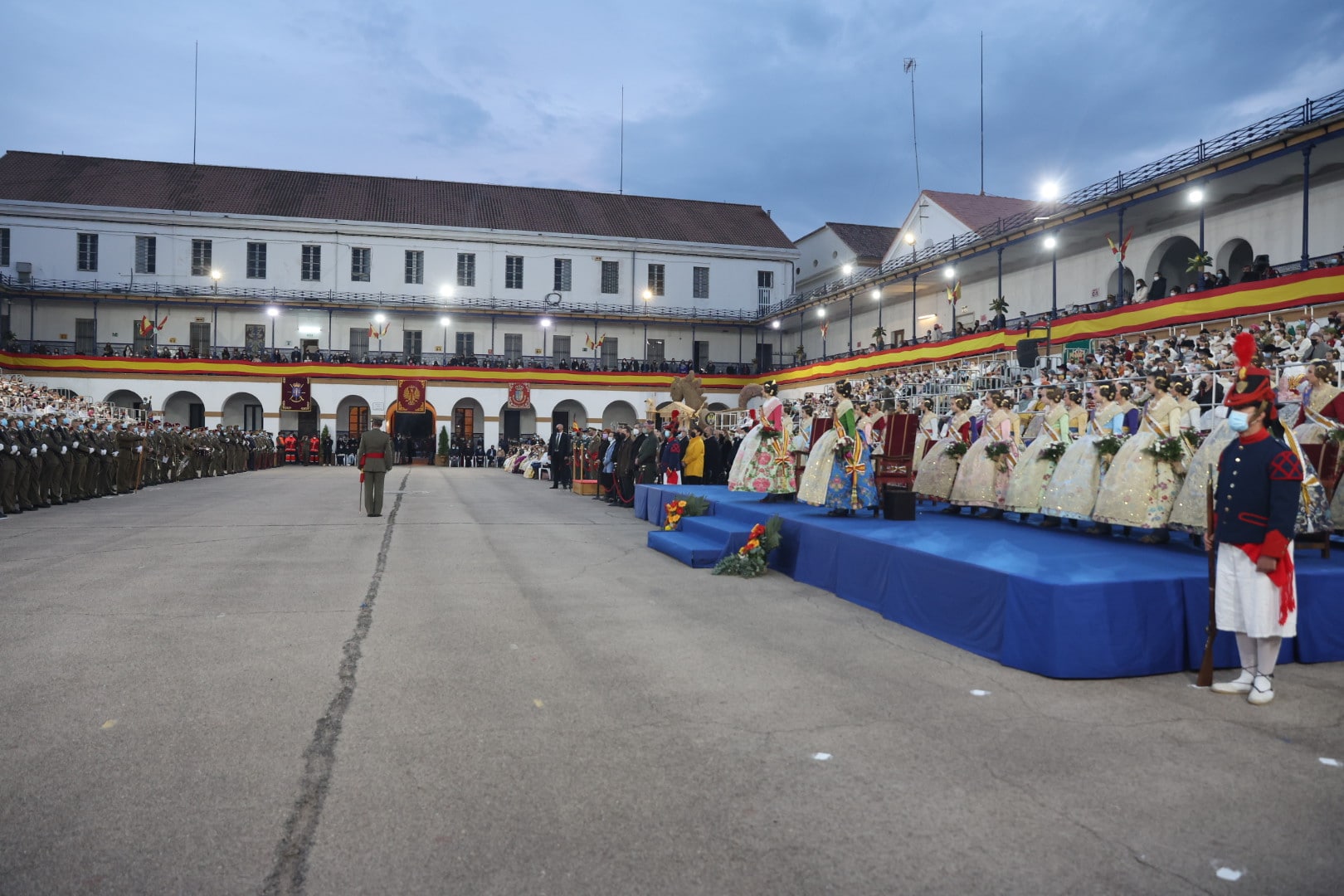 Este jueves se celebró en el Cuartel de San Juan de la Ribera de Valencia el homenaje de las Fuerzas Armadas y la Guardia Civil al pueblo valenciano. A dicho acto acudieron las Falleras Mayores de València, Carmen Martín y Nerea López, acompañadas por sus respectivas Cortes de Honor. Tras el acto militar, se disparó un castillo de fuegos artificiales, preludio de la cremà de las fallas.