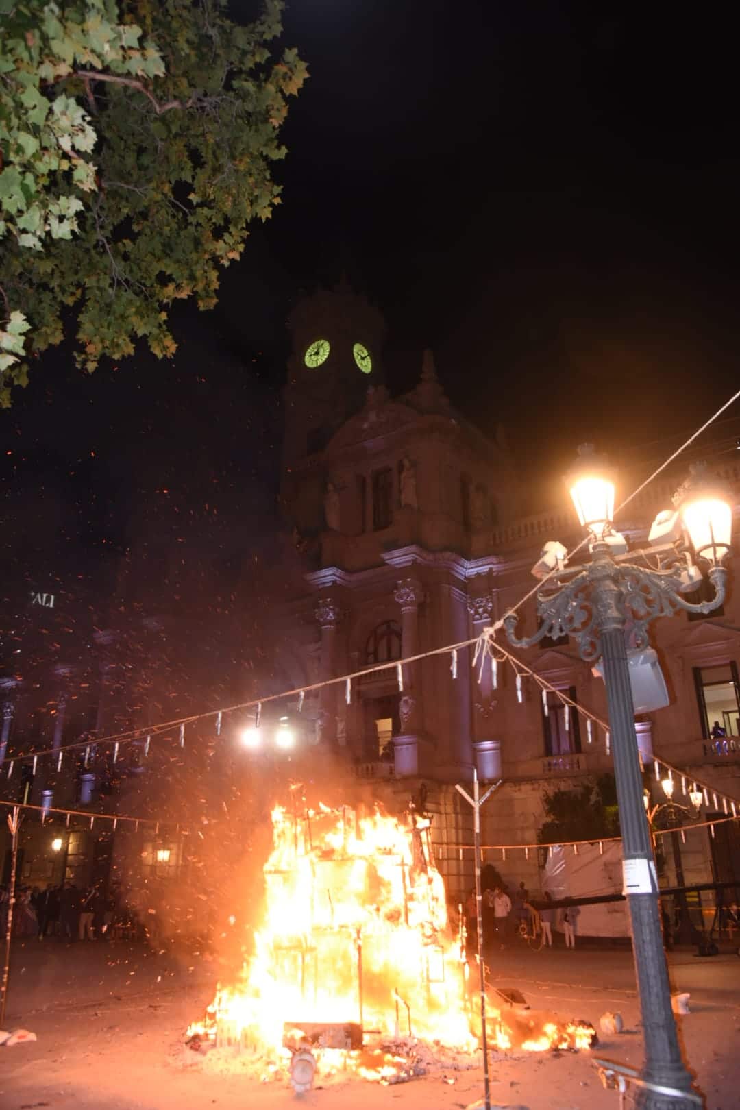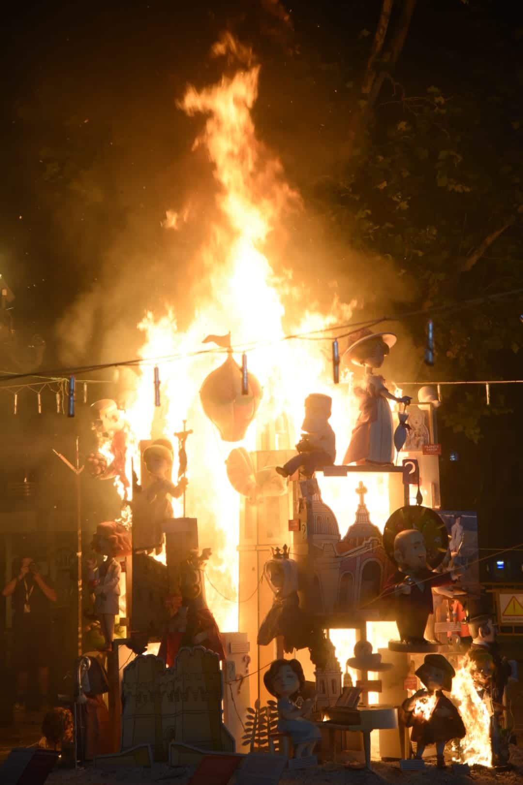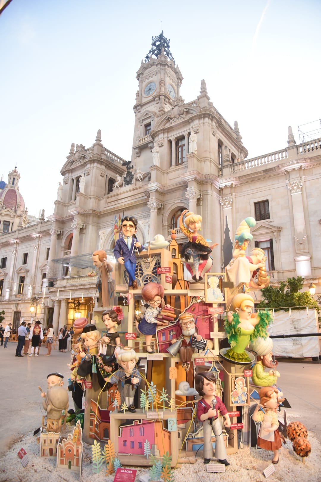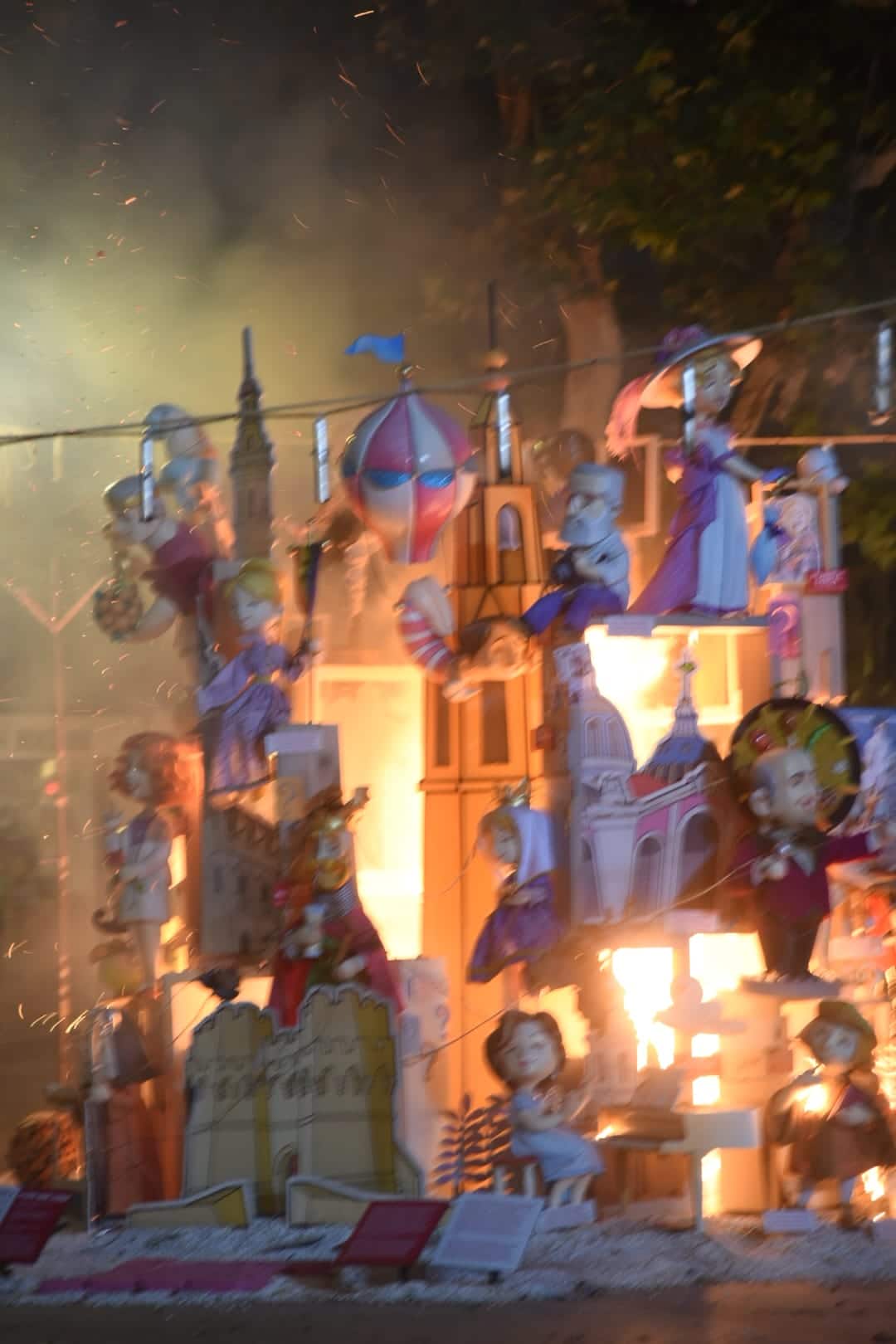 Y a las nueve ha comenzado a arder la falla municipal infantil -que, como la grande, no entra en competición con el resto-, una de las más visitadas y fotografiadas este año gracias al trabajo que han llevado a cabo los artistas José Luis Ceballos y Francisco Sanabria con el lema «Saps qui sóc?» (¿sabes quién soy?), homenaje a grandes personajes de la historia de la ciudad.