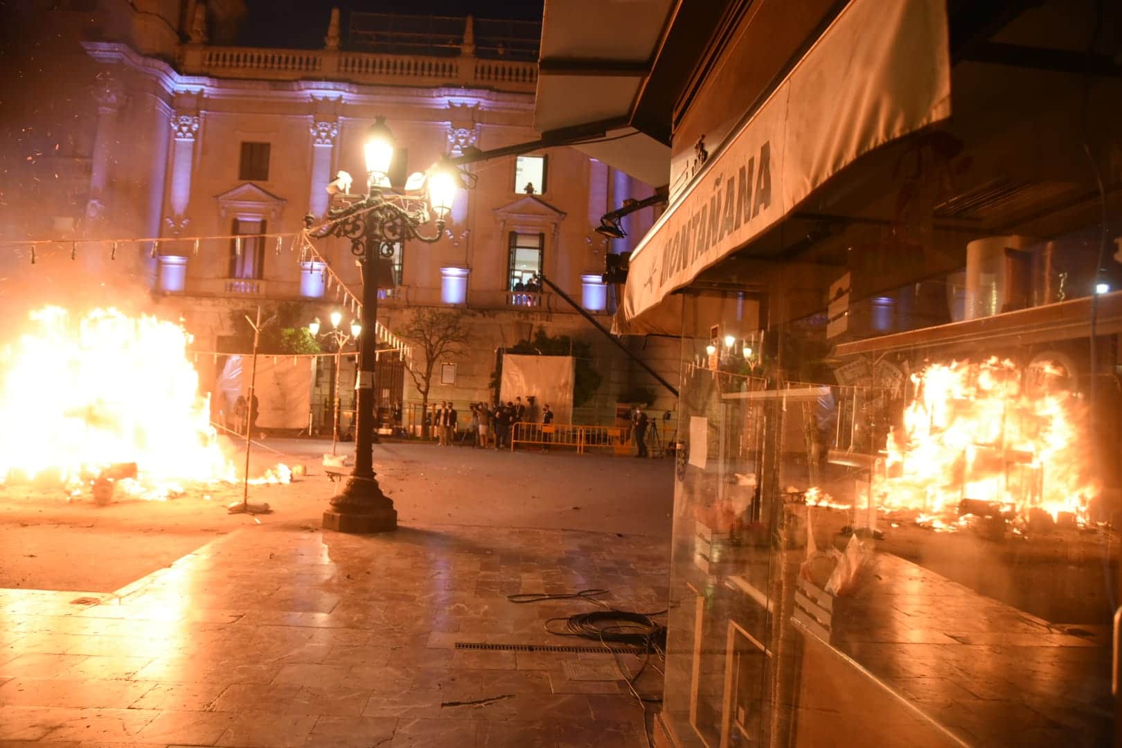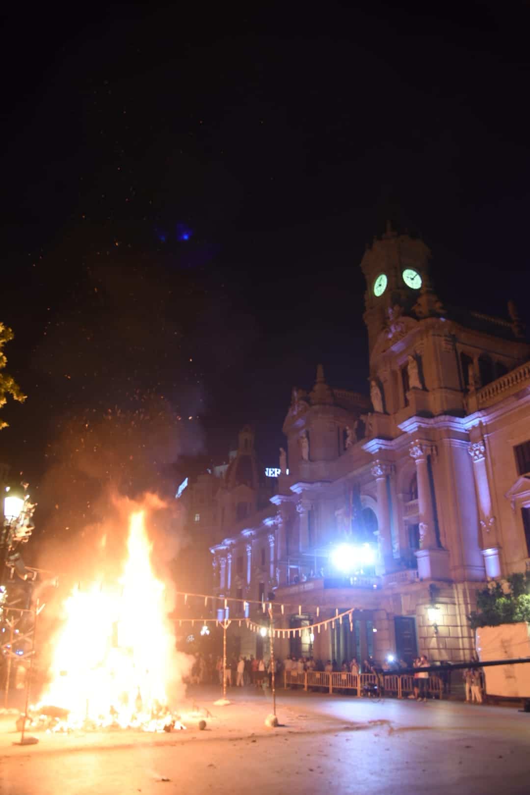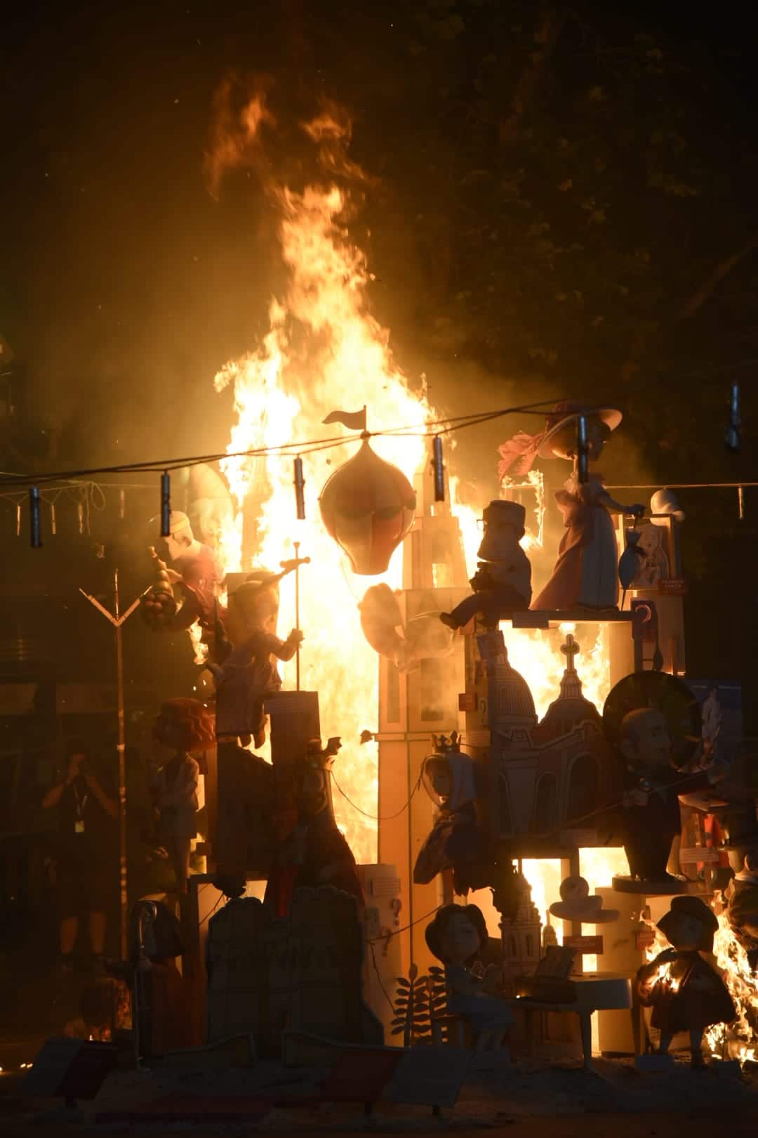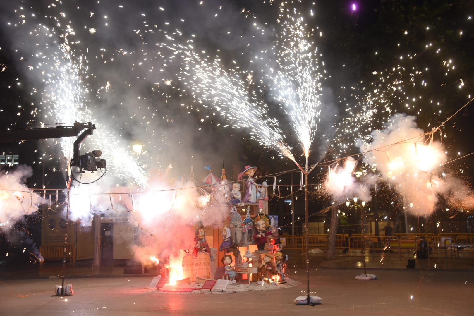 Y a las nueve ha comenzado a arder la falla municipal infantil -que, como la grande, no entra en competición con el resto-, una de las más visitadas y fotografiadas este año gracias al trabajo que han llevado a cabo los artistas José Luis Ceballos y Francisco Sanabria con el lema «Saps qui sóc?» (¿sabes quién soy?), homenaje a grandes personajes de la historia de la ciudad.
