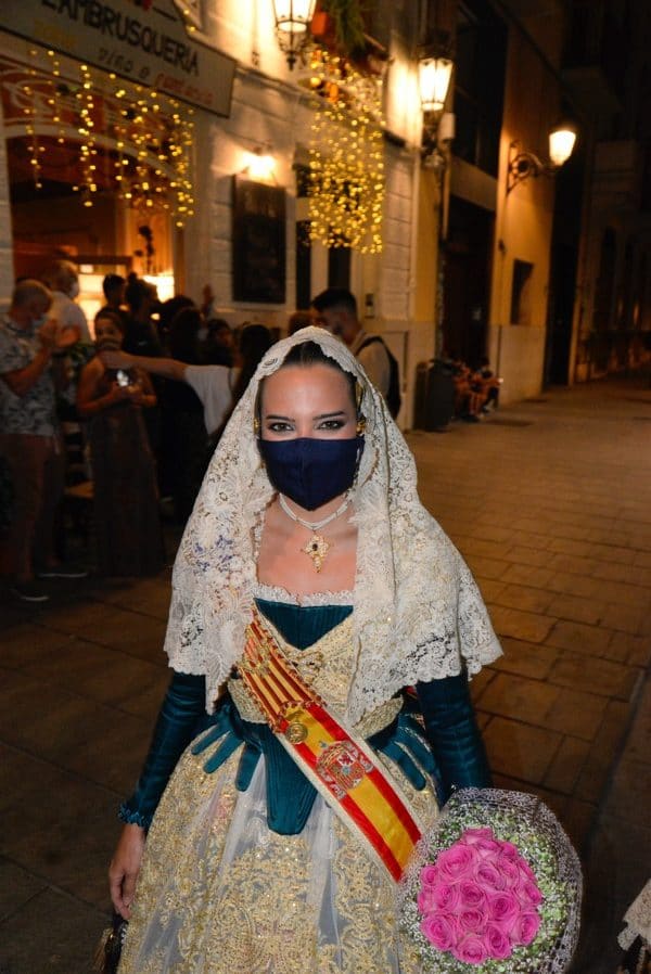 Absolutamente emocionada llegó la Fallera Mayor de València Consuelo Llobell y su Corte de Honor a la plaza de la Virgen cerrando el último día de la ofrenda más atípica y a la vez histórica que han vivido las Fallas en su historia más reciente.