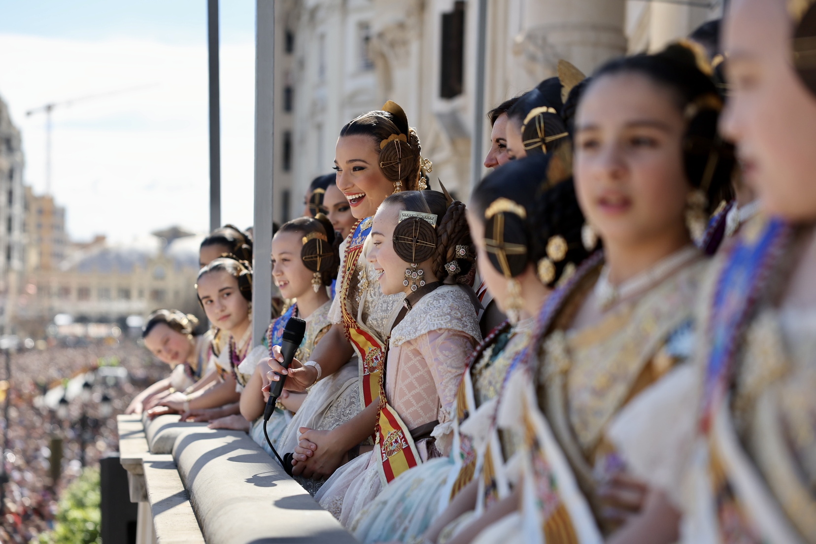 Entre los asistentes en el balcón consistorial se encontraban la Delegada del Gobierno, Pilar Bernabé, y los consellers de Emergencias, Agricultura e Innovación, Industria y Turismo: Juan Carlos Valderrama, Miguel Barrachina y Marian Cano, respectivamente. También estuvieron presentes representantes de diversas asociaciones culturales y profesionales, así como presidentes de cámaras de comercio de la Comunidad Valenciana.