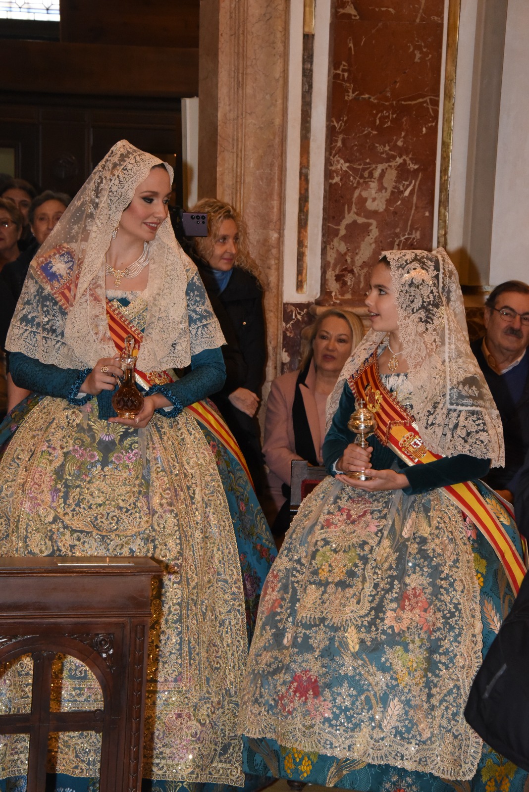 Marta Mercader ha elegido a su hermano, Álvaro Mercader Roig, y a su mejor amiga, Gabriella Giannattasio dell’Isola Herrero, componente de la corte de honor de la FMIV 2024, como portadores de la banda, el ramo y la joia.