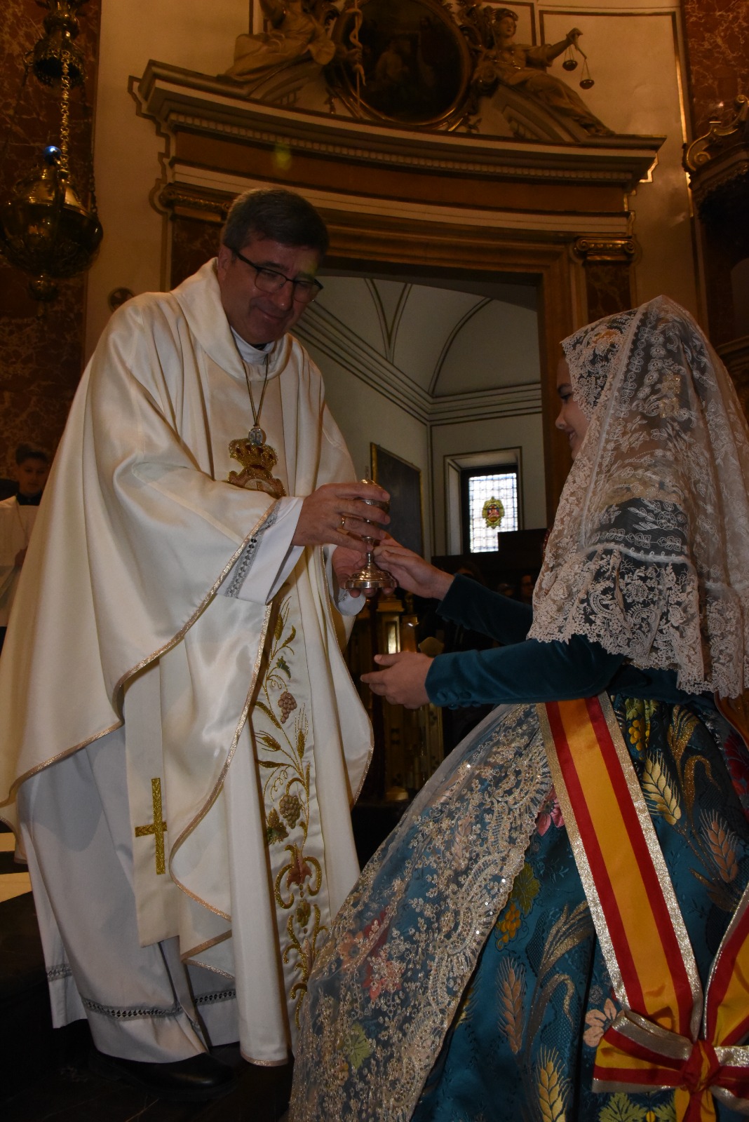 La Virgen de los Desamparados luce la “Joia” que le regalaron las Falleras Mayores de València