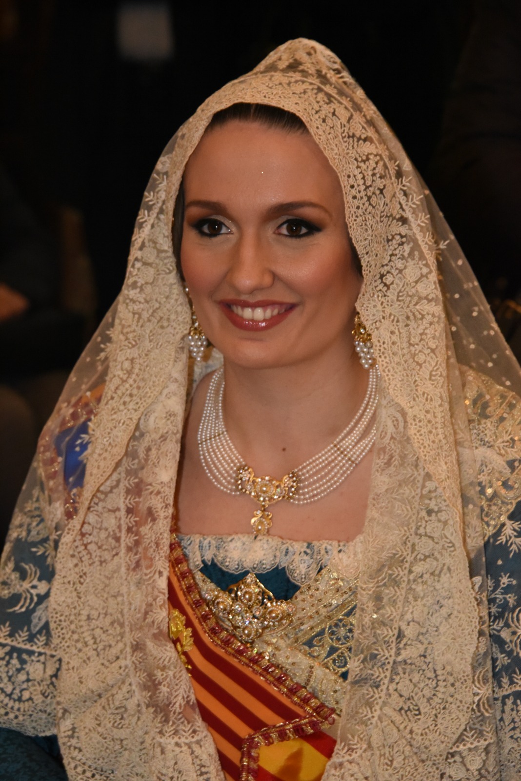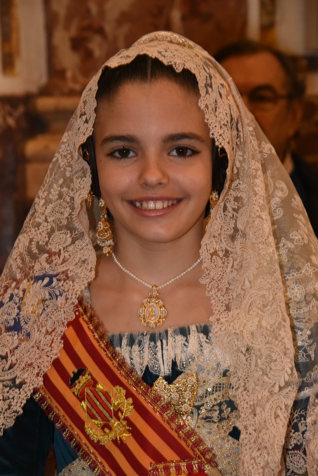 Para una ocasión tan especial, Marta Mercader ha lucido un espolín en color azul cristalino, un tono que simboliza pureza, frescura y luminosidad, cualidades que reflejan su esencia como máxima representante infantil de las Fallas. Inspirado en el azul del inicio del día, el matiz natural de urdimbre transmite alegría y se integra con distinción en el conjunto floral tejido con tramas de seda, dando lugar a una composición armónica que irradia elegancia, delicadeza y luz propia.