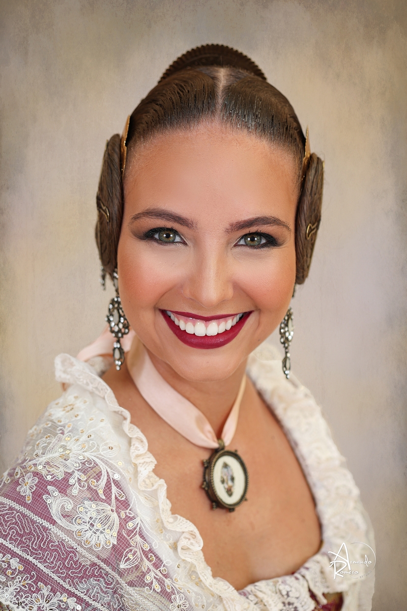 Tiene 31 años. Graduada en Derecho y con formación en mediación. Fallera de nacimiento y Bunyol d’Or. Su acto favorito es la Ofrenda.