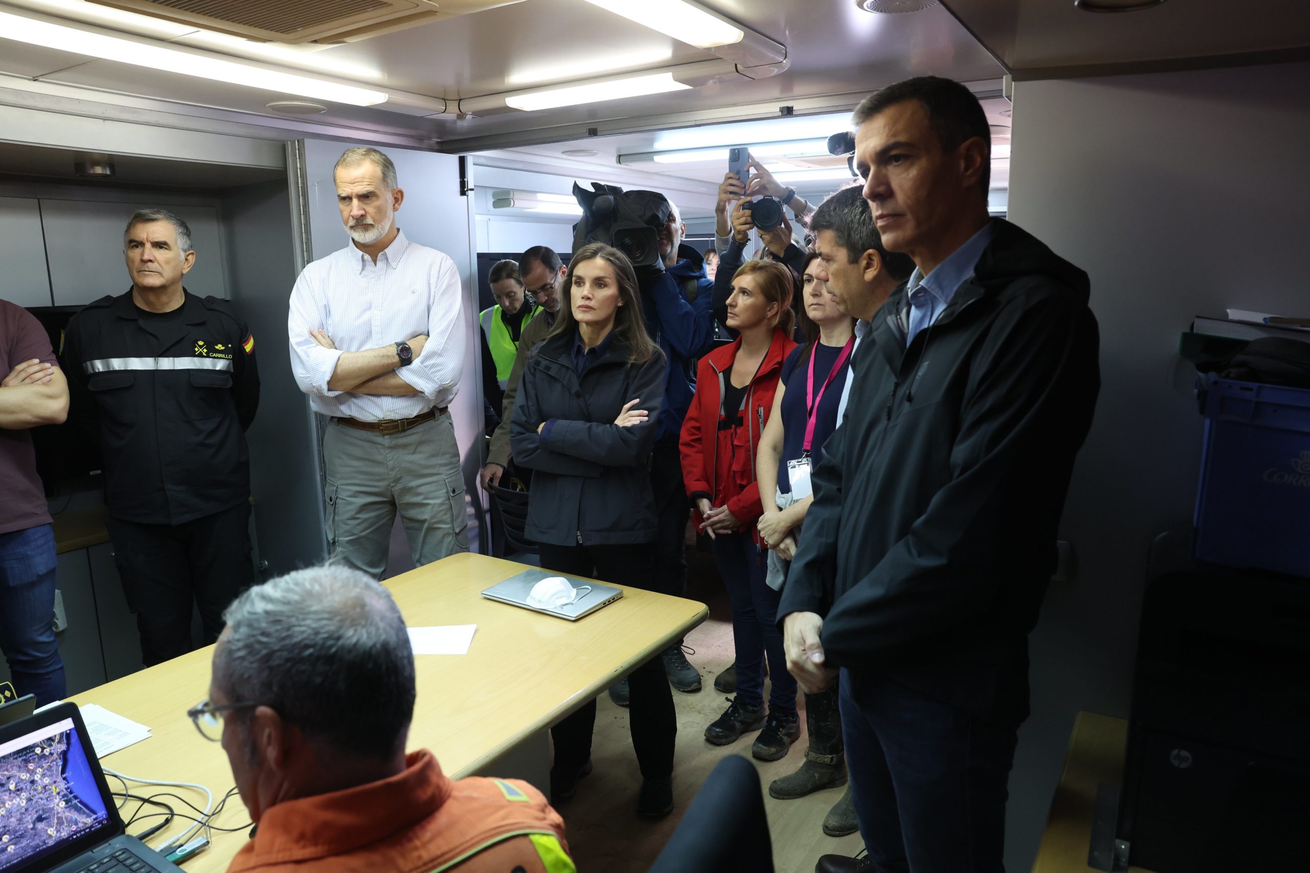 Esta localidad valenciana, de la que ya se han ido los reyes, era la primera parada de la visita de don Felipe y doña Letizia, quienes, antes de llegar al centro, mantuvieron una reunión con los integrantes del puesto de mando avanzado instalado en Paiporta. La visita a Chiva se mantiene.